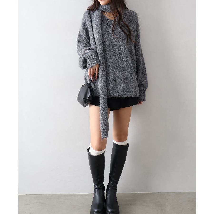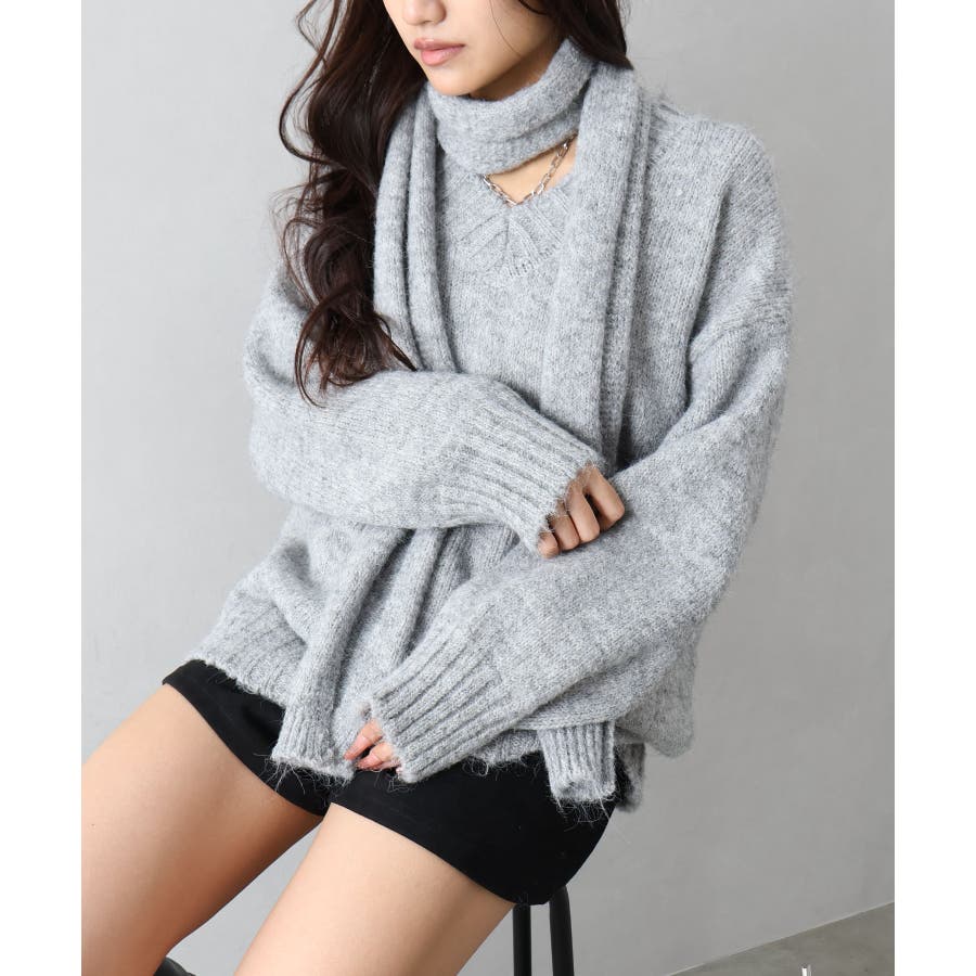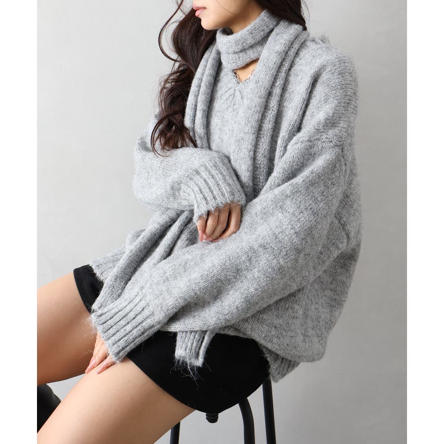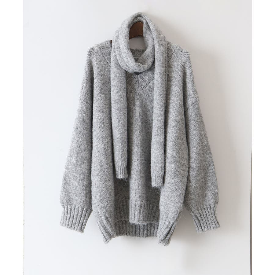 どこから見ても可愛い! ボリューム感がたまらない、愛されマフラー付きニット。