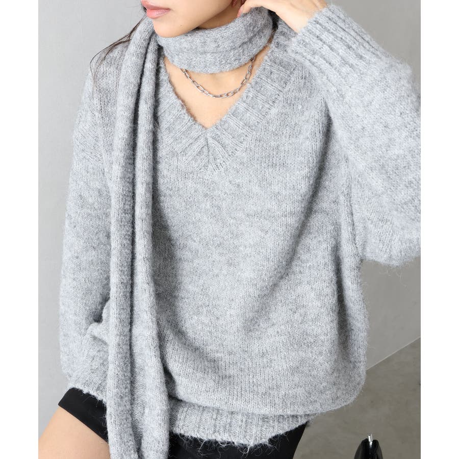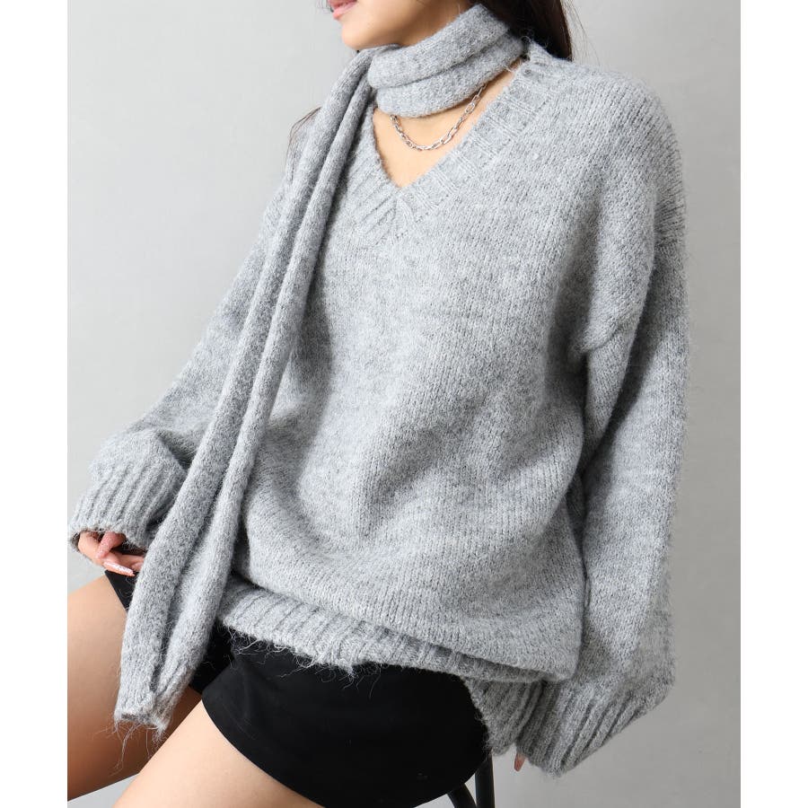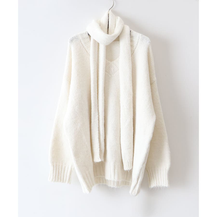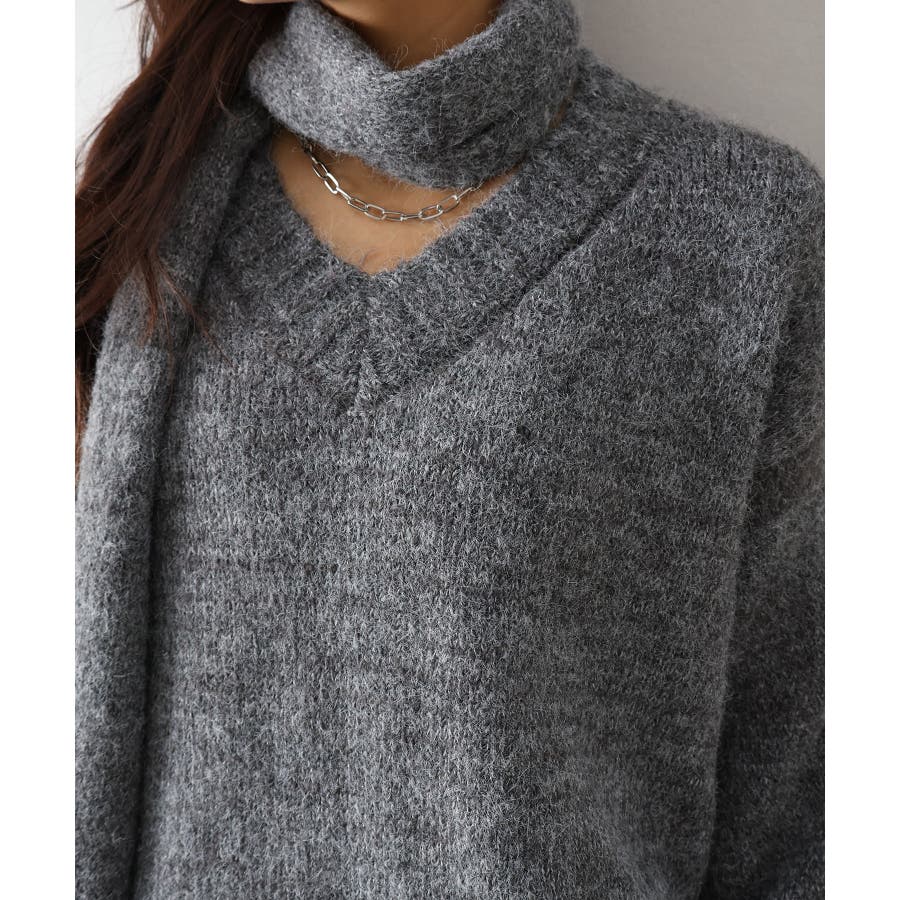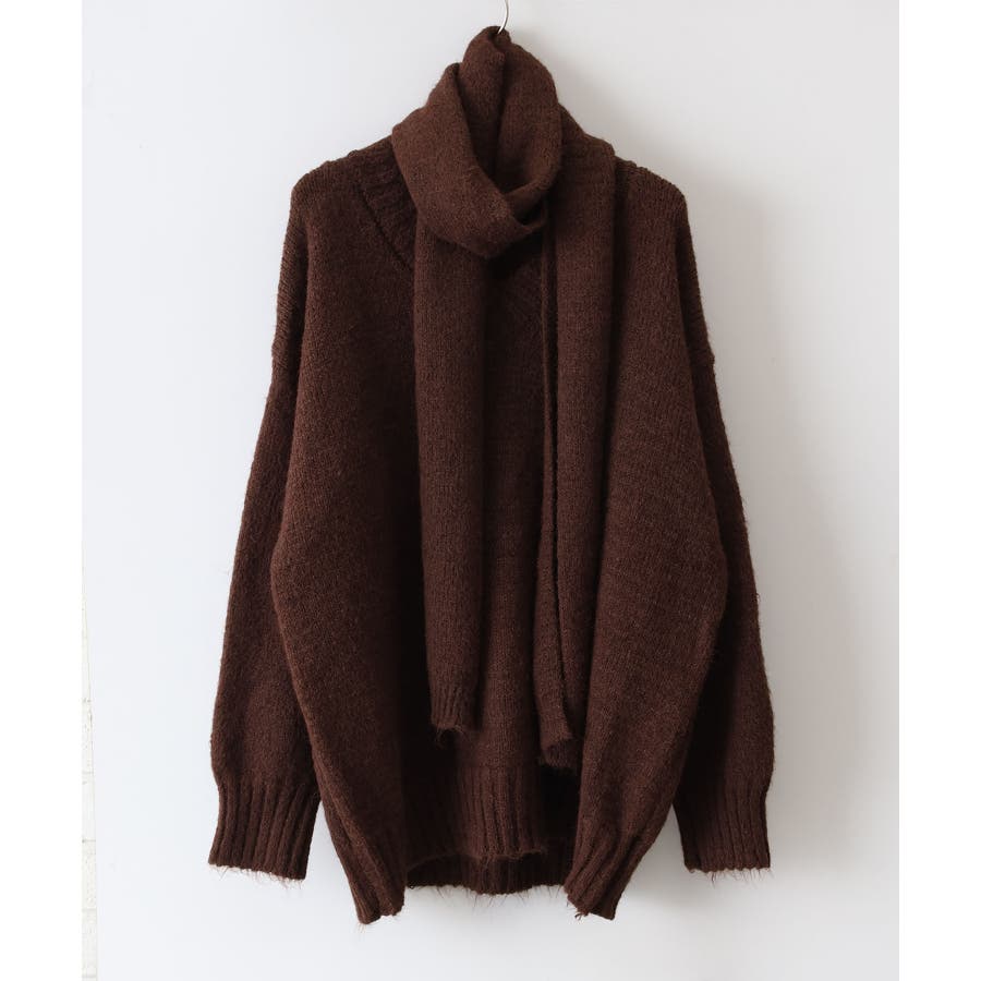 どこから見ても可愛い! ボリューム感がたまらない、愛されマフラー付きニット。
