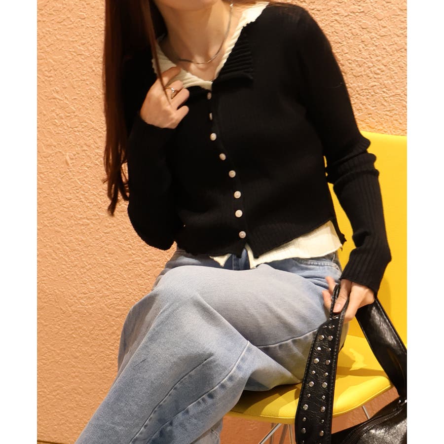 1枚でこなれる。重ね着風デザインが主役になるリブニット