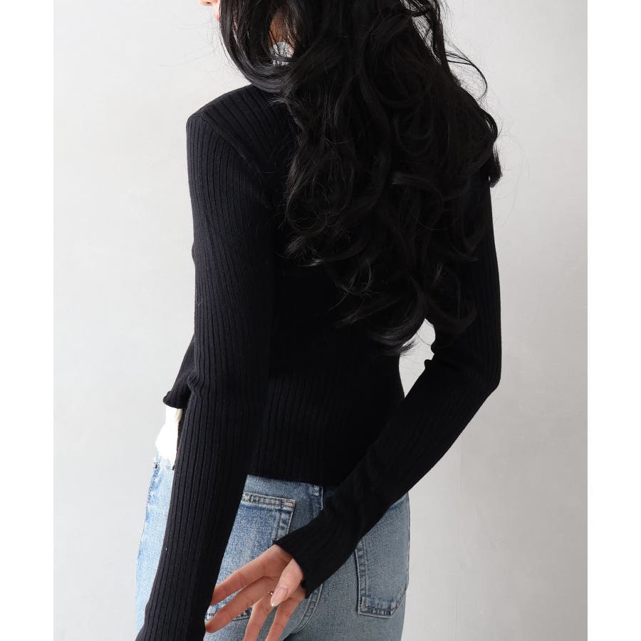 ほどよいフィット感の細リブが女性らしいラインを作り、すっきりとした印象に。柔らかく伸びるニット素材で、長時間着ていてもストレスのない着心地です。