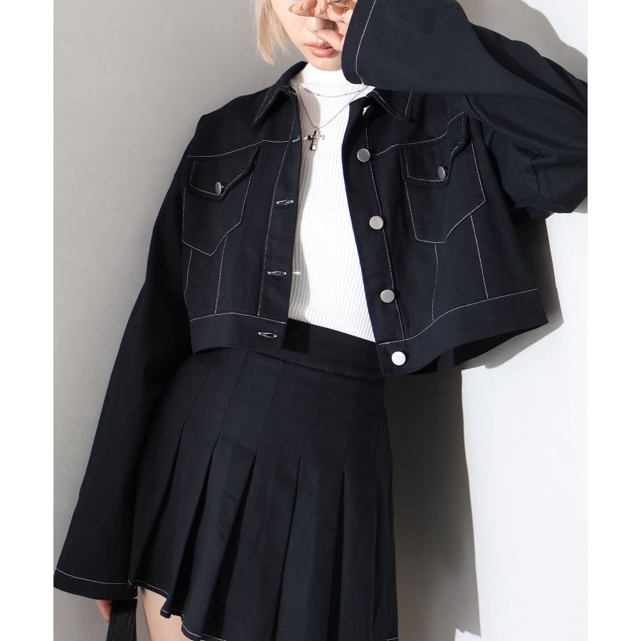 コンパクトな丈感は、ボトムスインもしやすくバランス良く決まります。
