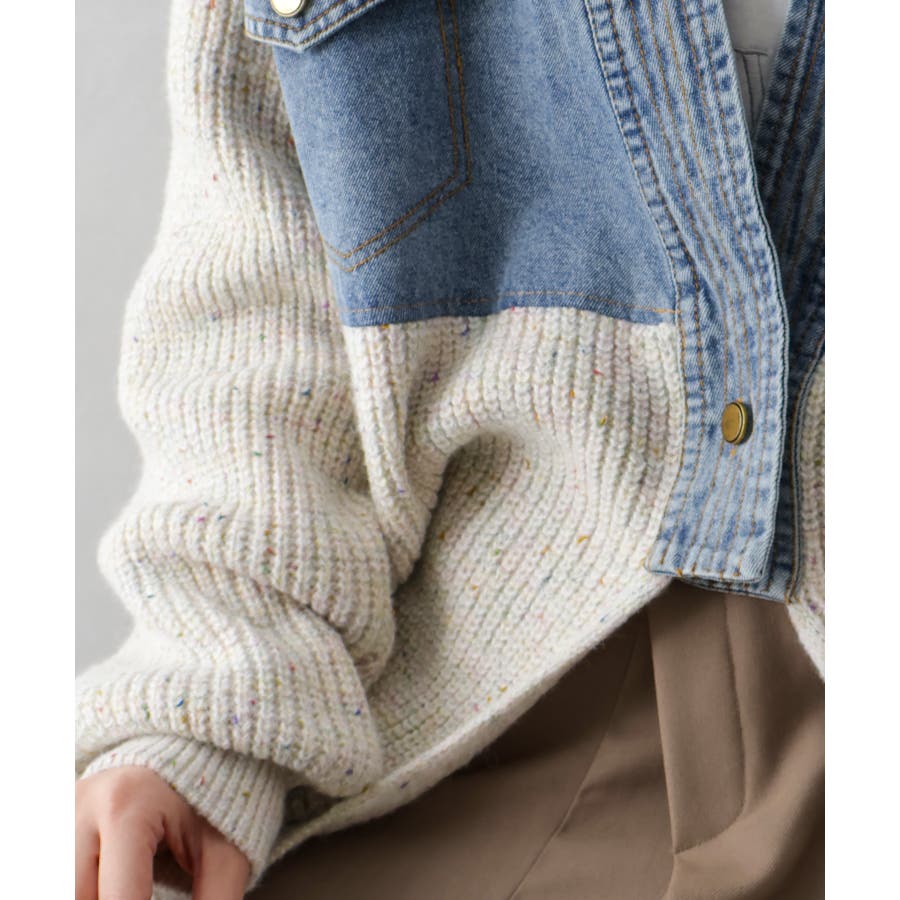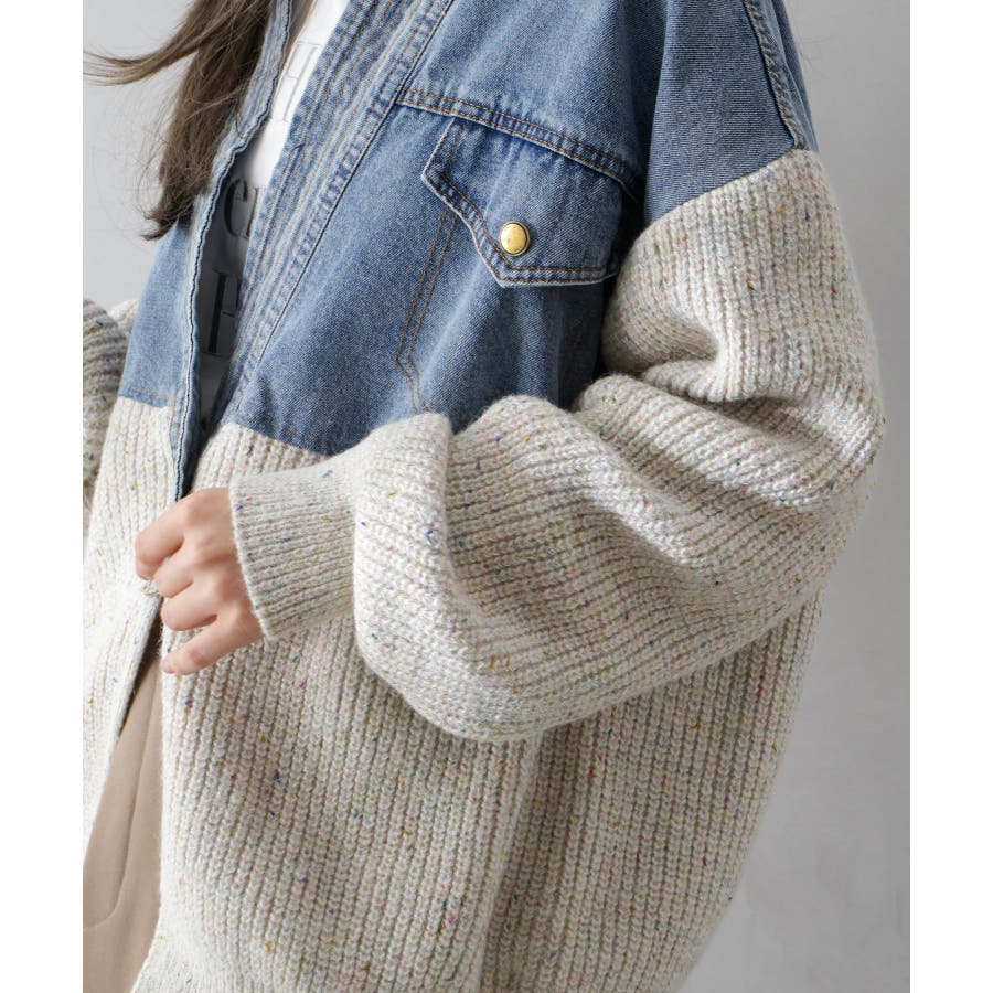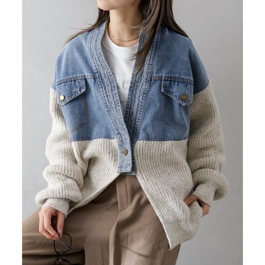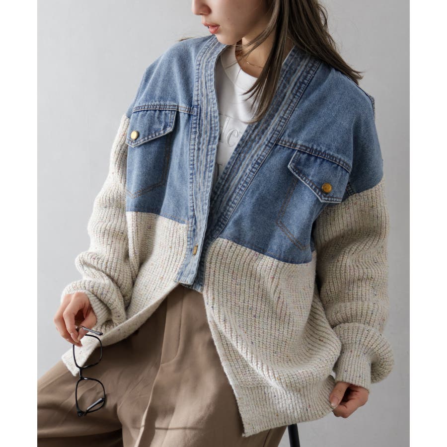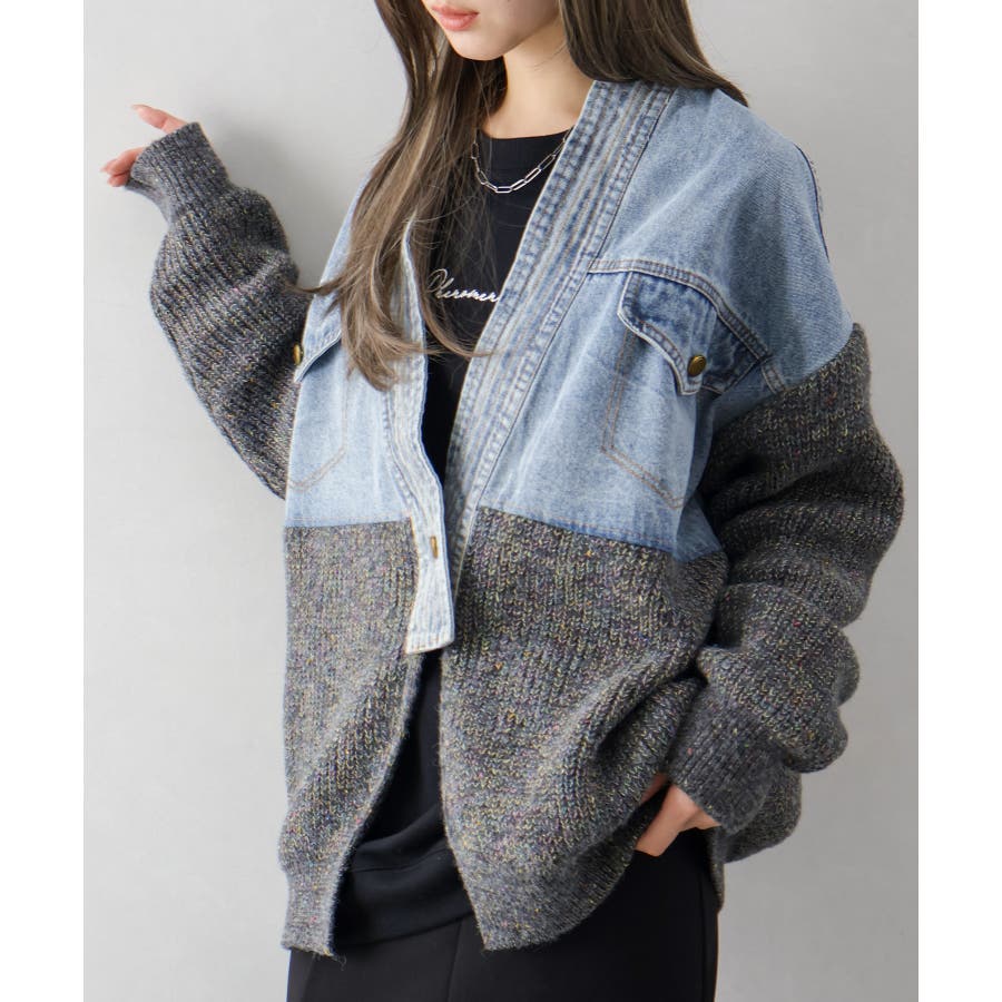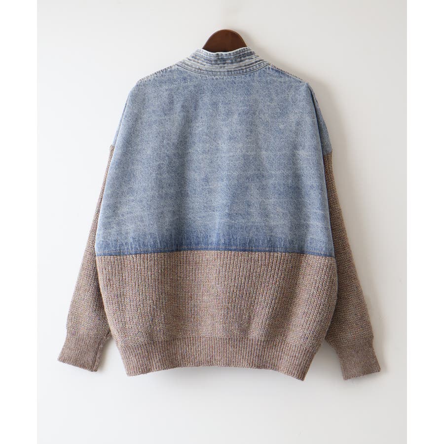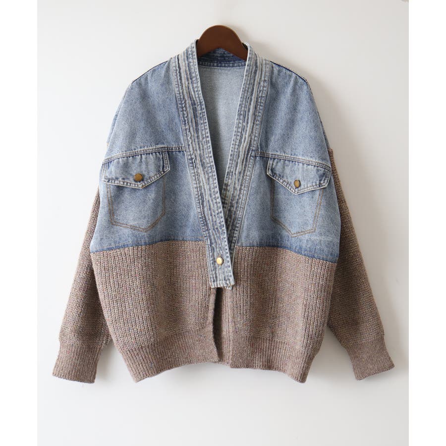 デニム切替ニットカーディガン