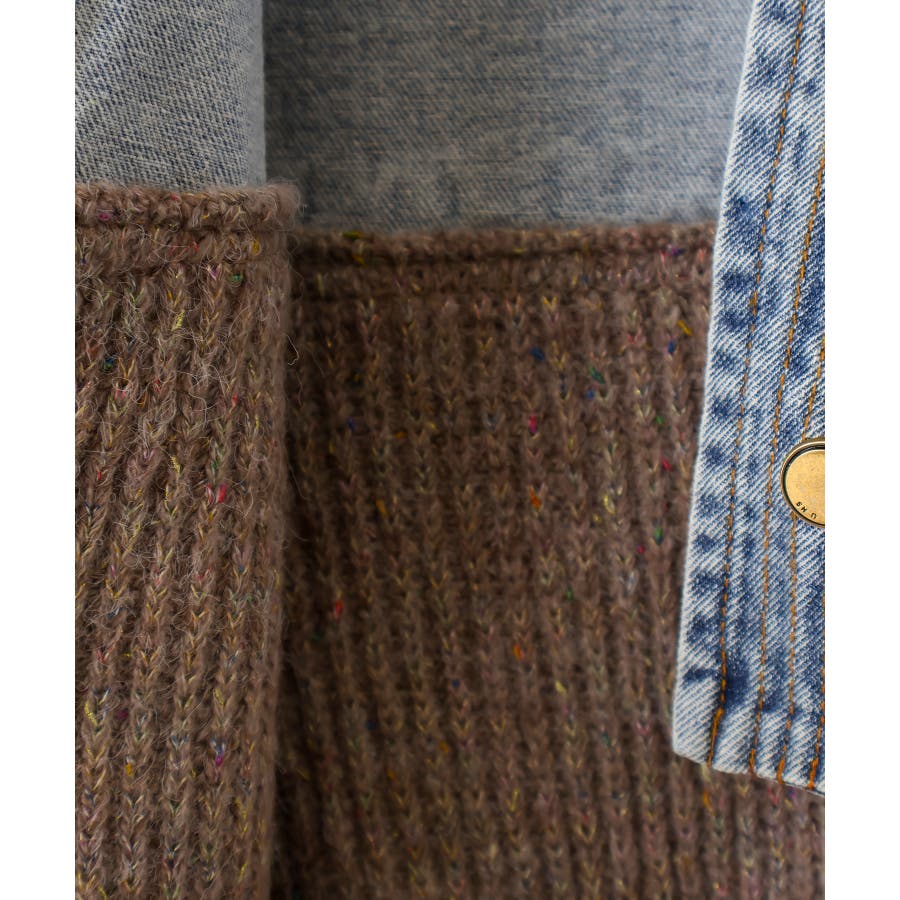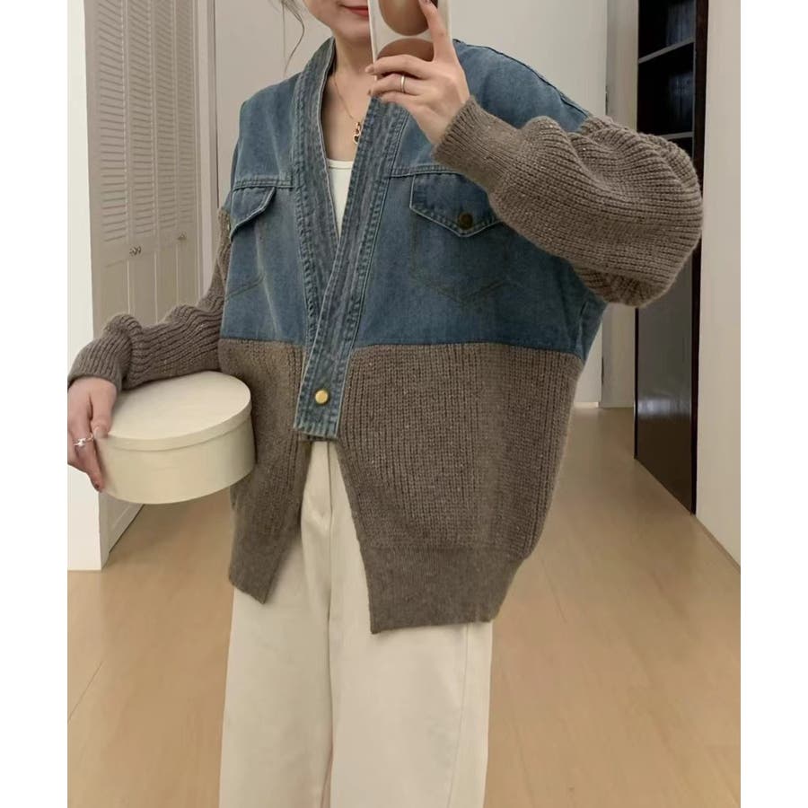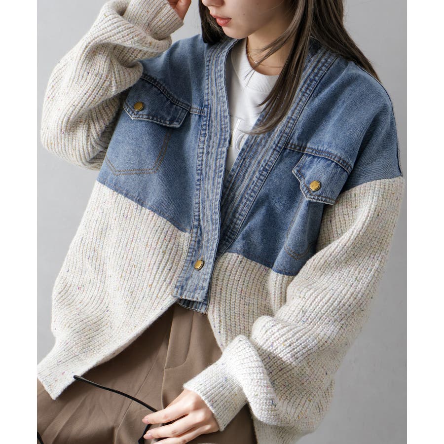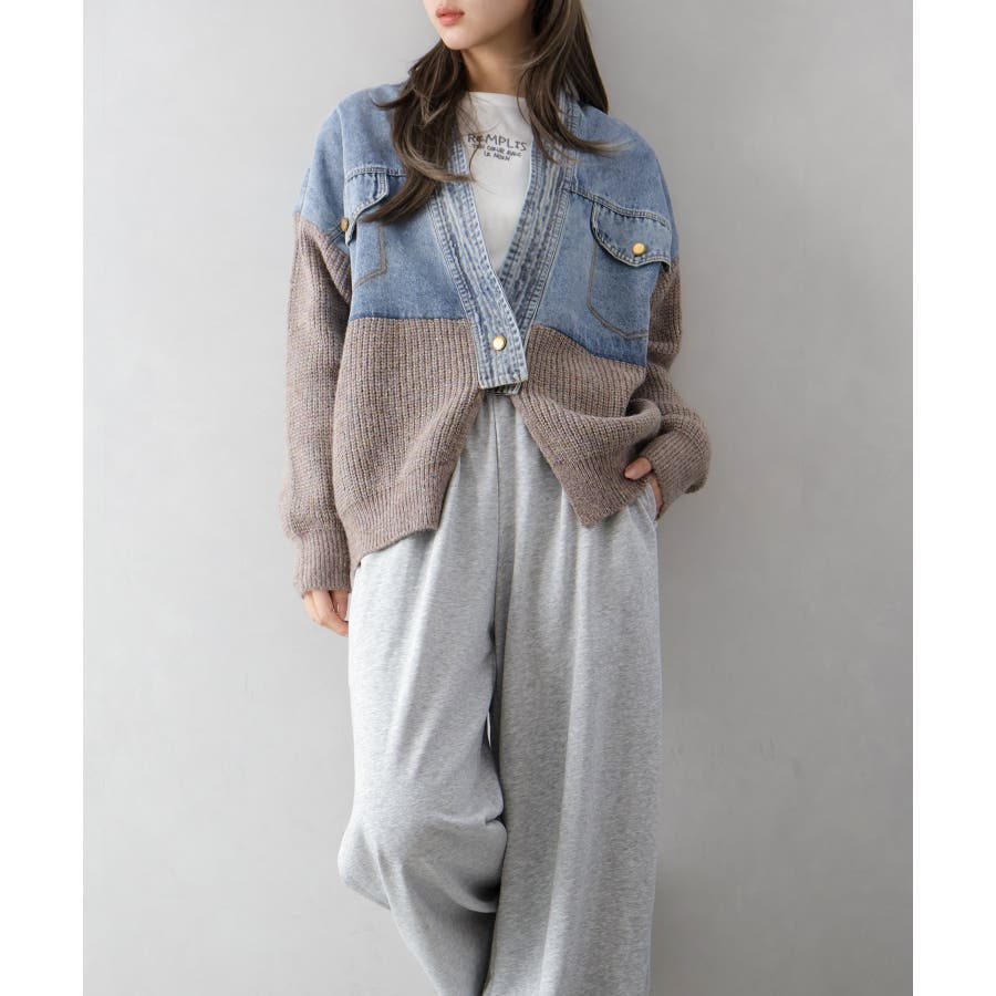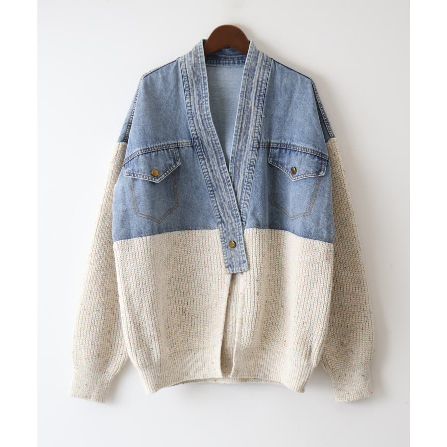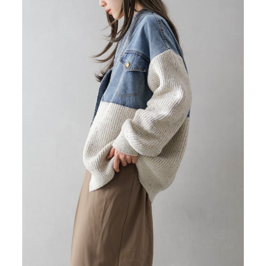 デニム切替ニットカーディガン