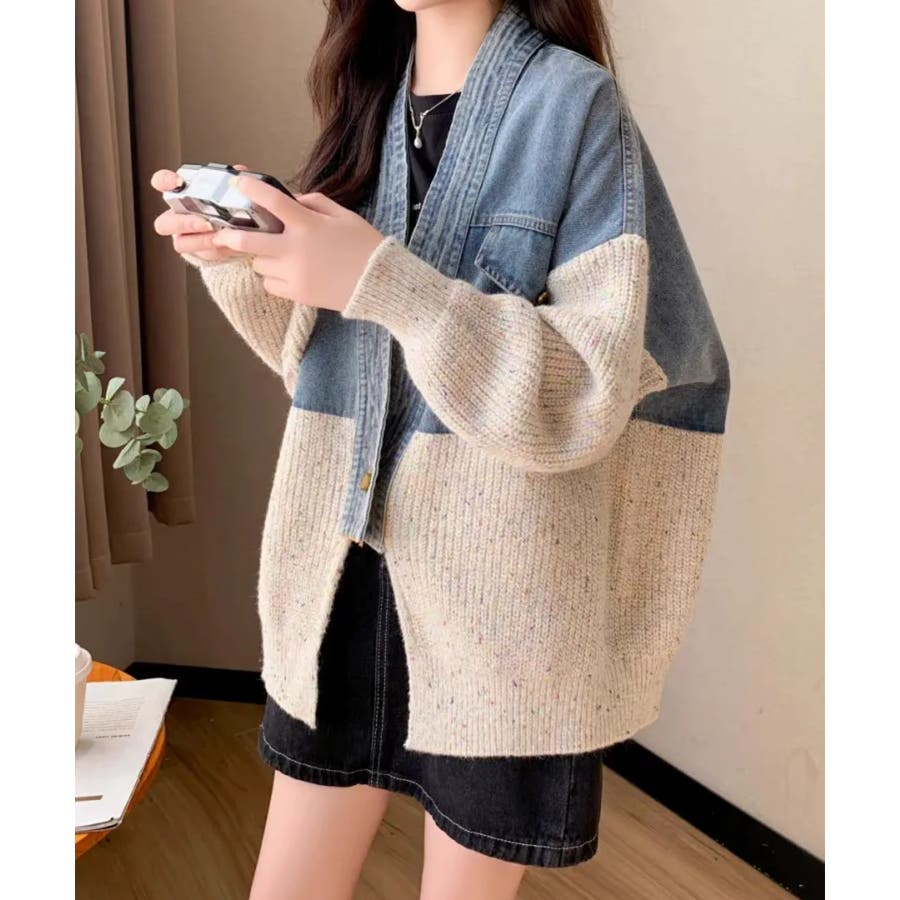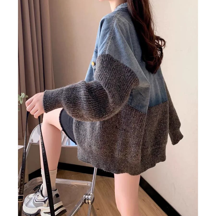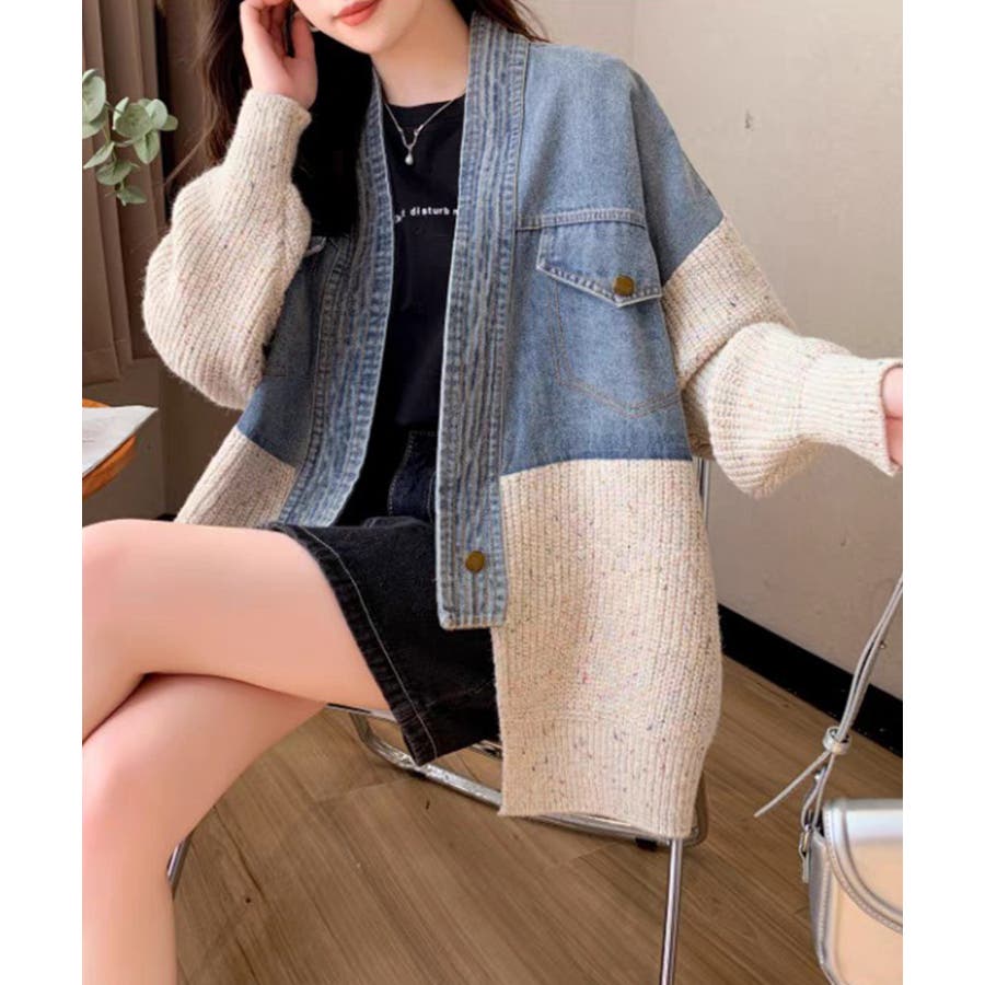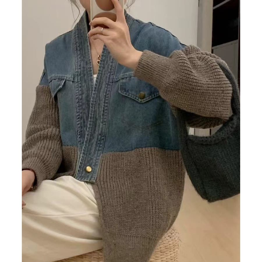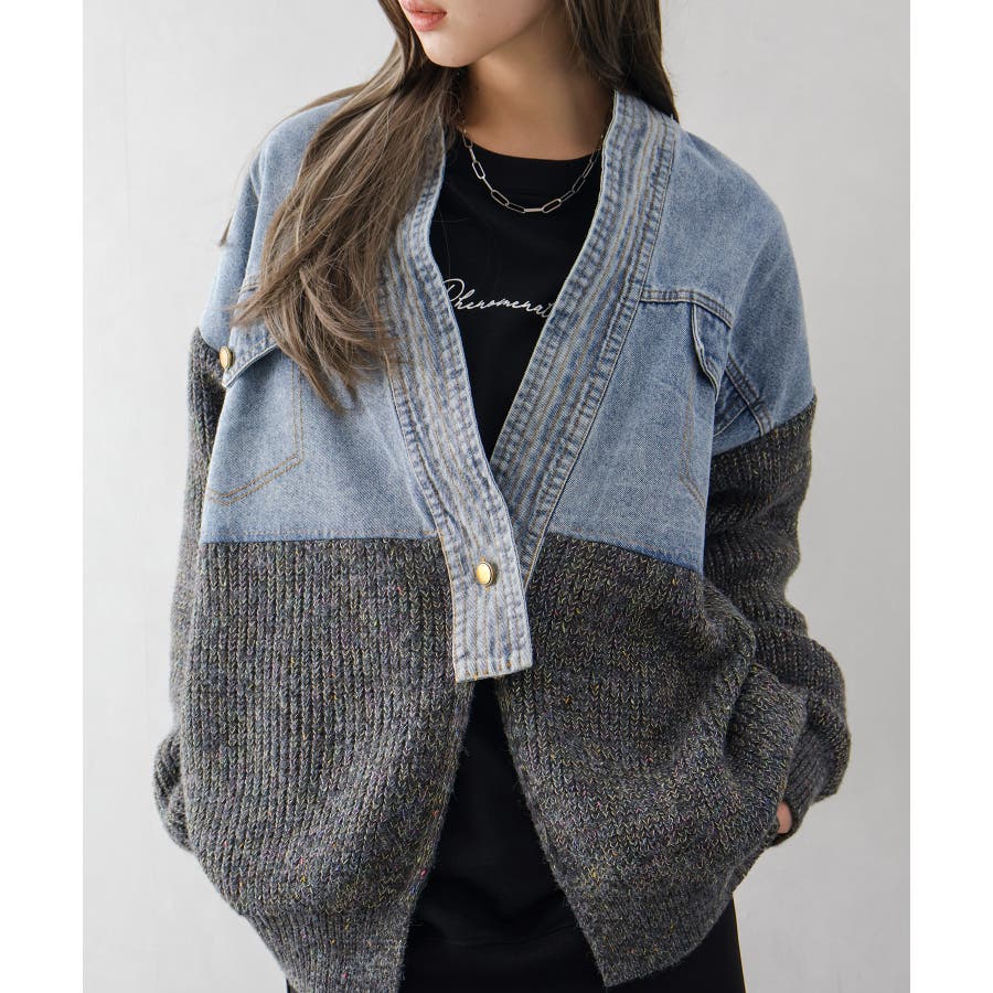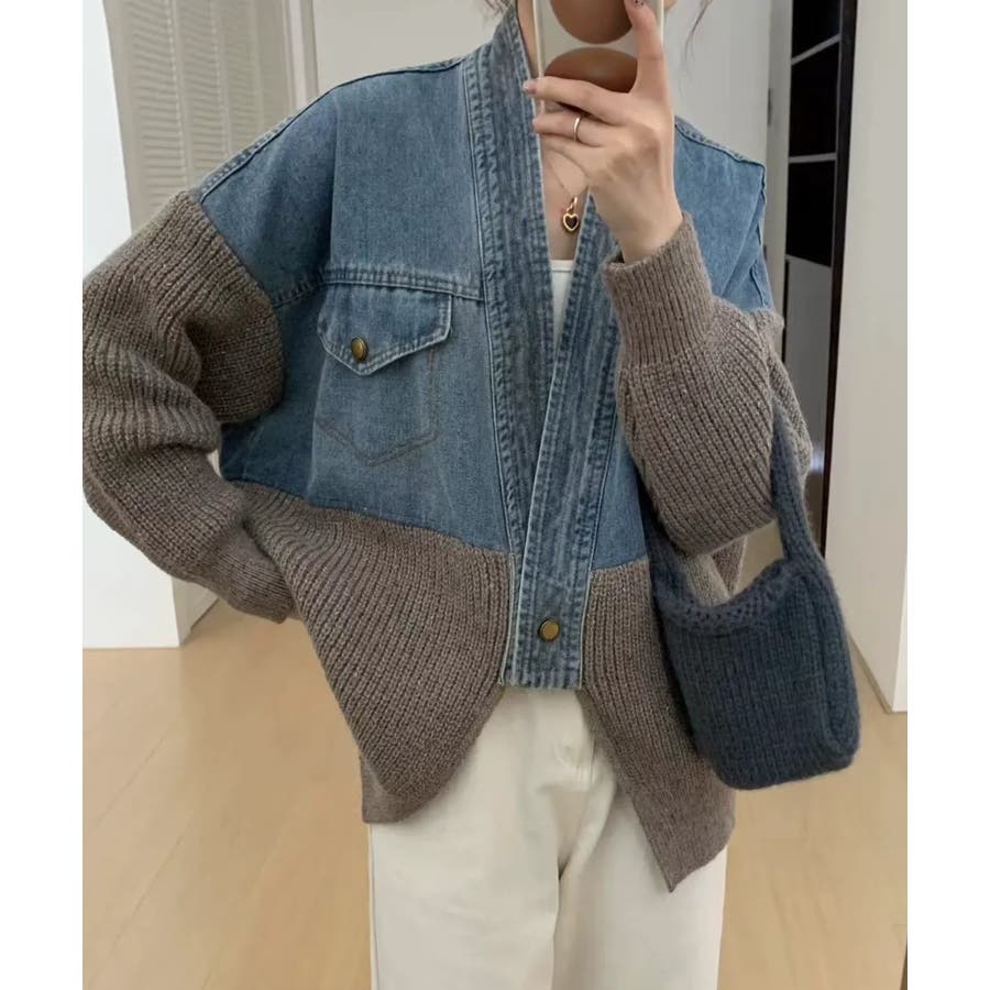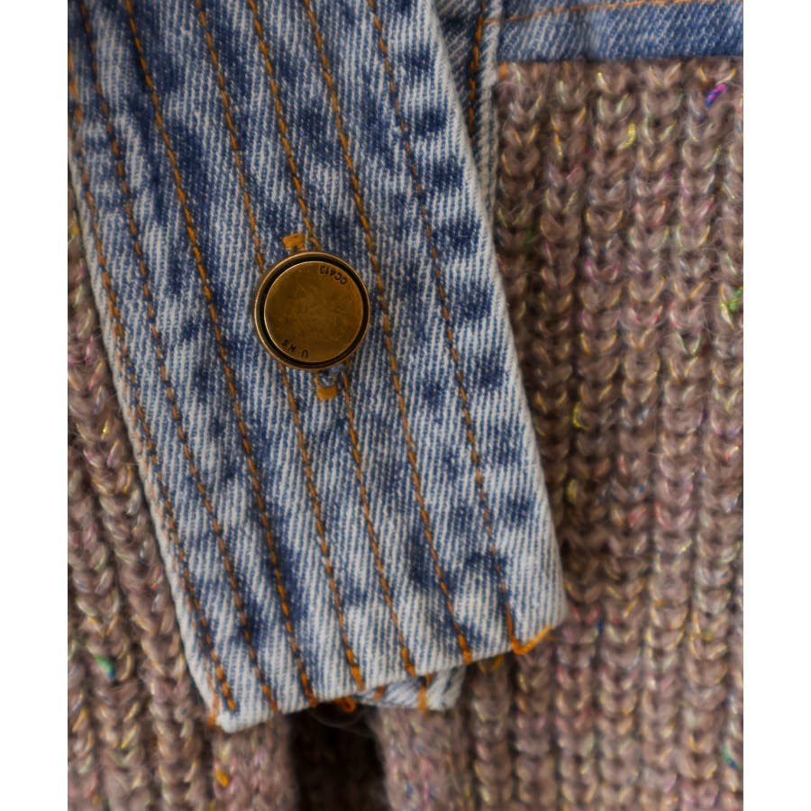 デニム切替ニットカーディガン