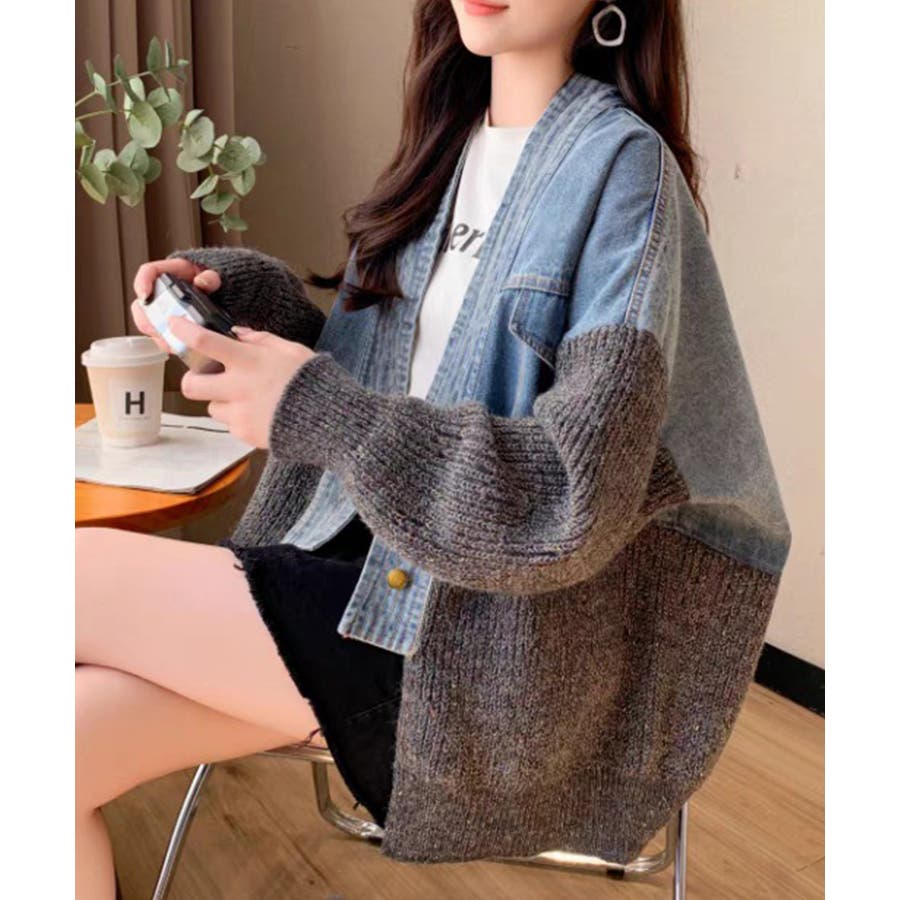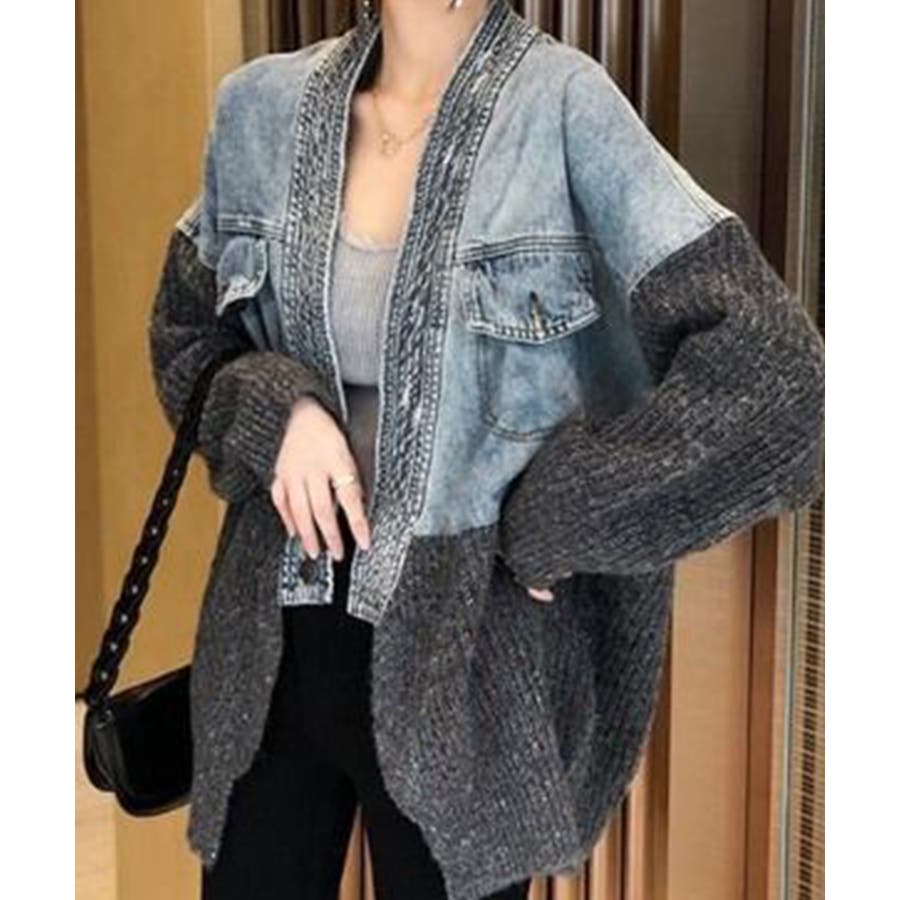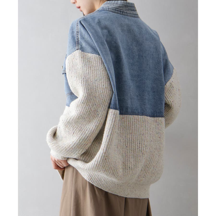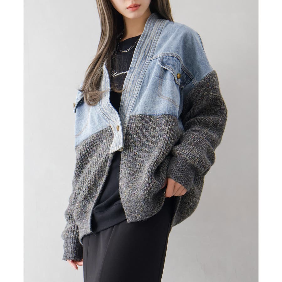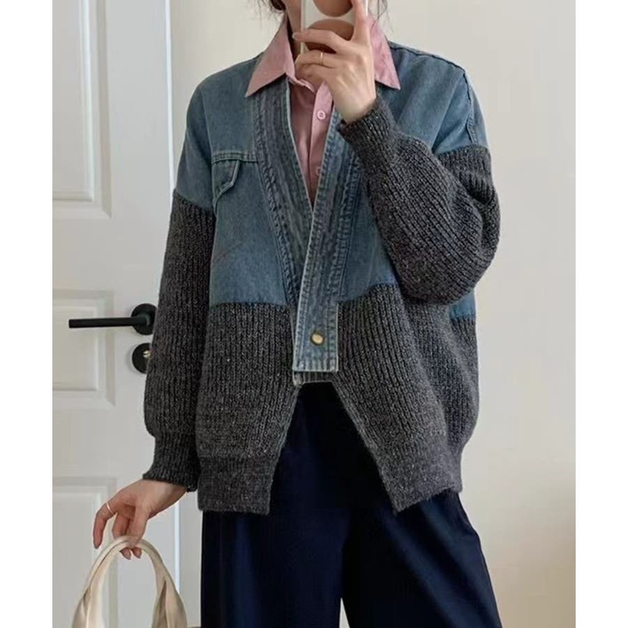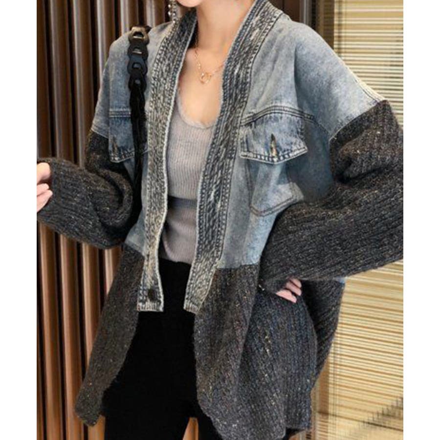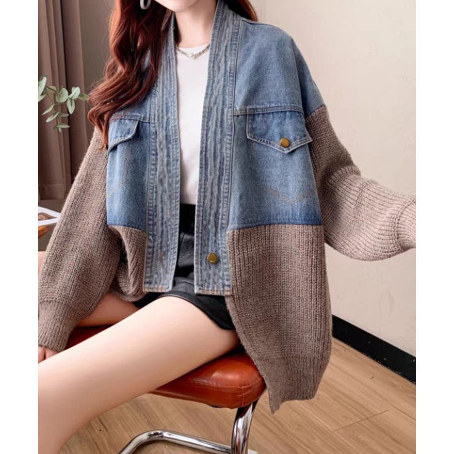 デニム切替ニットカーディガン