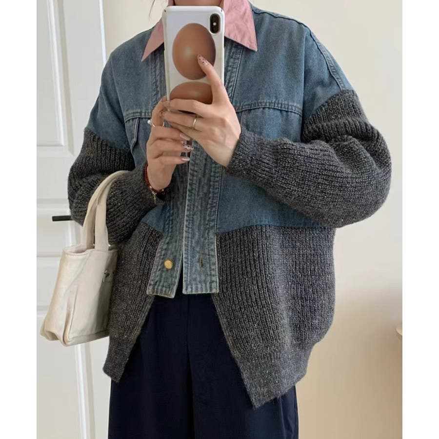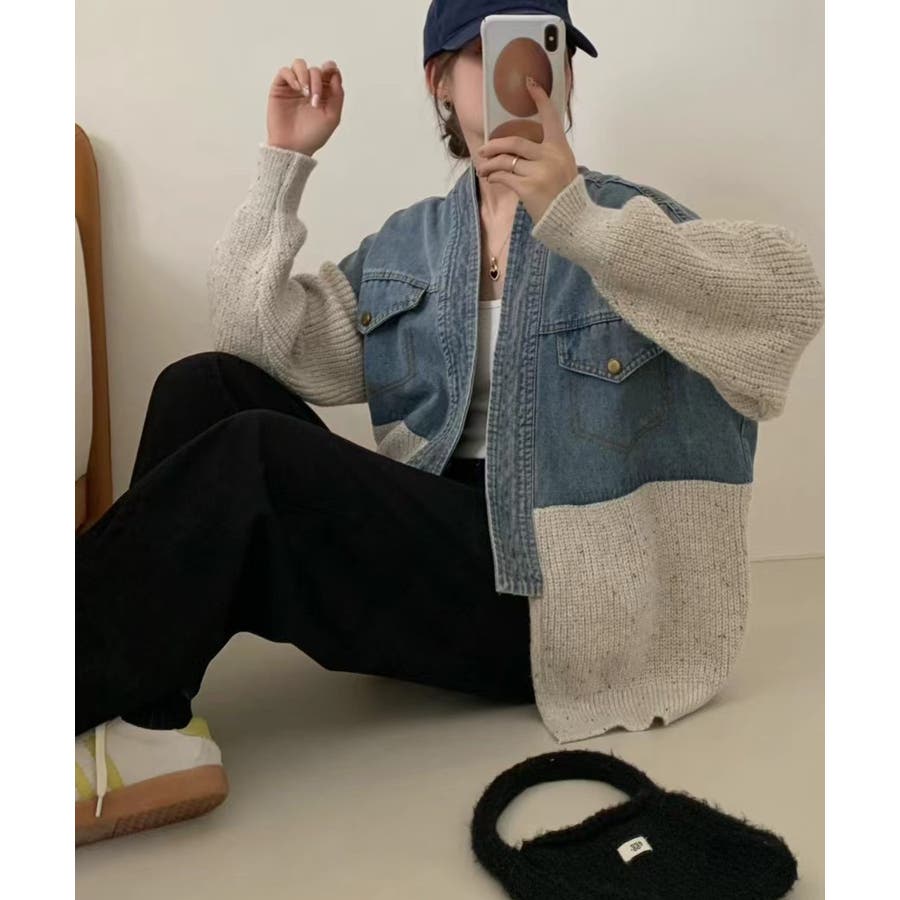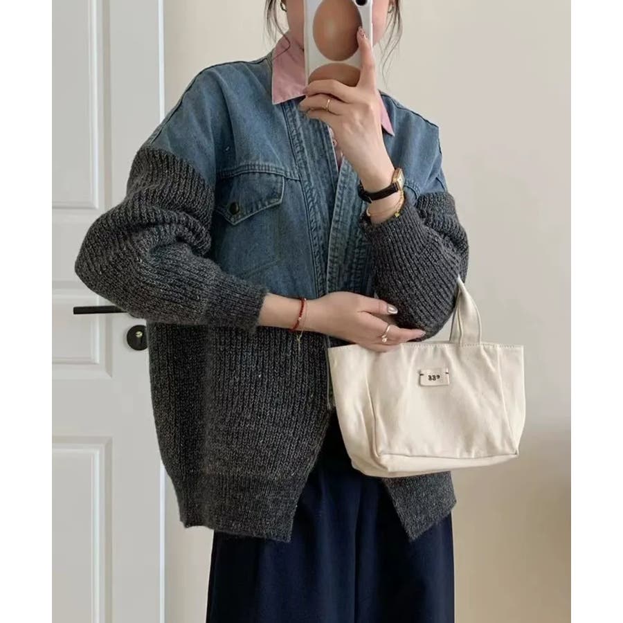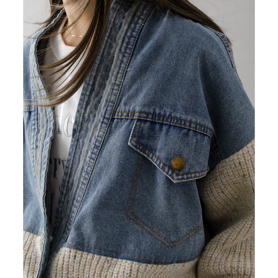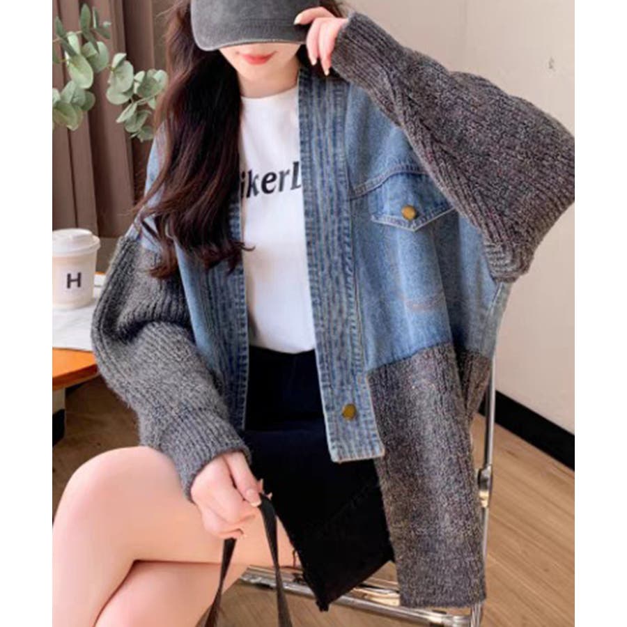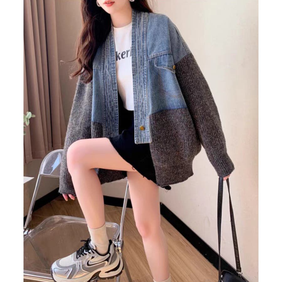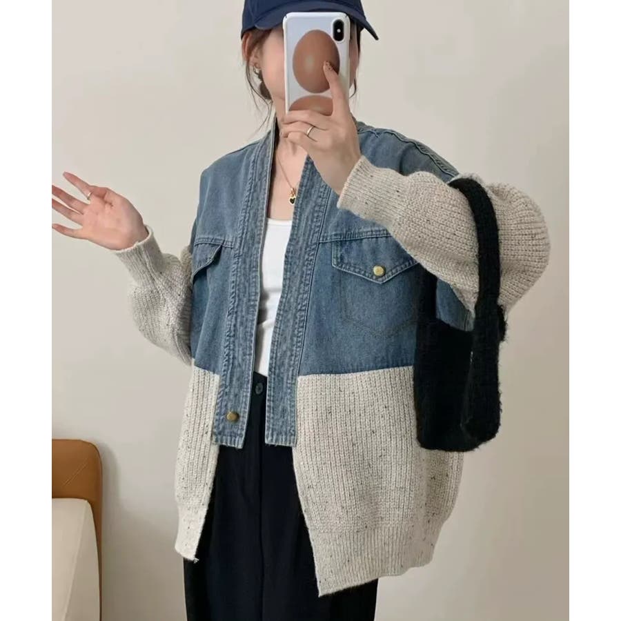 デニム切替ニットカーディガン