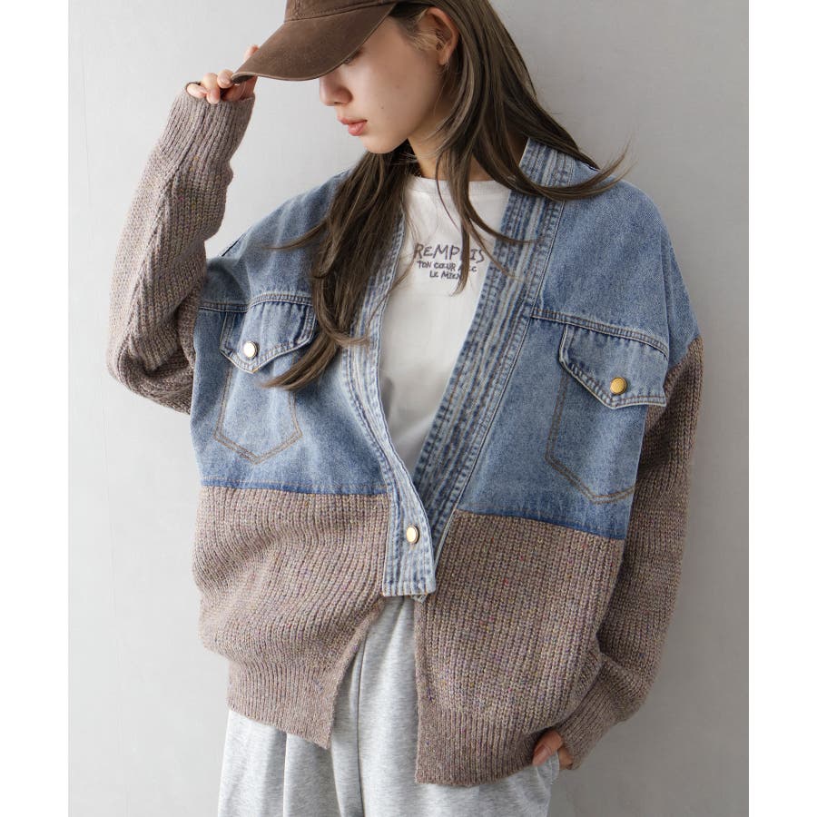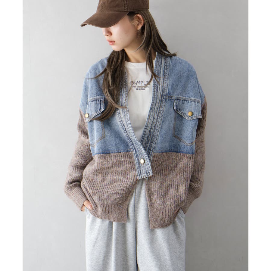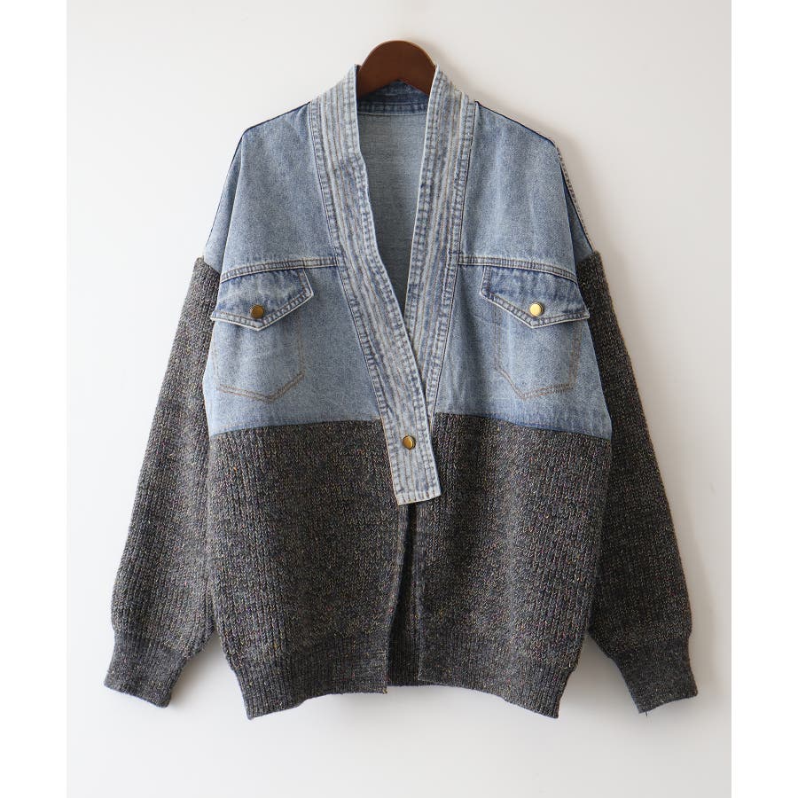【SpRay デニム切替ニットカーディガン】