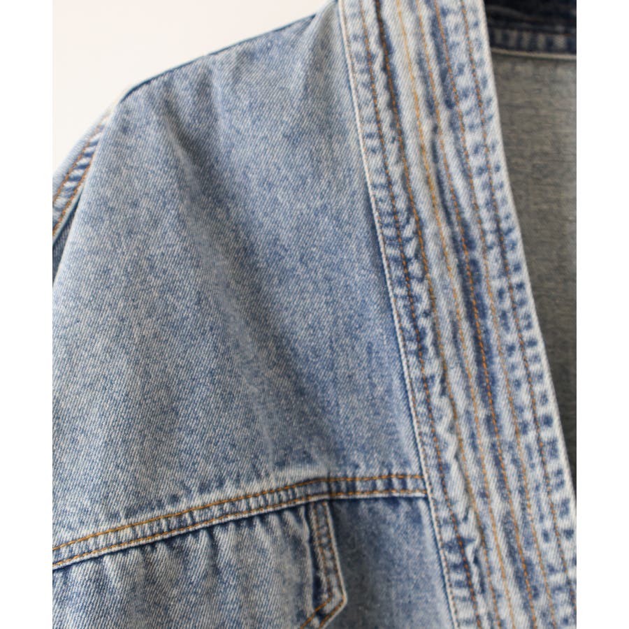 襟、フロント部分などにデニム素材が