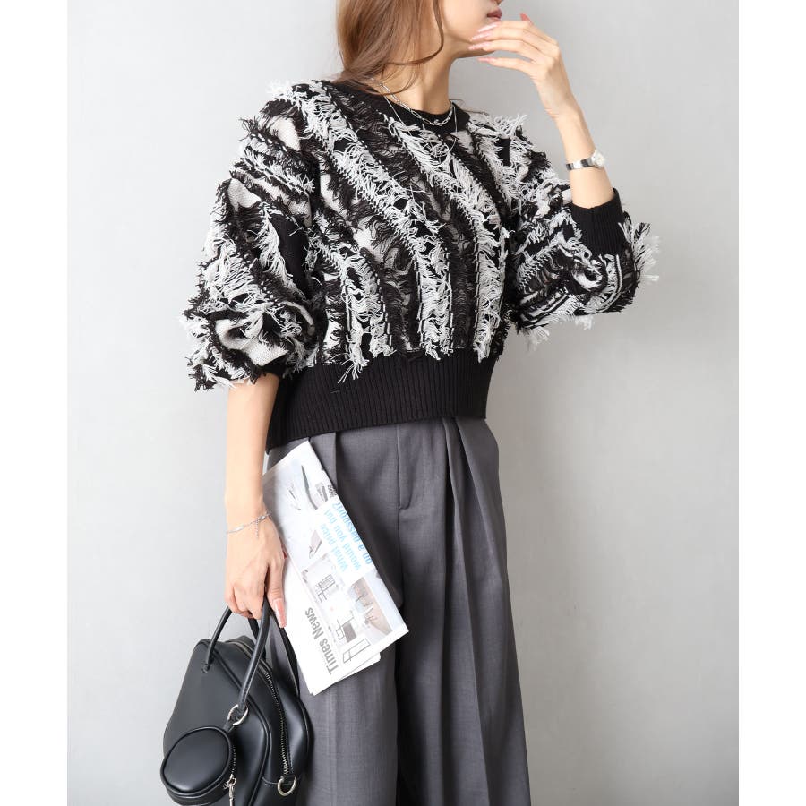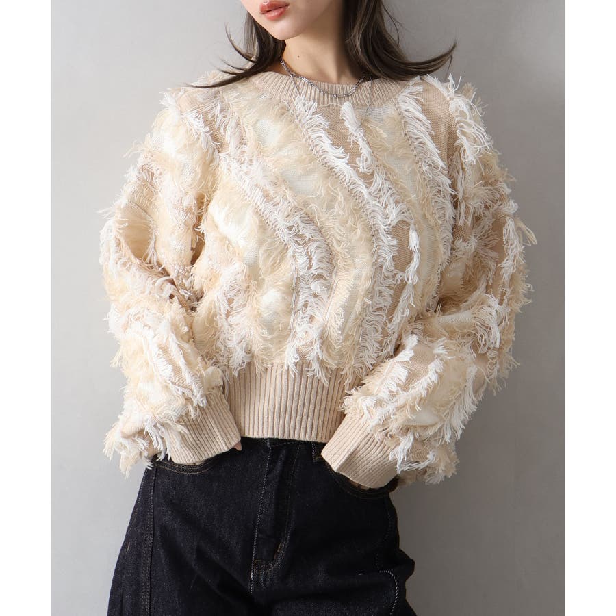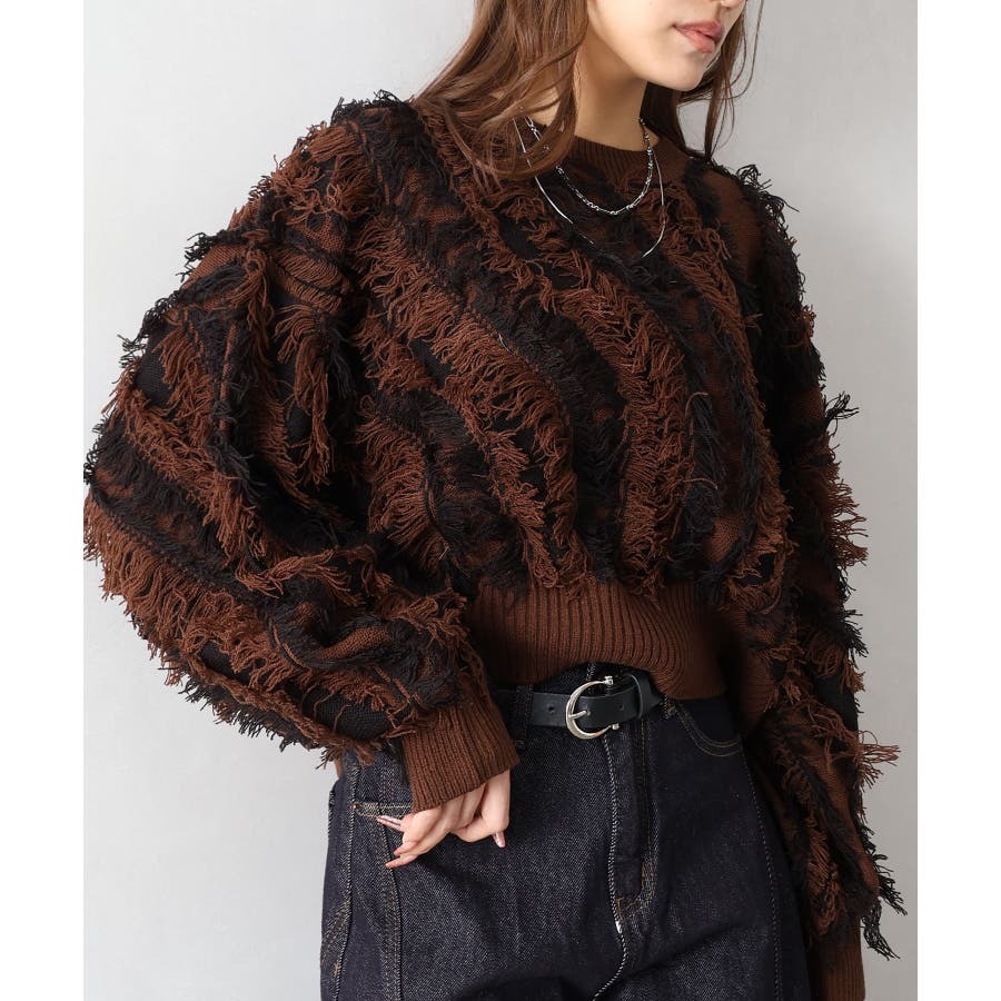 大胆なフリンジデザインが存在感を放つ主役級フリンジニット。