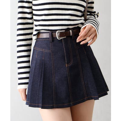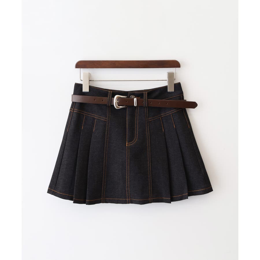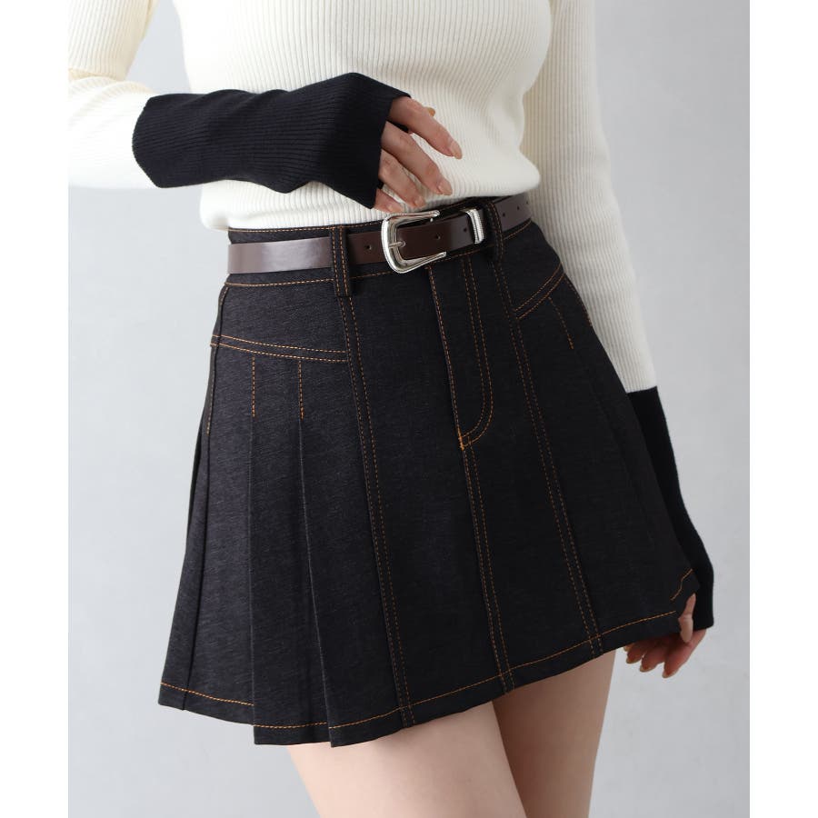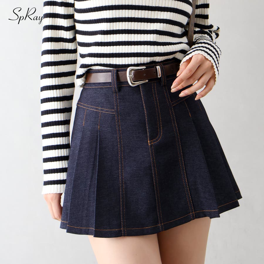 【SpRay ベルト付きステッチプリーツミニスカート】
