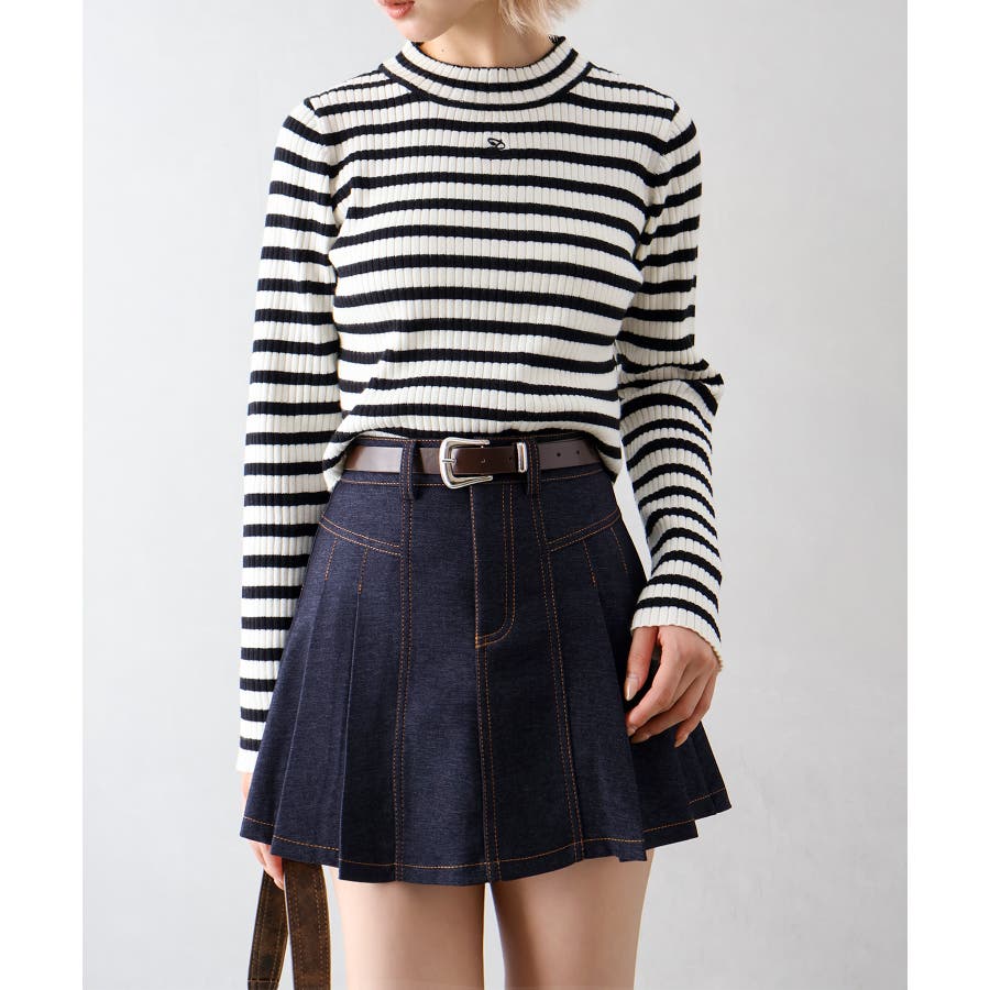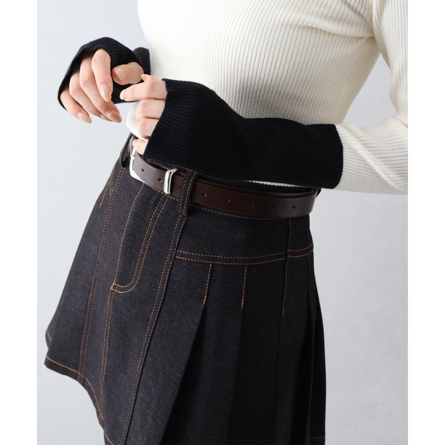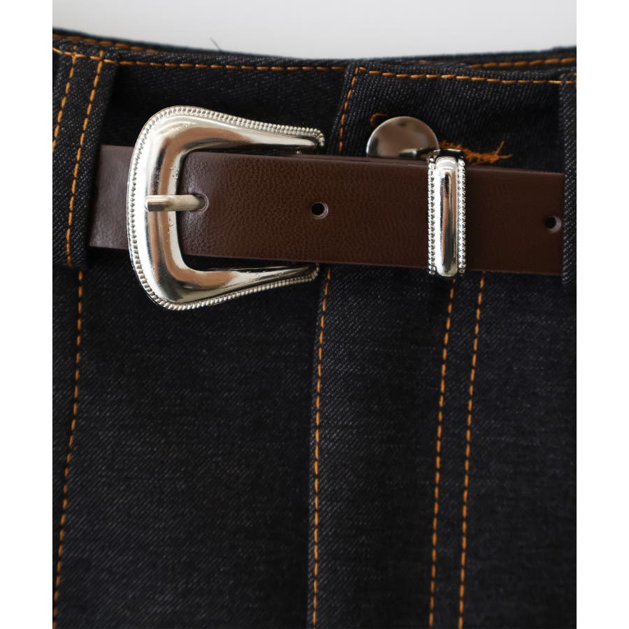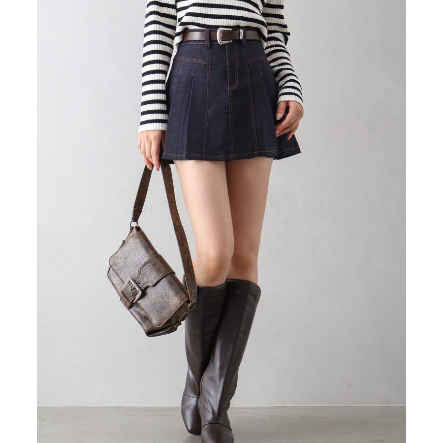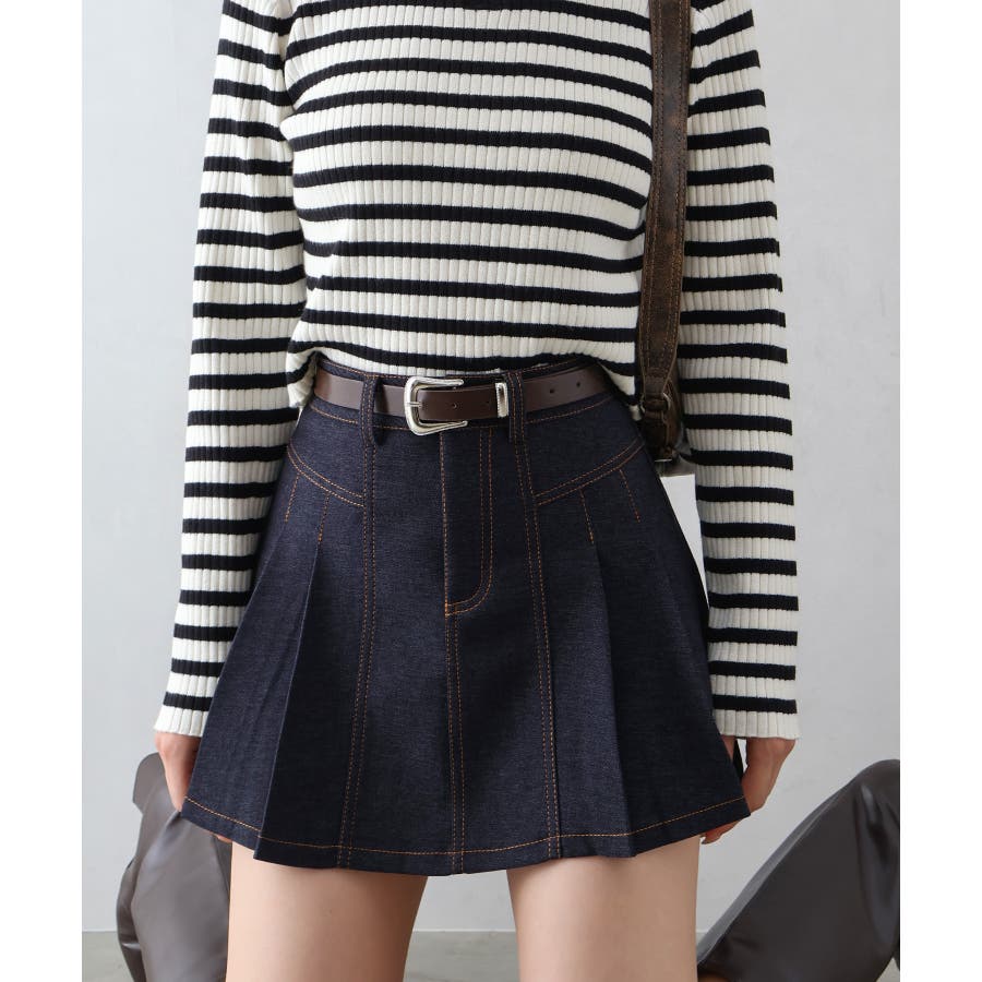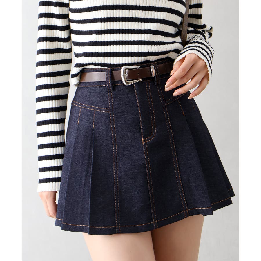 ベルト付きステッチプリーツミニスカート