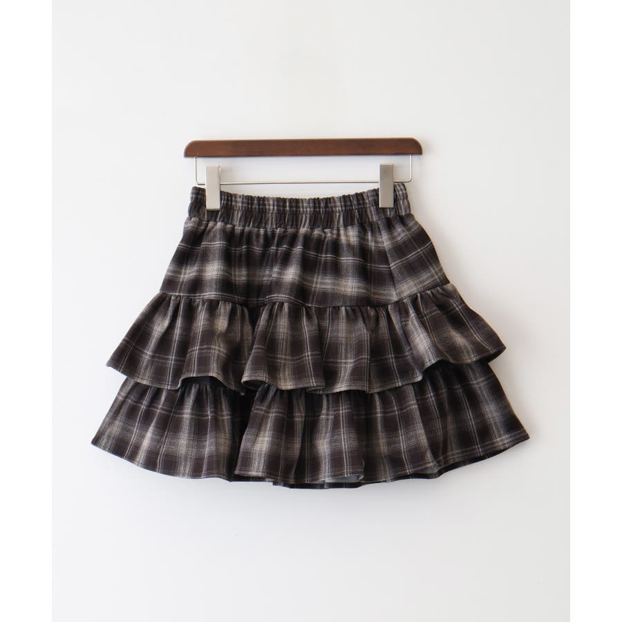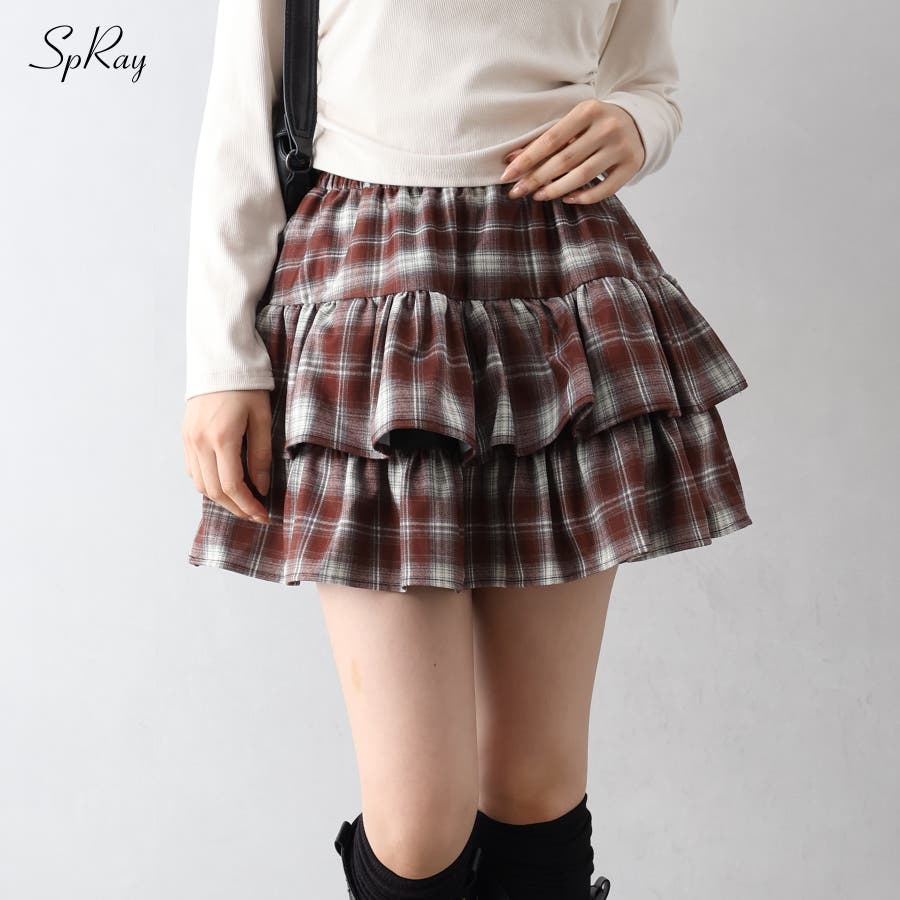 【SpRay チェックティアードフリルミニスカート】