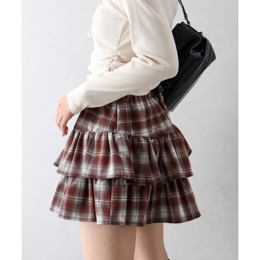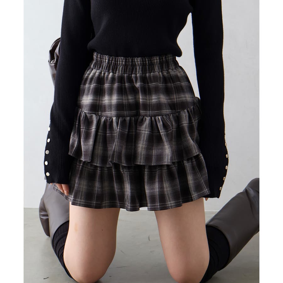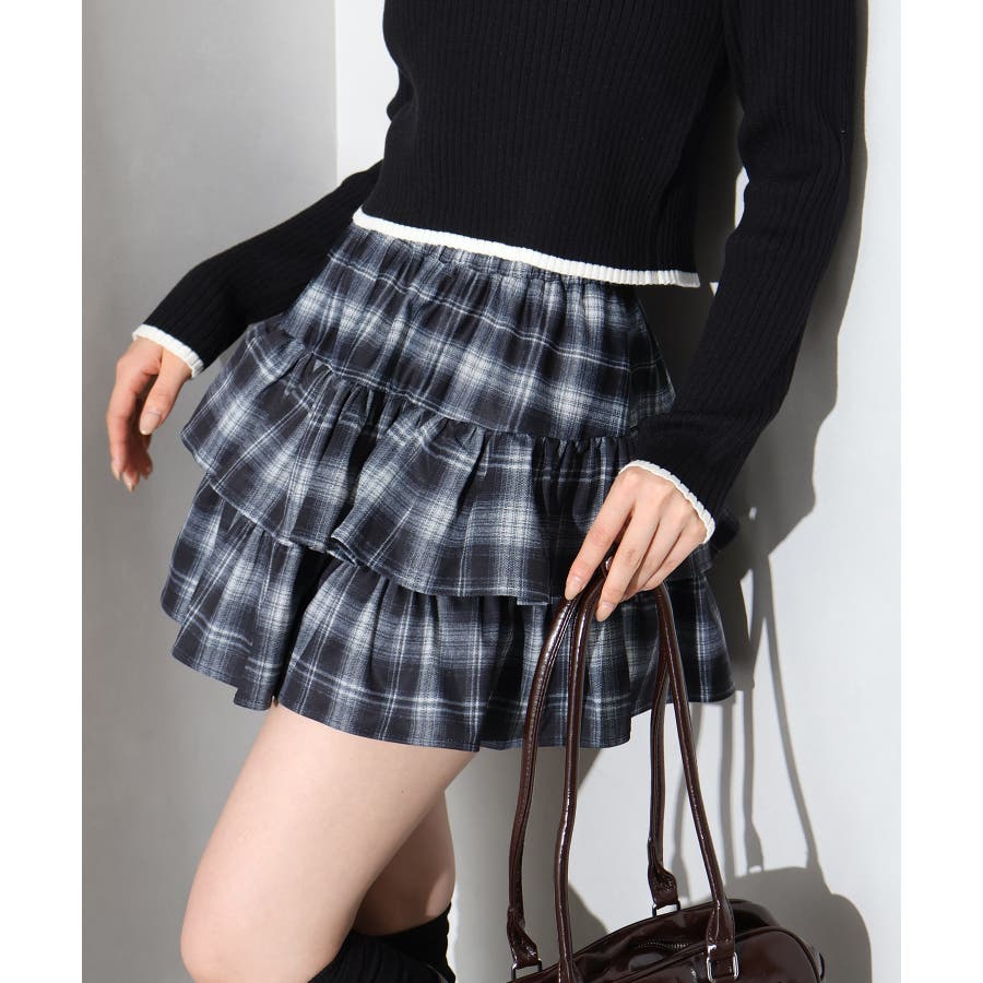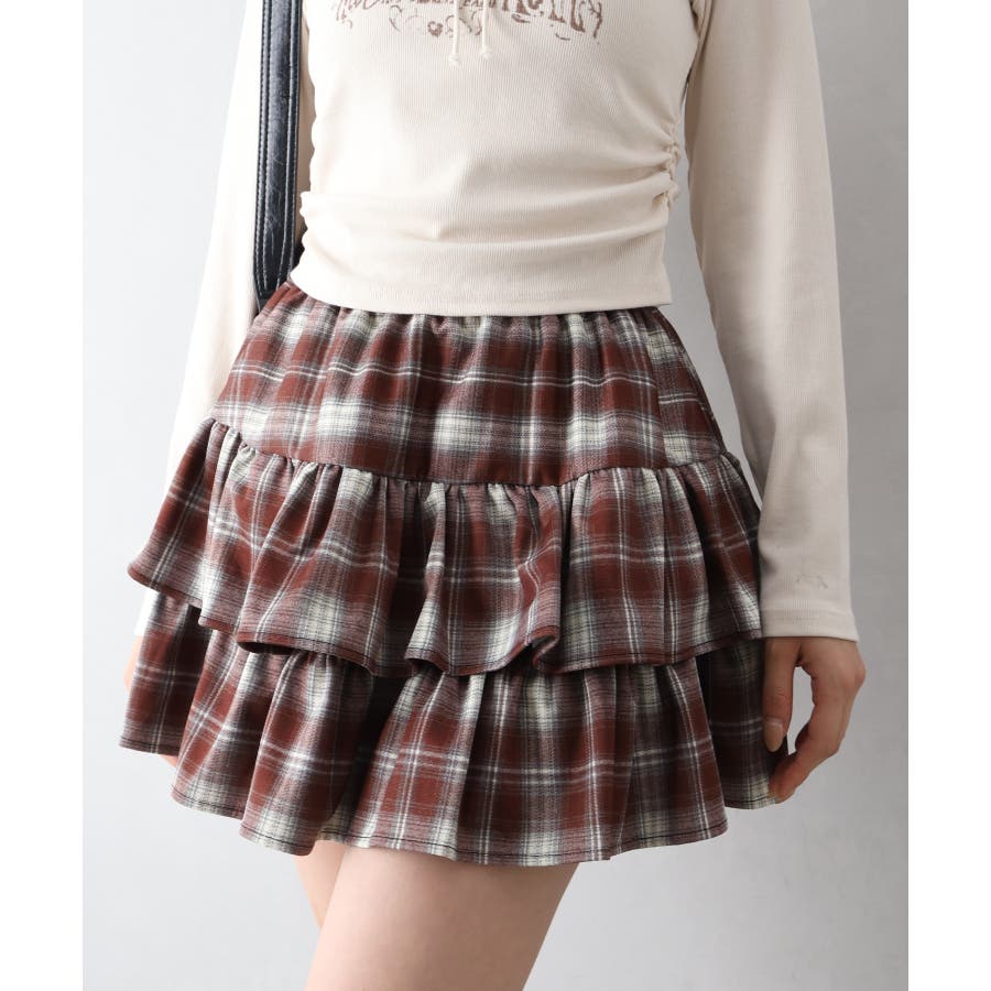チェックティアードフリルミニスカート