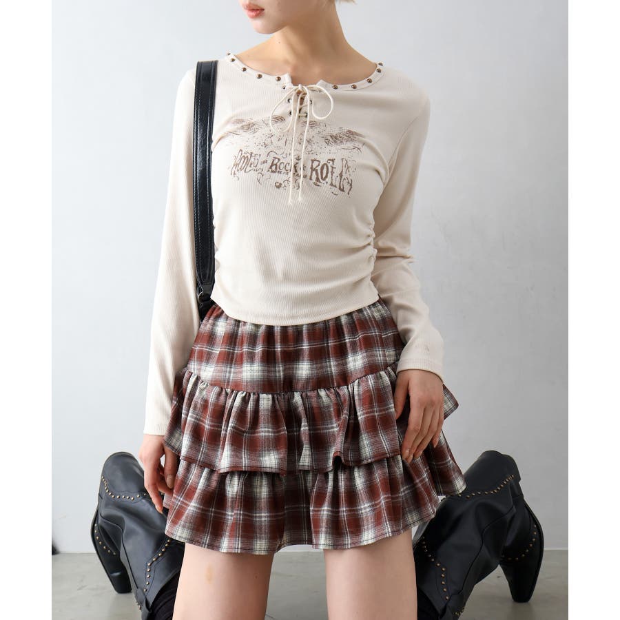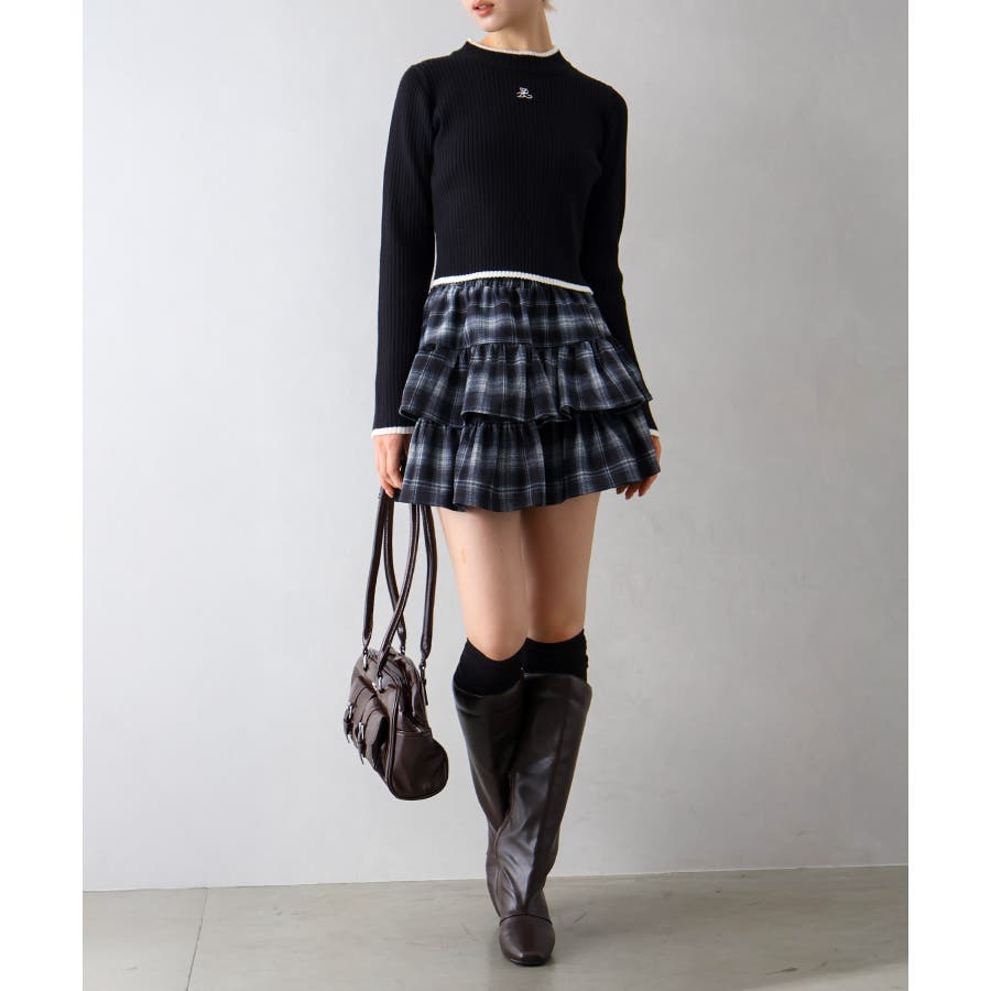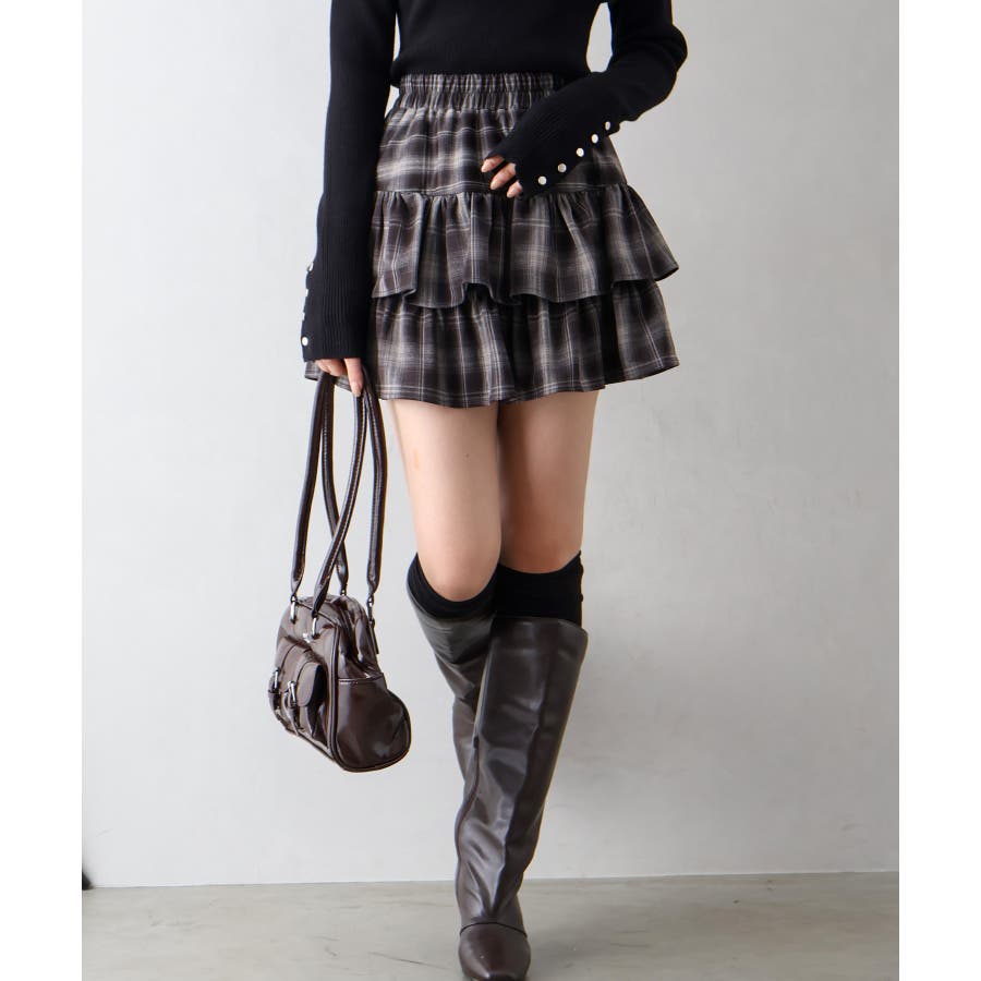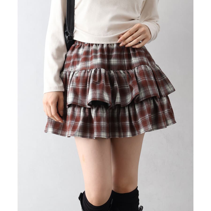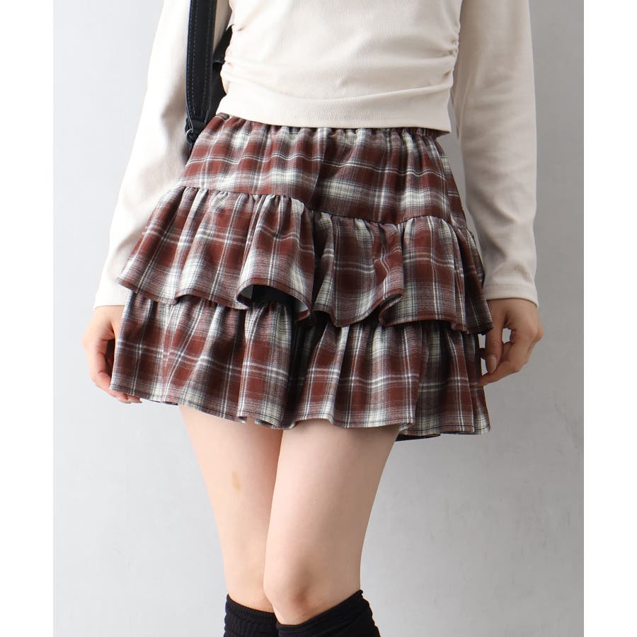 チェックティアードフリルミニスカート