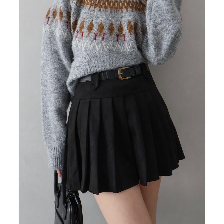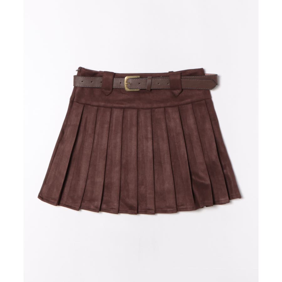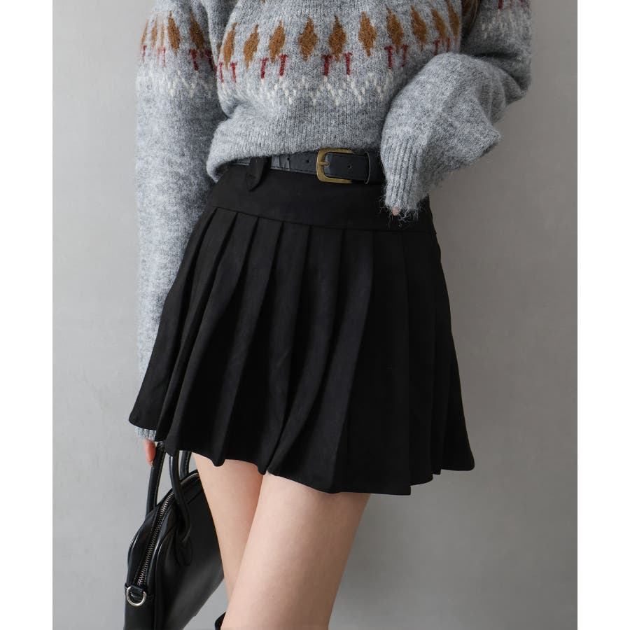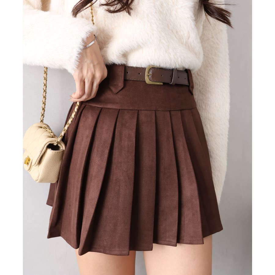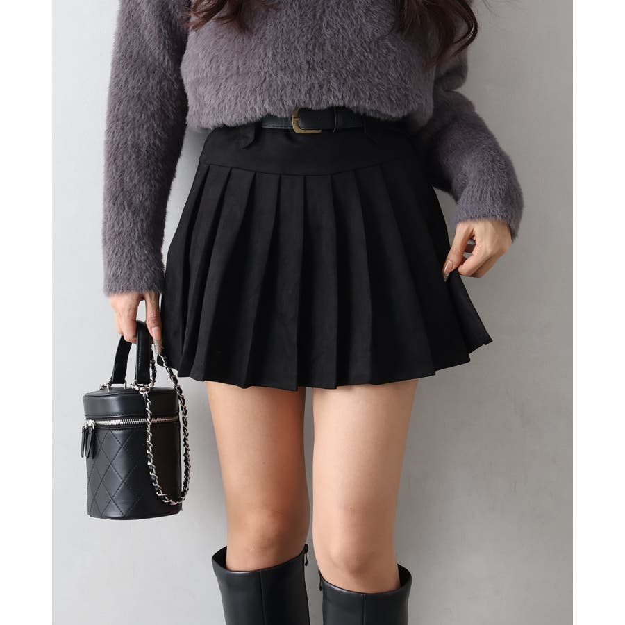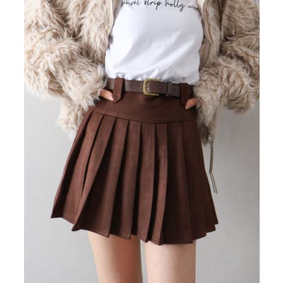 【SpRay ベルト付フェイクスウェードプリーツミニスカート】