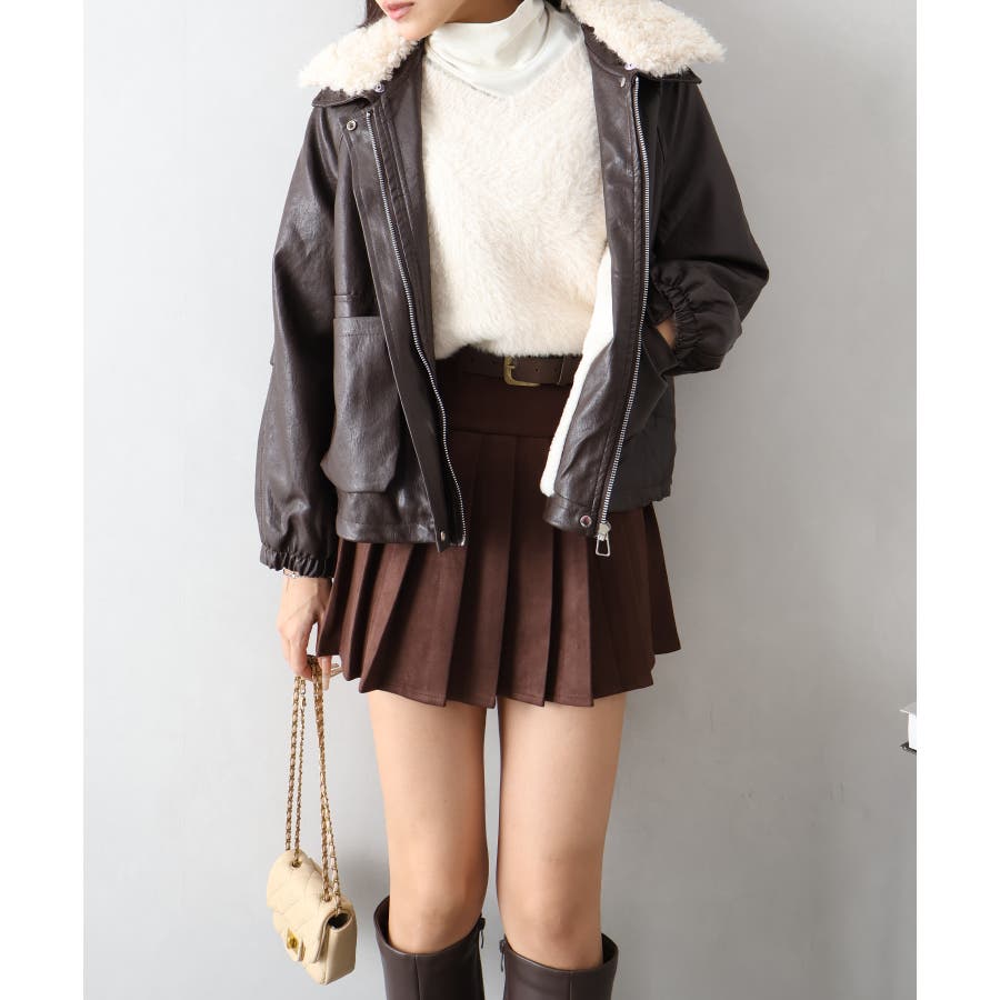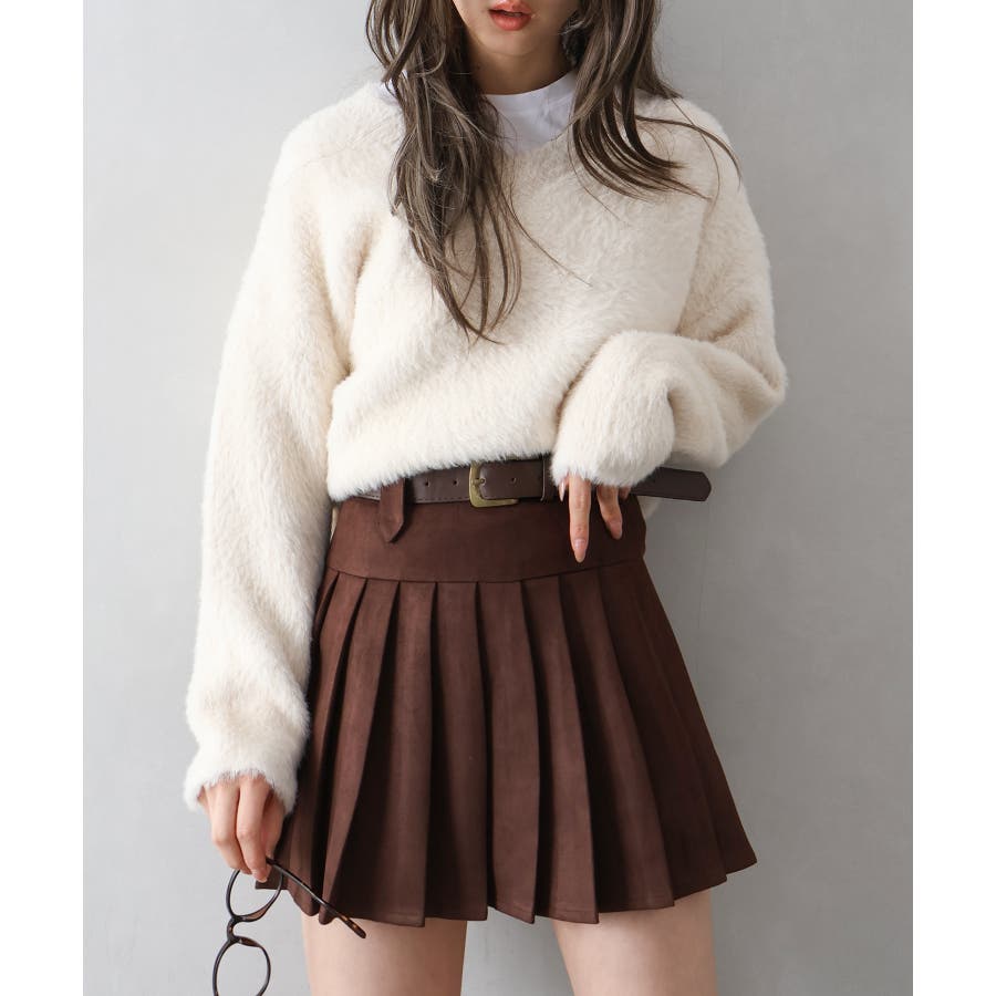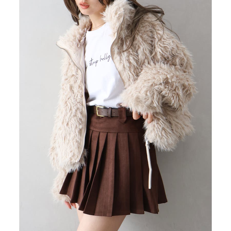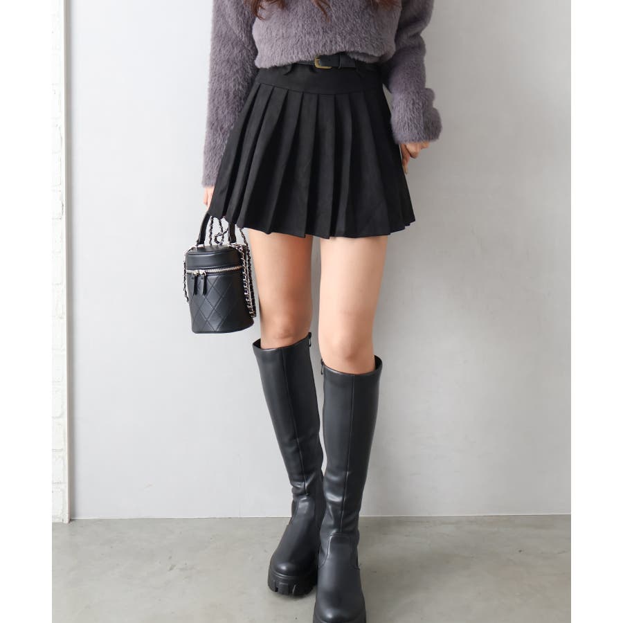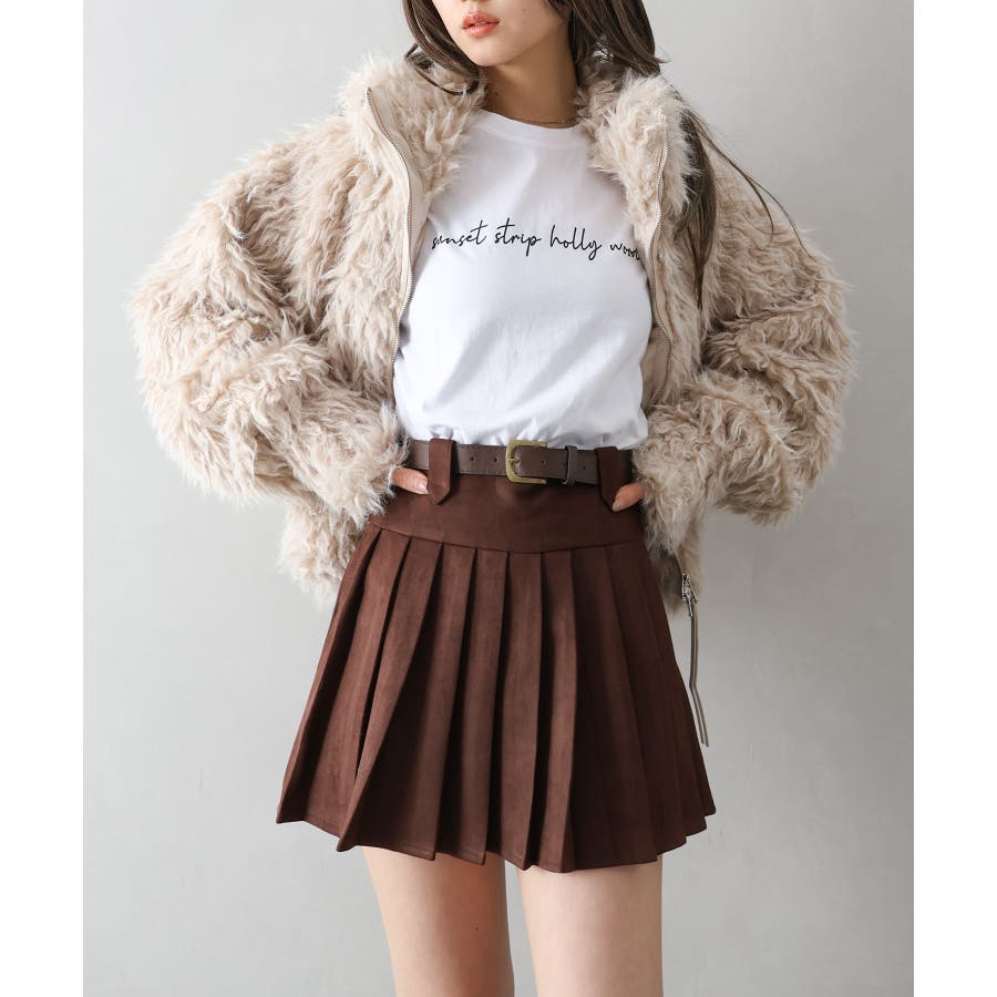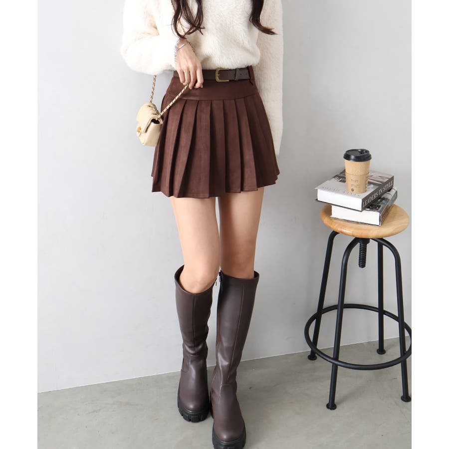 【SpRay ベルト付フェイクスウェードプリーツミニスカート】