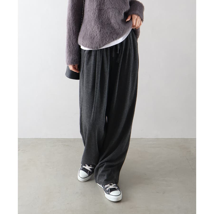スウェットのカジュアルさに、ワイドシルエットの大人っぽさがプラスされ、デイリーからお出かけまで幅広く活躍。