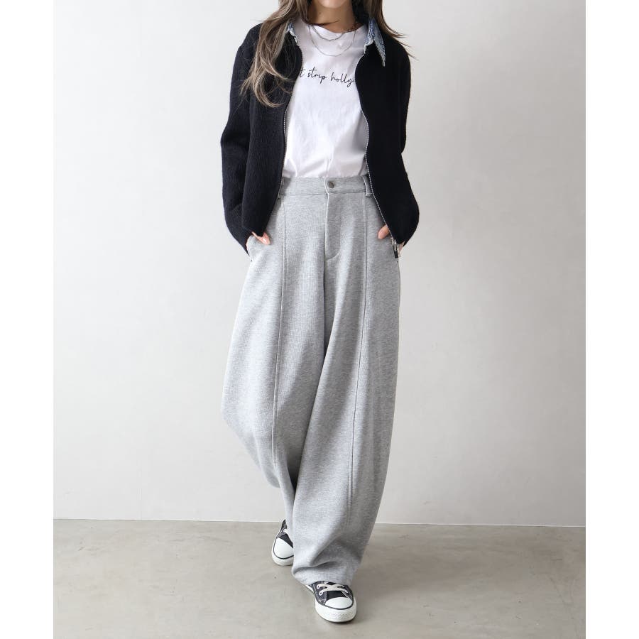 センターシームで縦ラインを強調。脚のラインを拾いすぎず、驚くほどスッキリ見せます!