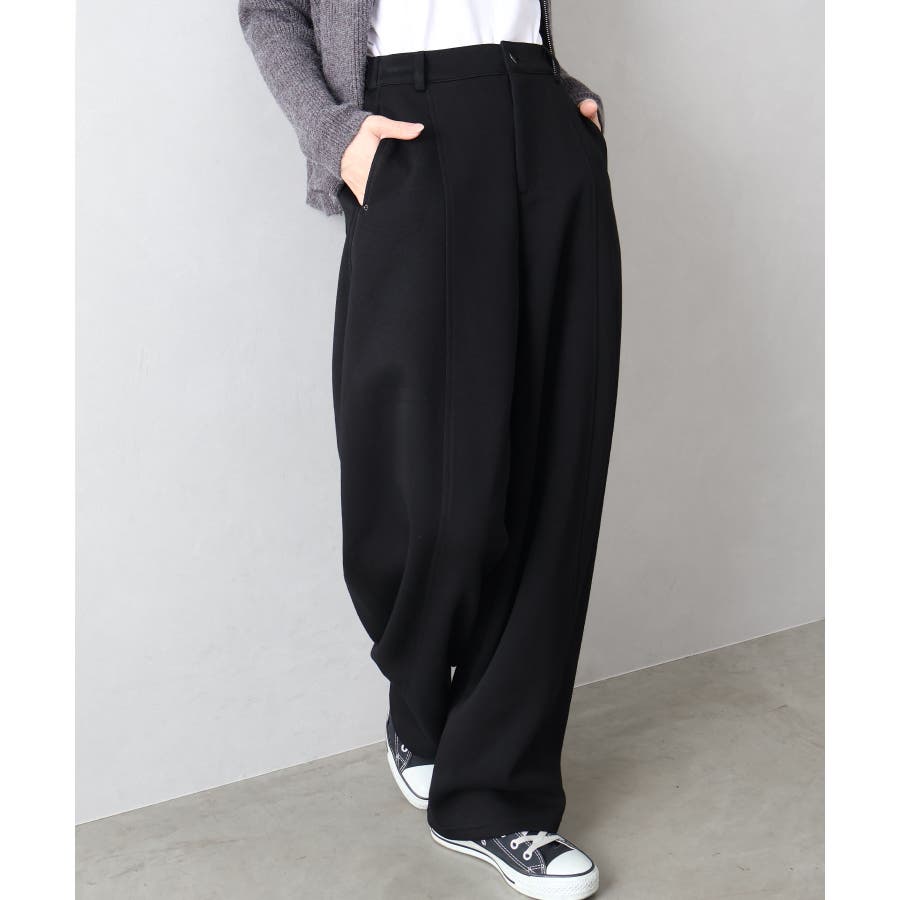 オフィスやデートにもOKな上品なルックスを実現!ウエストはゴム仕様で、座っても立っても締め付けゼロ。