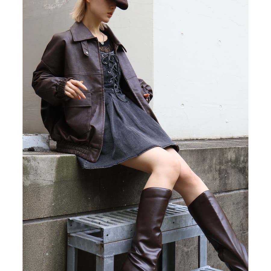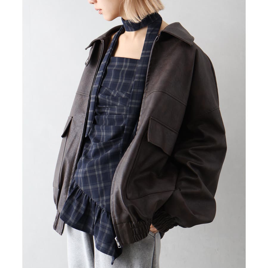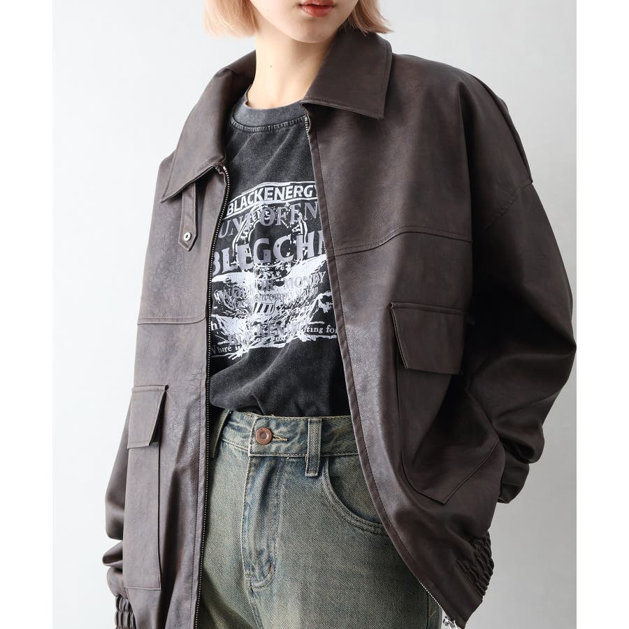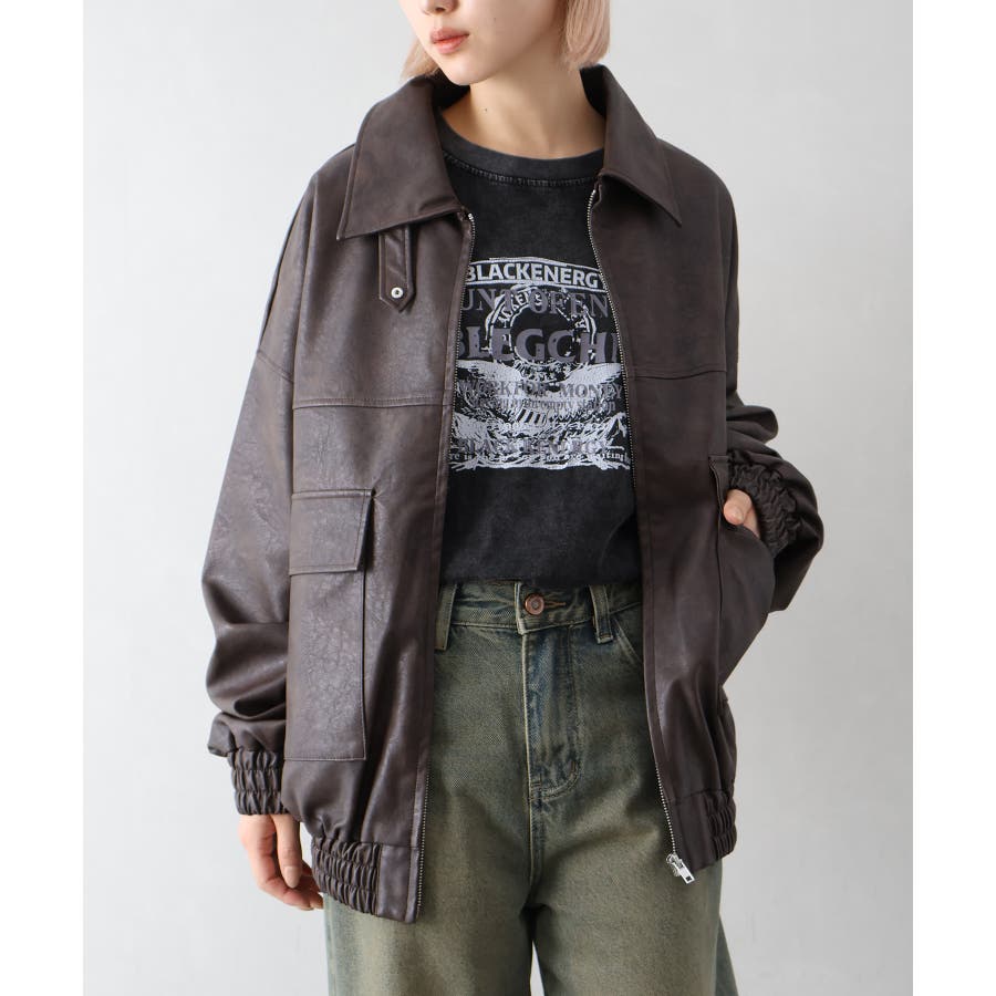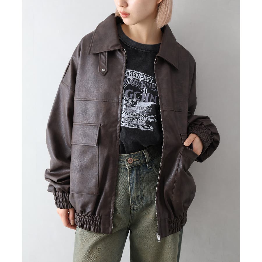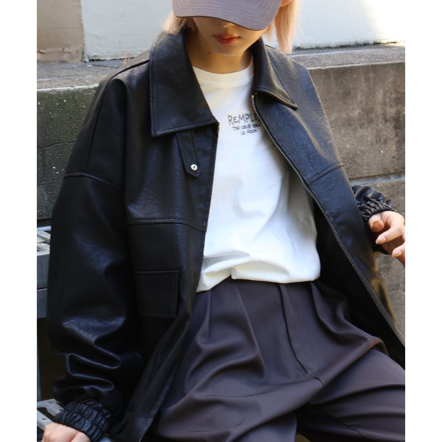 BIGシルエットのレザーブルゾン。