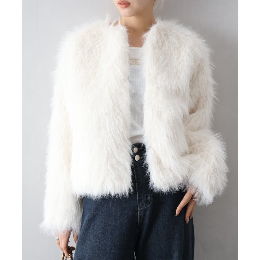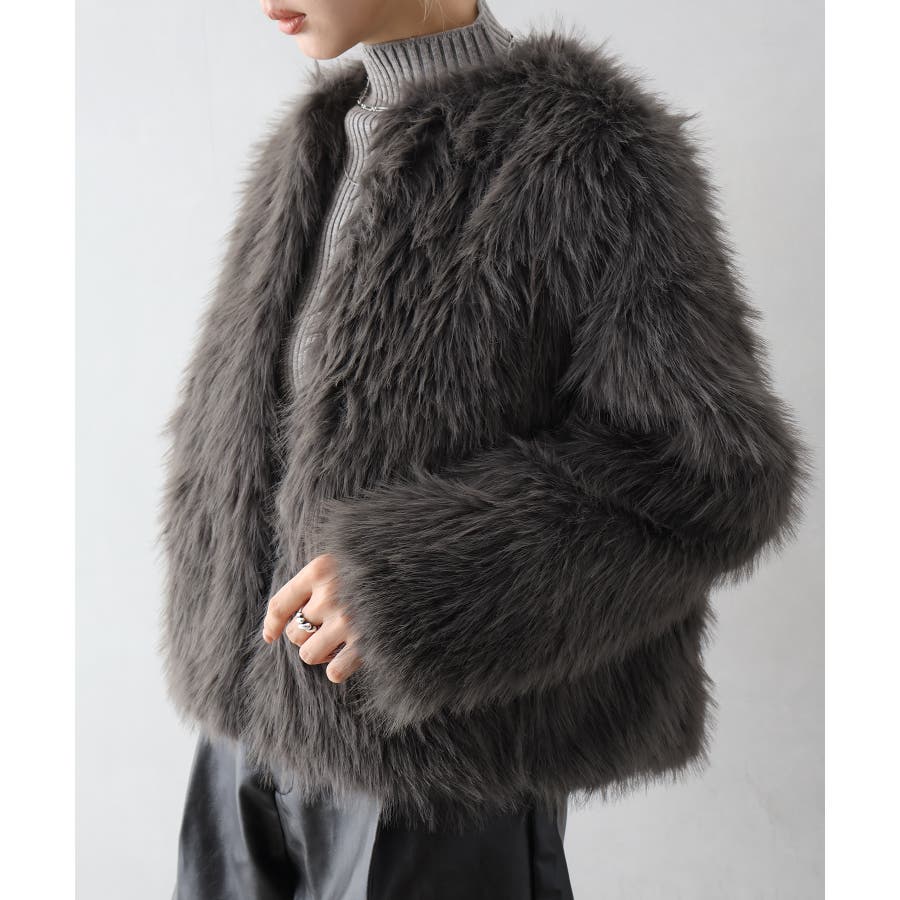 ふわふわのロングフォックス風ファーを贅沢に使用した、