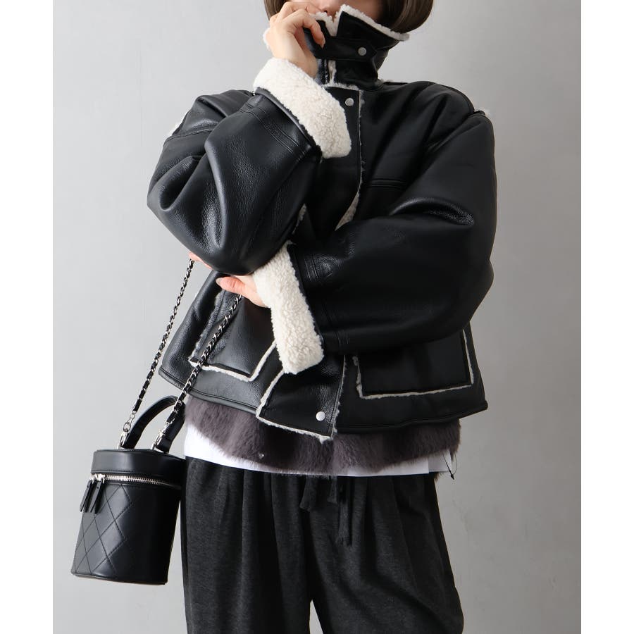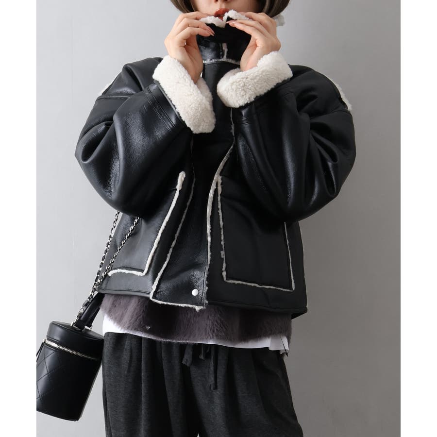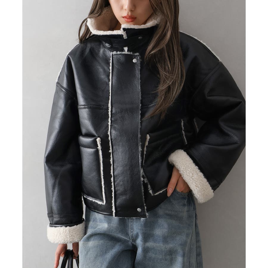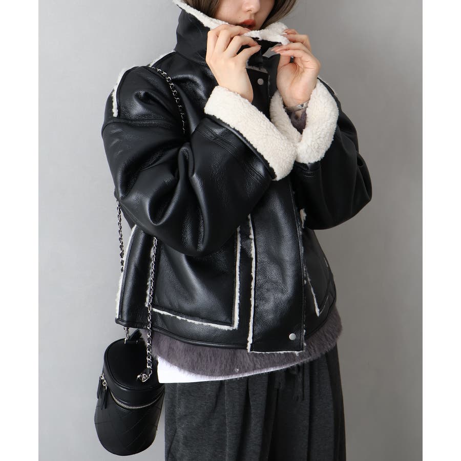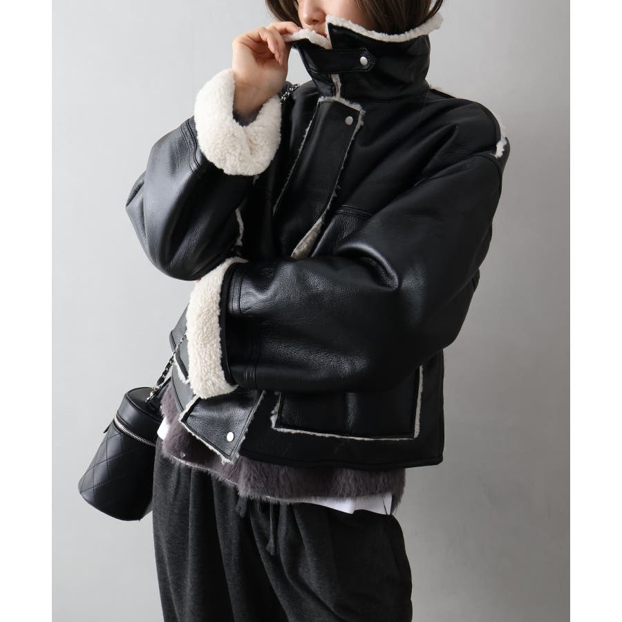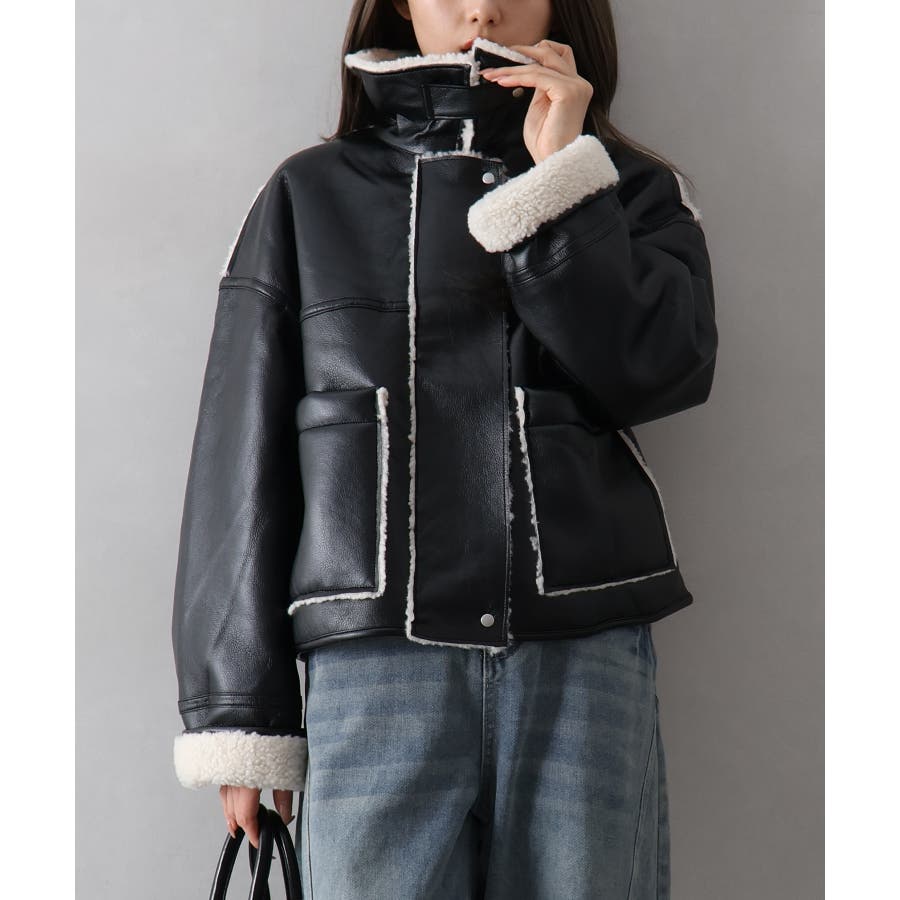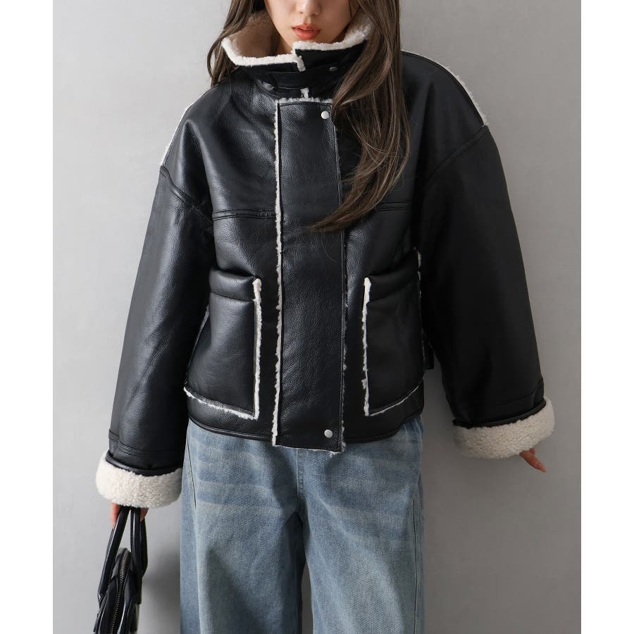 ふっくらボアカラーと太めの切り替えラインが目を惹く、冬の主役アウター。