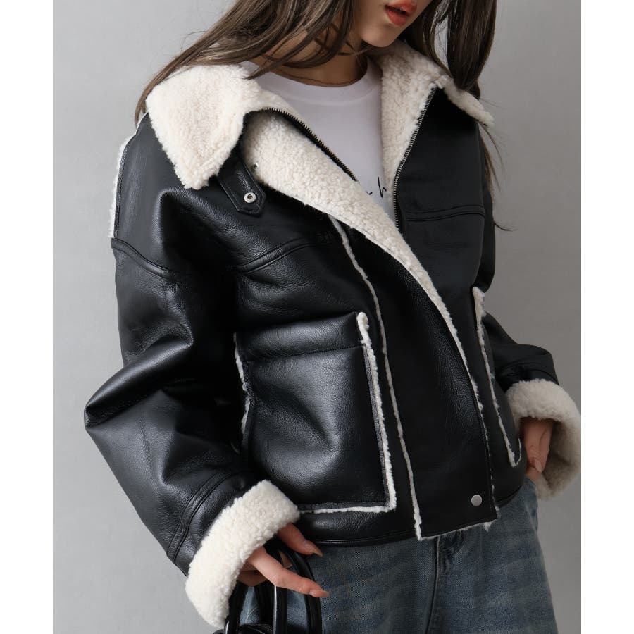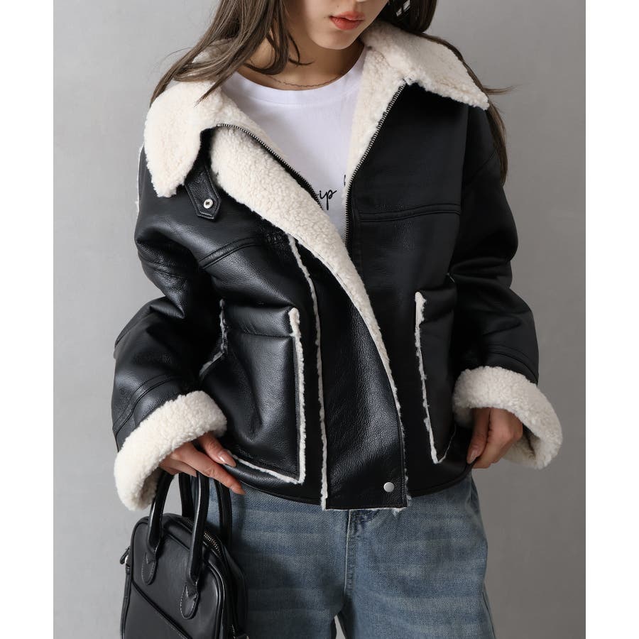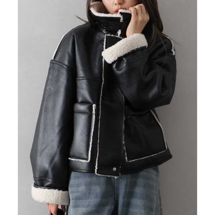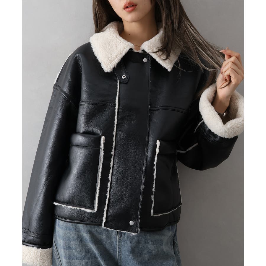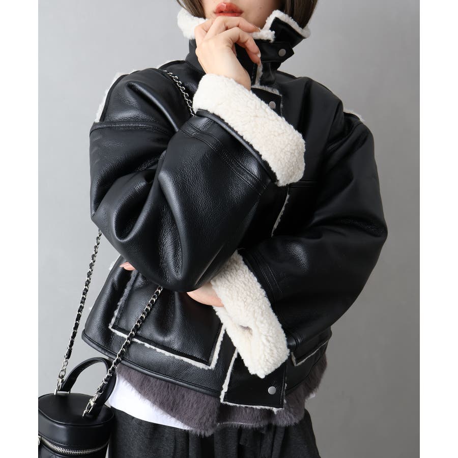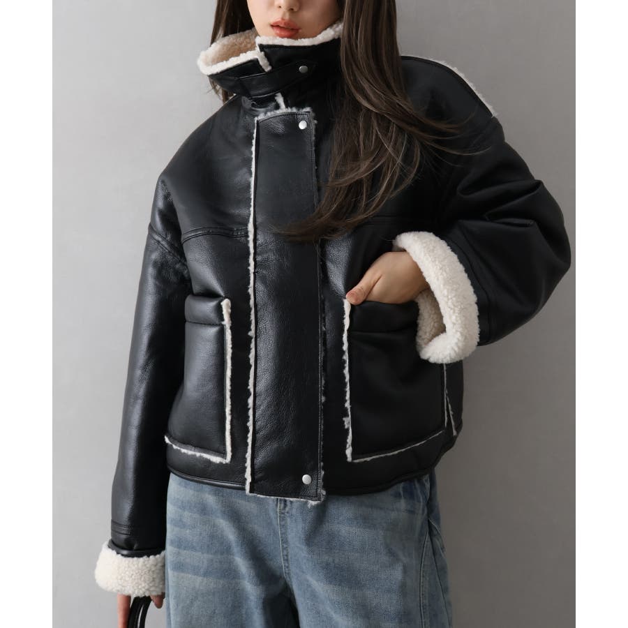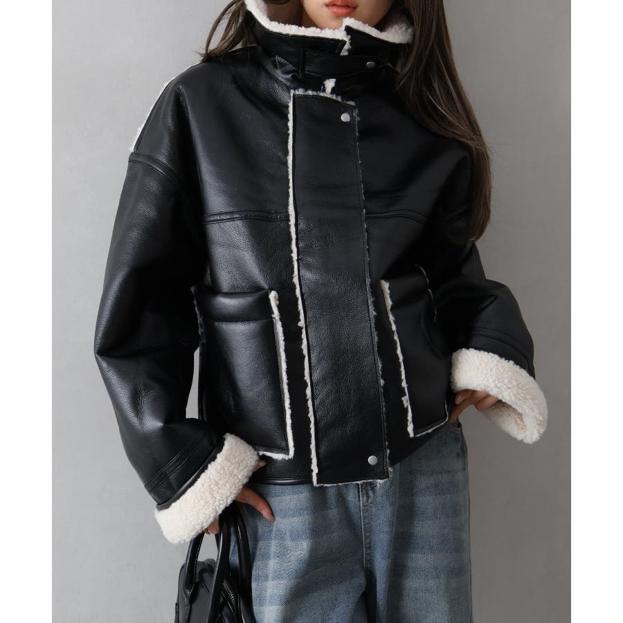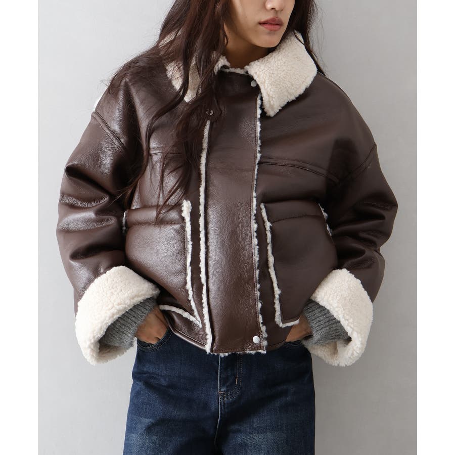 ふっくらボアカラーと太めの切り替えラインが目を惹く、冬の主役アウター。