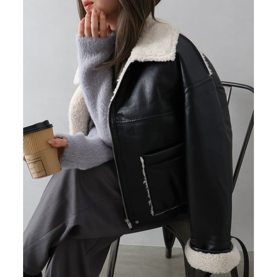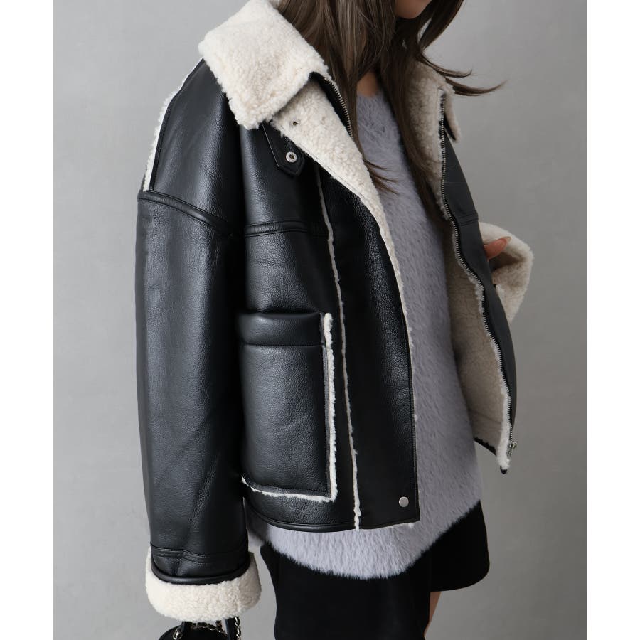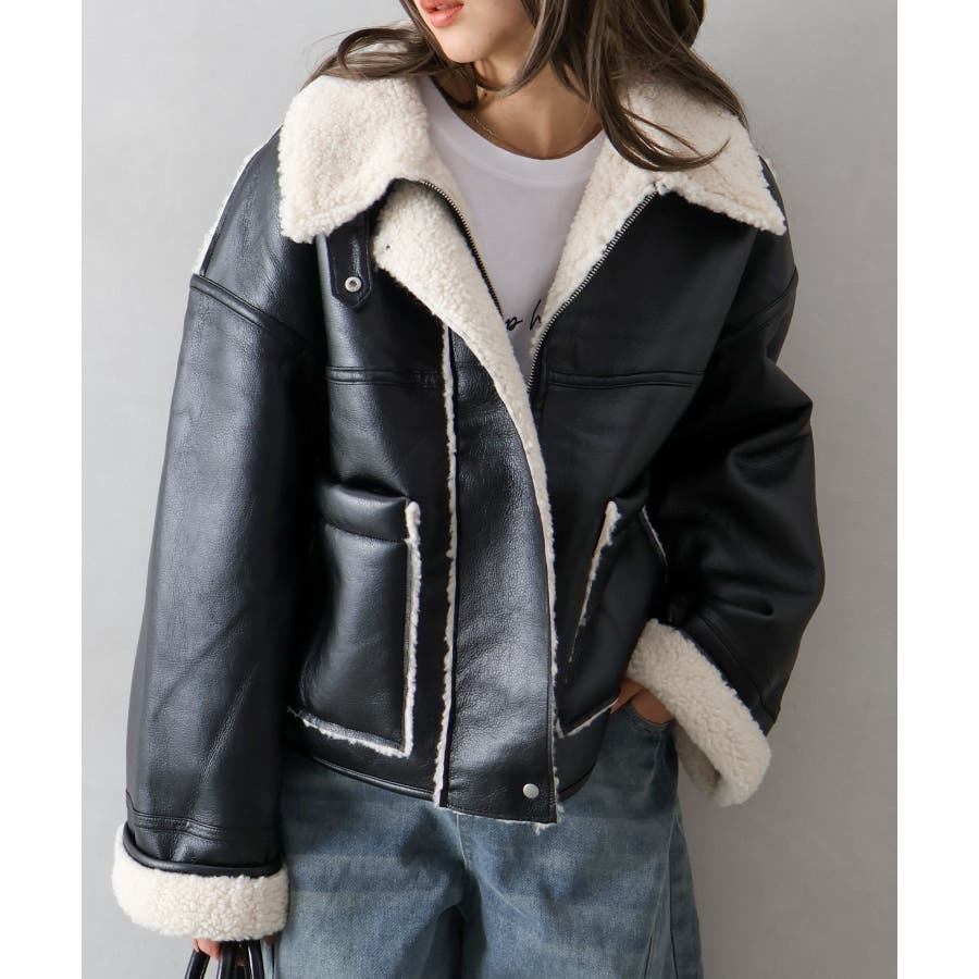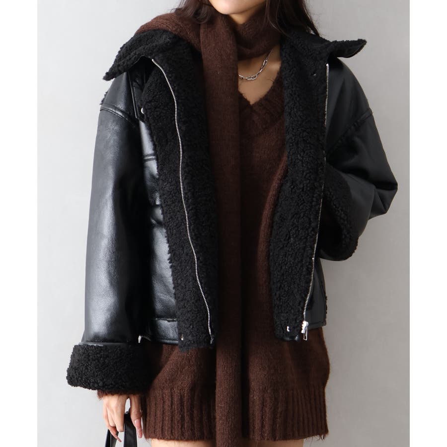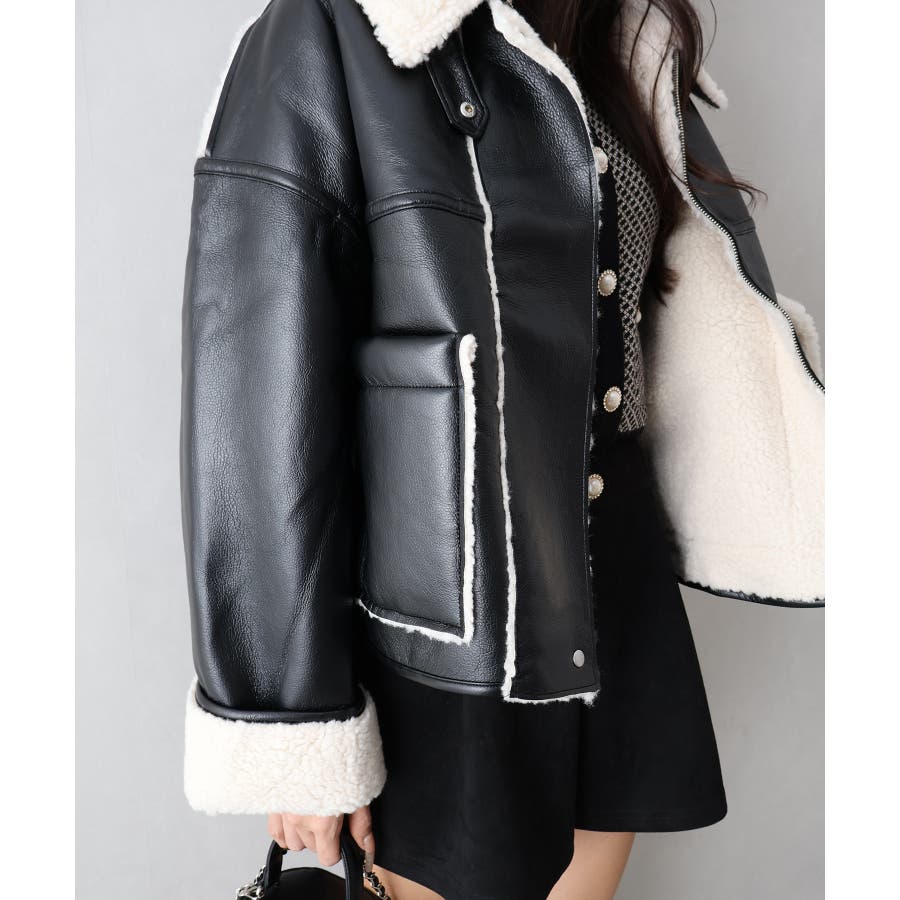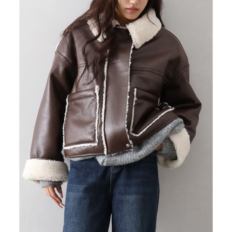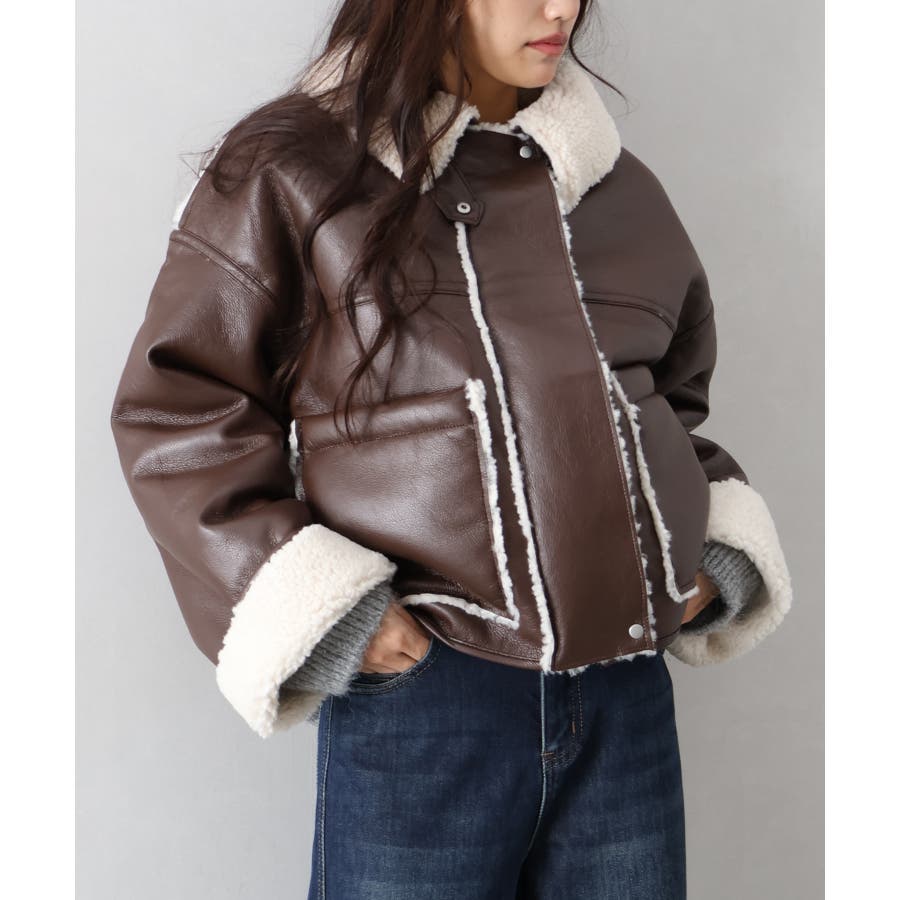 ふっくらボアカラーと太めの切り替えラインが目を惹く、冬の主役アウター。