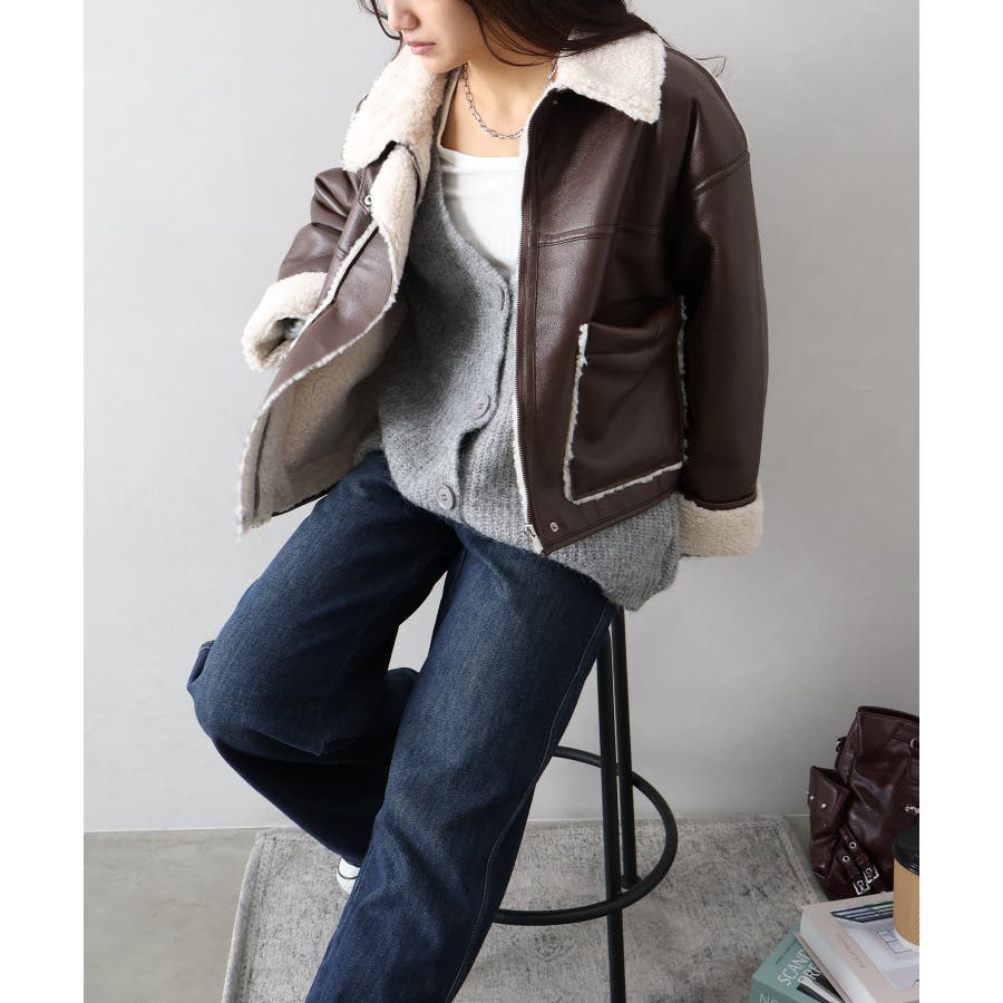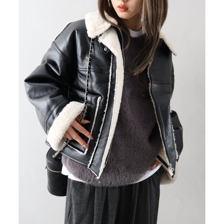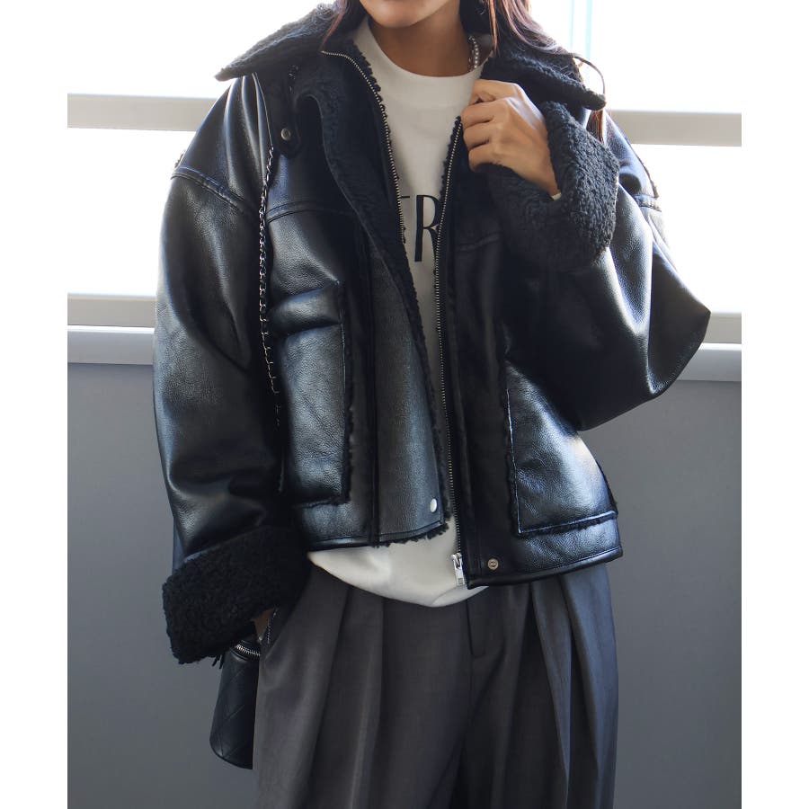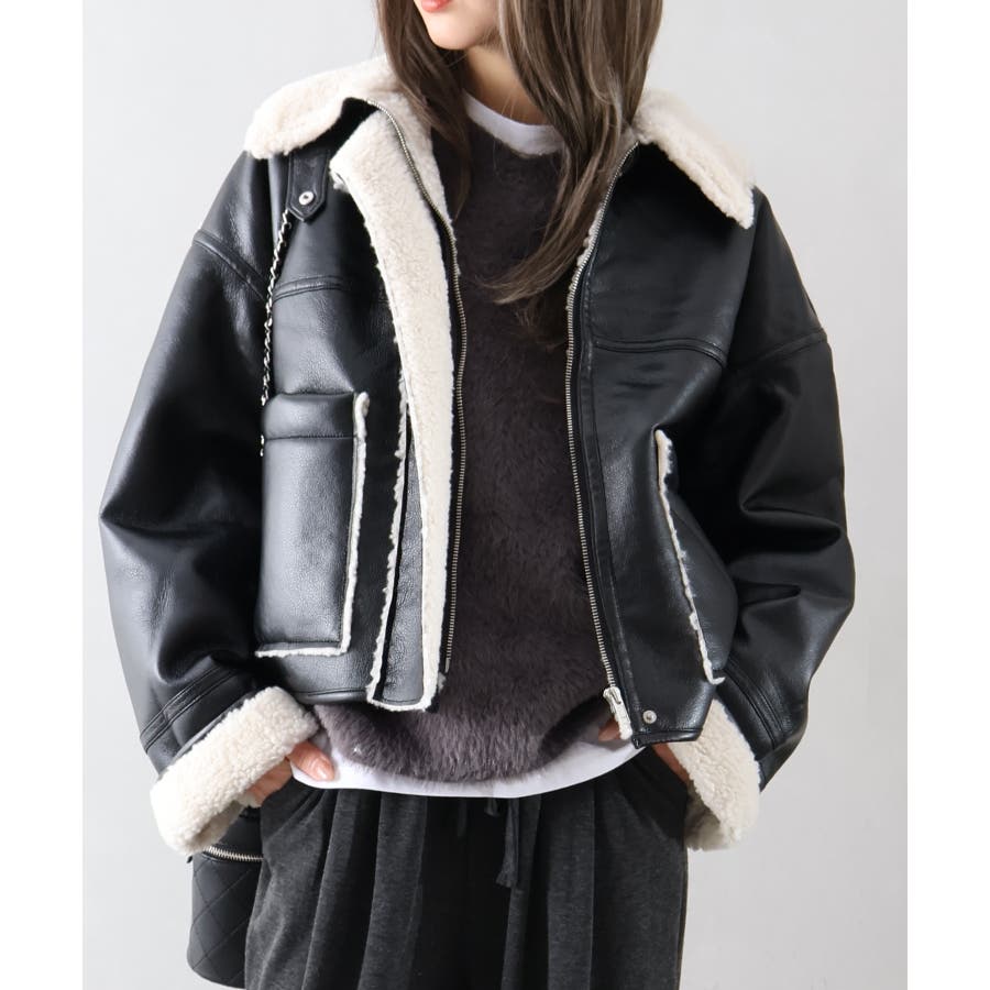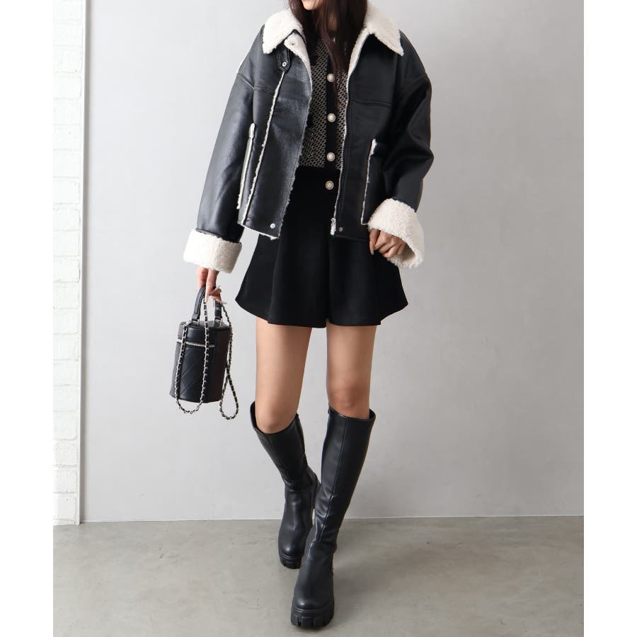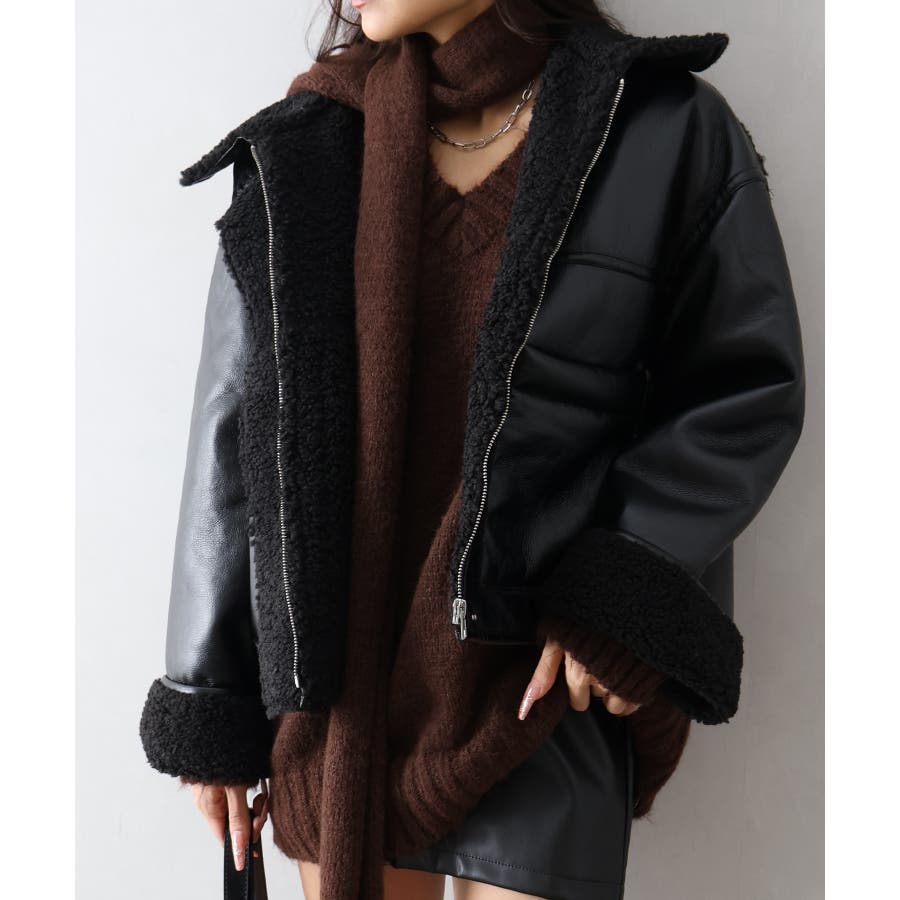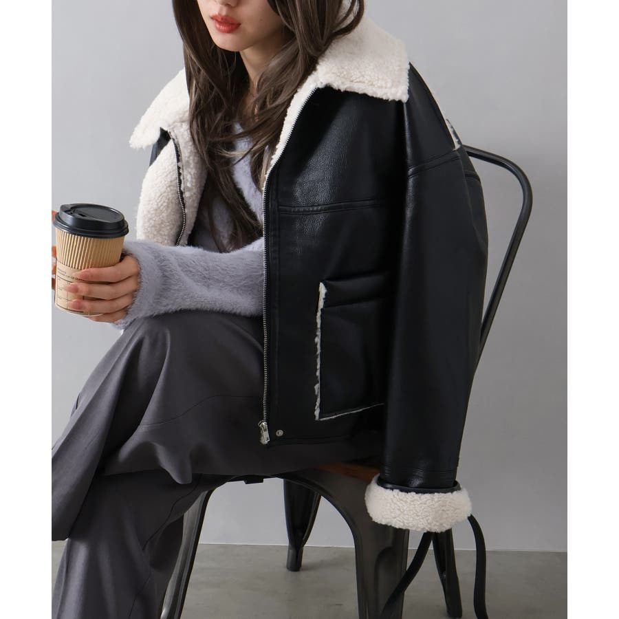 ふっくらボアカラーと太めの切り替えラインが目を惹く、冬の主役アウター。