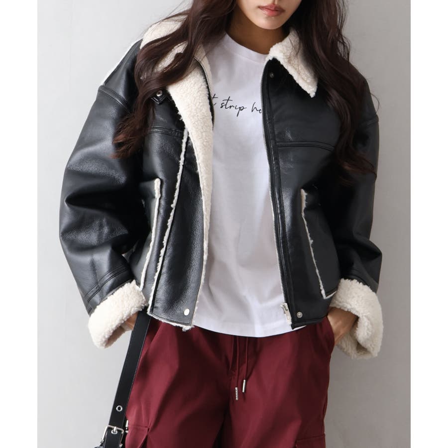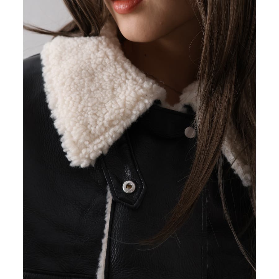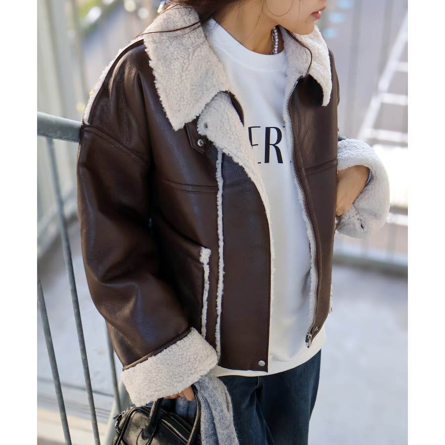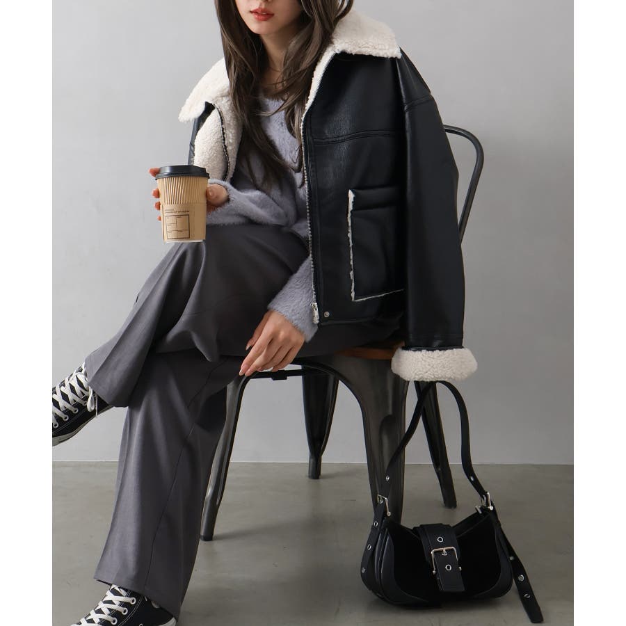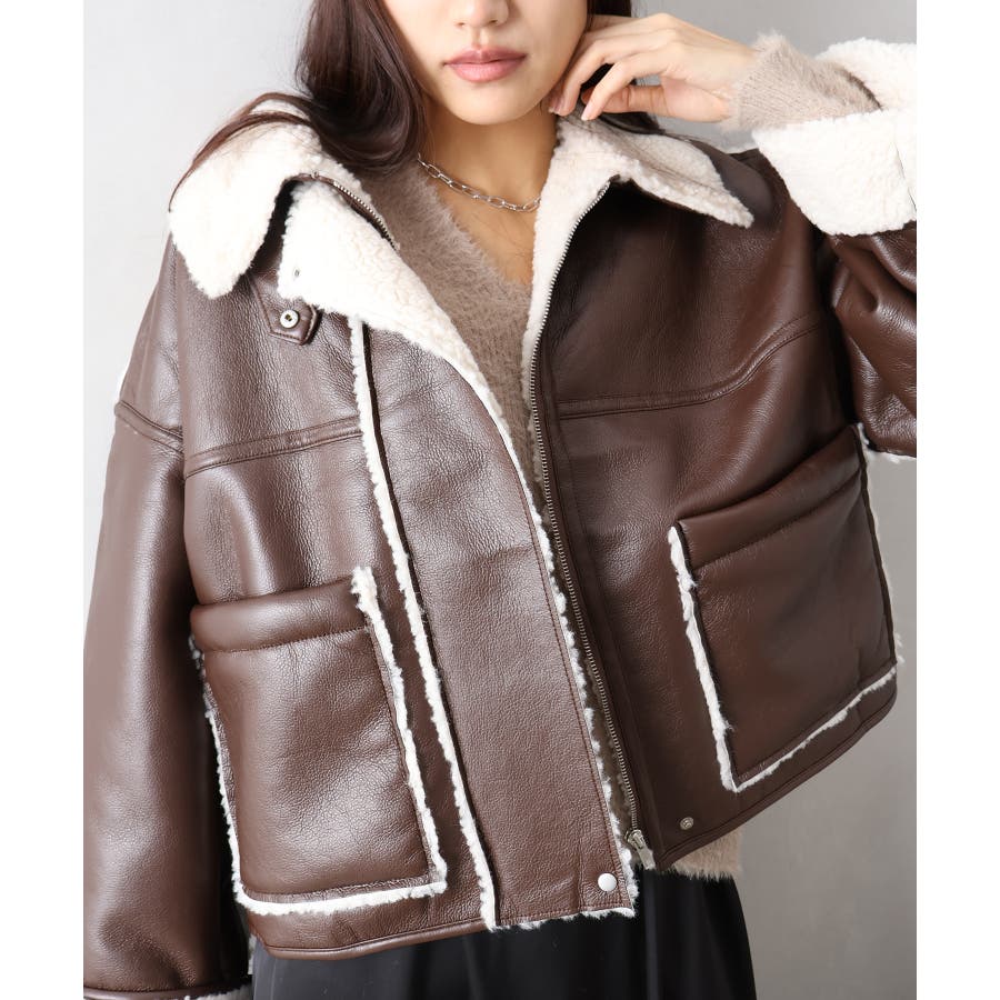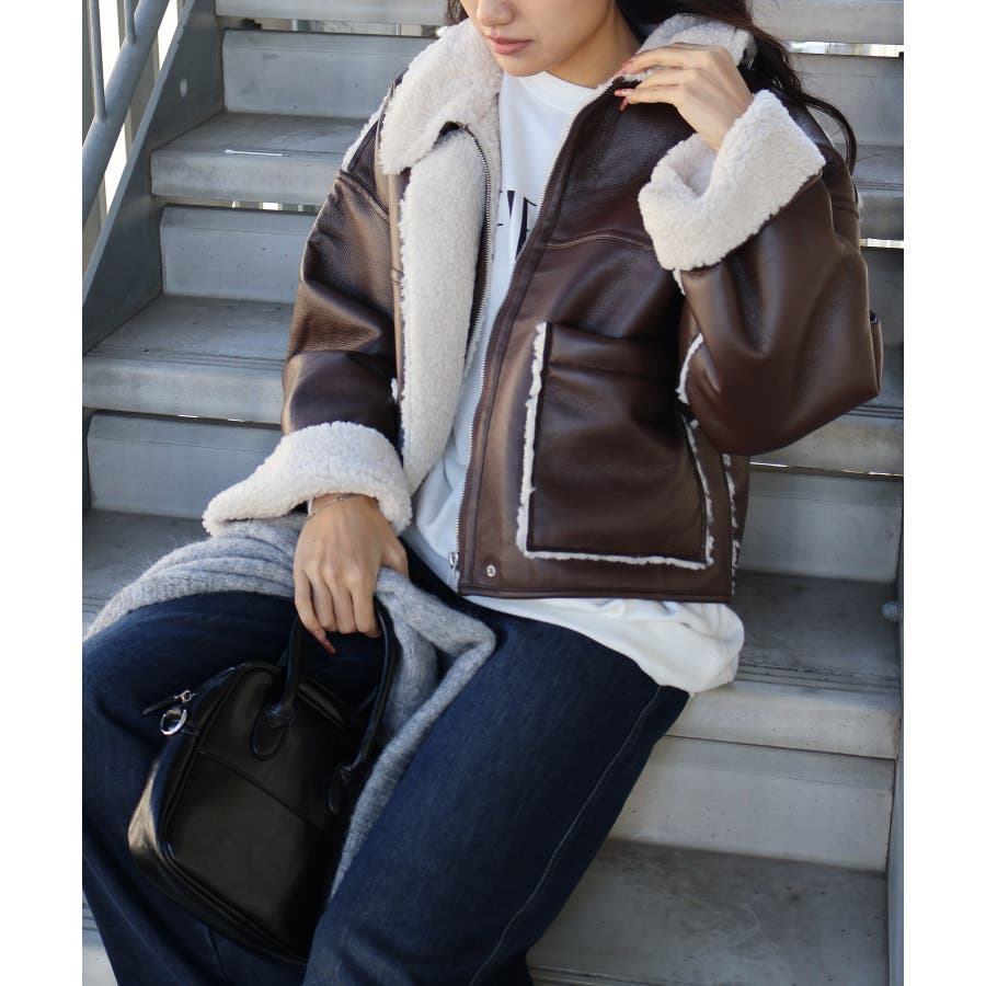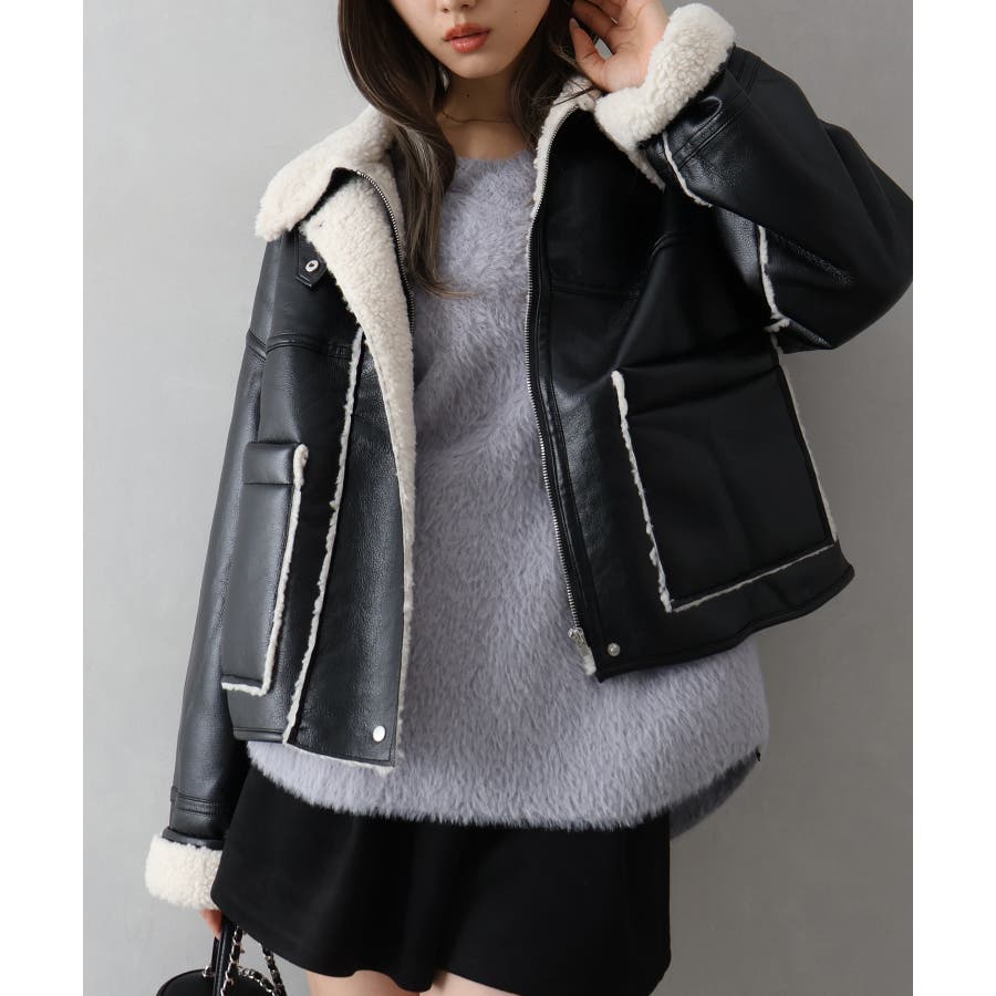 ふっくらボアカラーと太めの切り替えラインが目を惹く、冬の主役アウター。