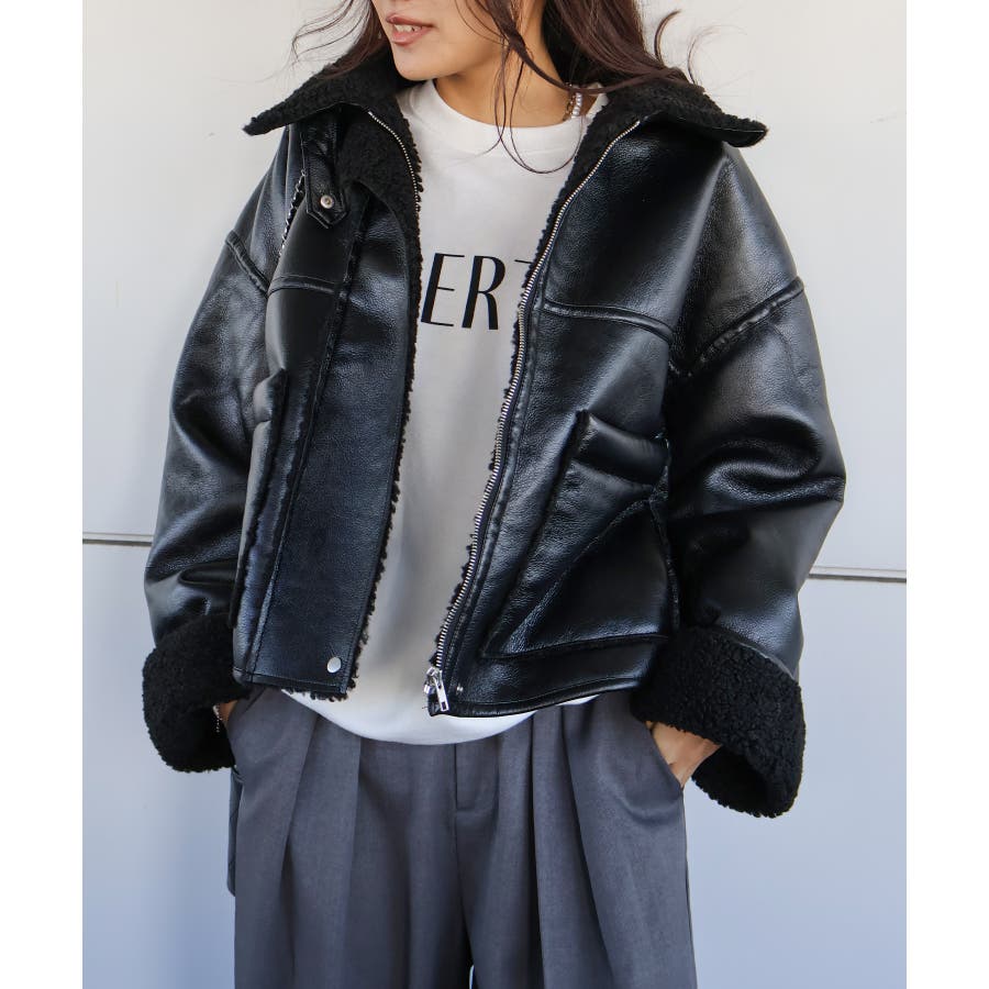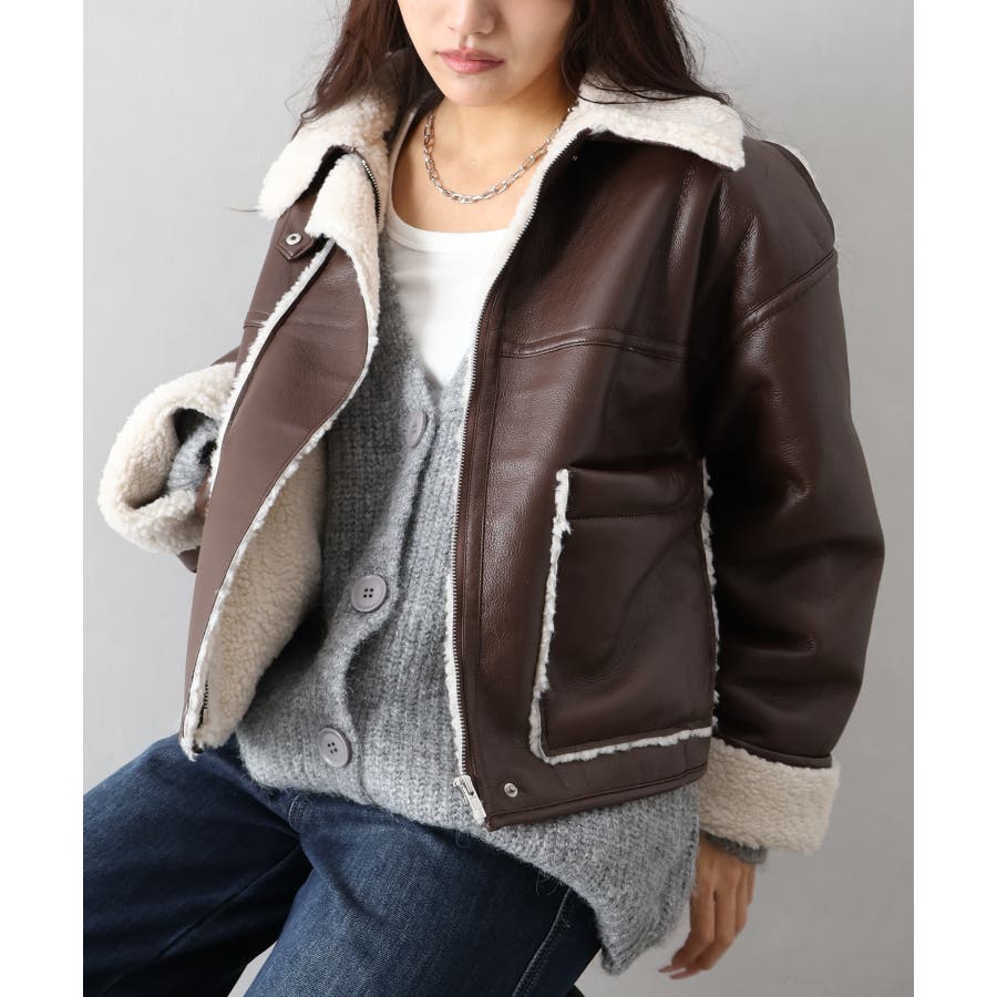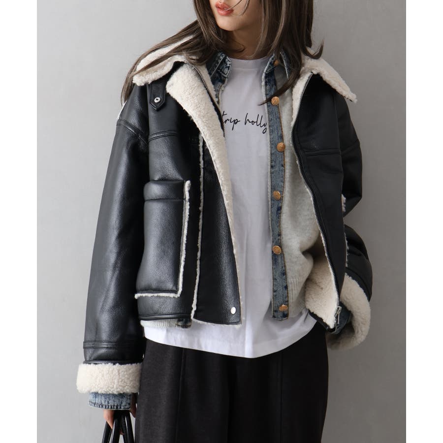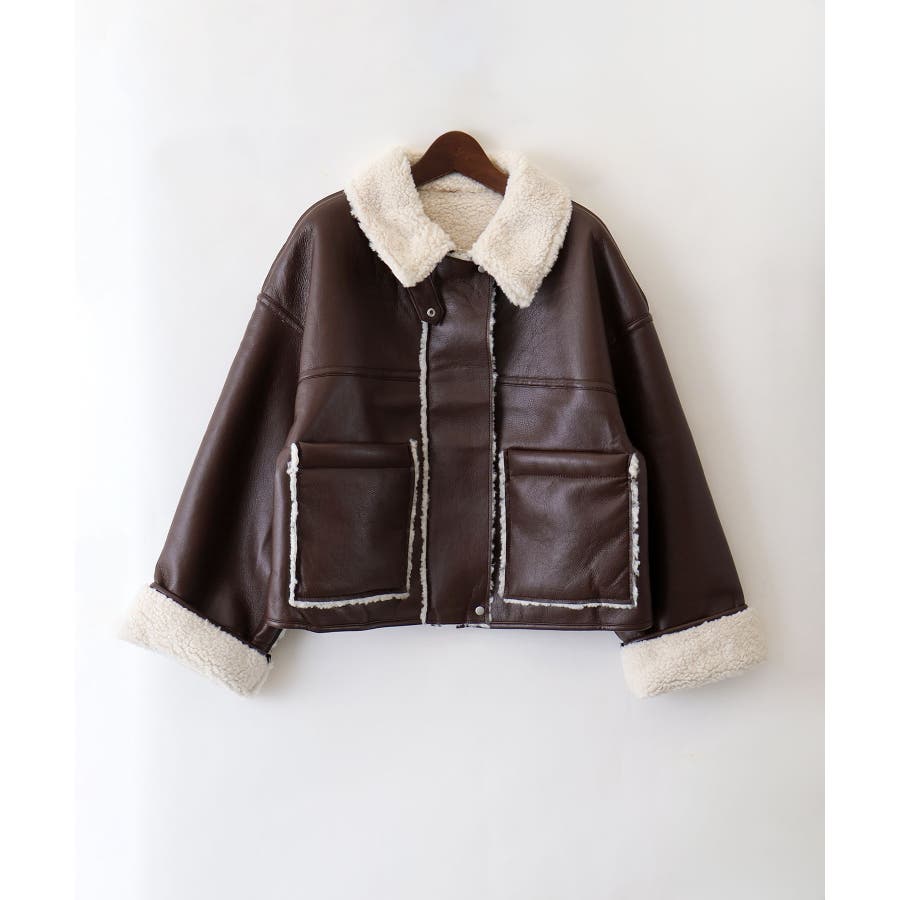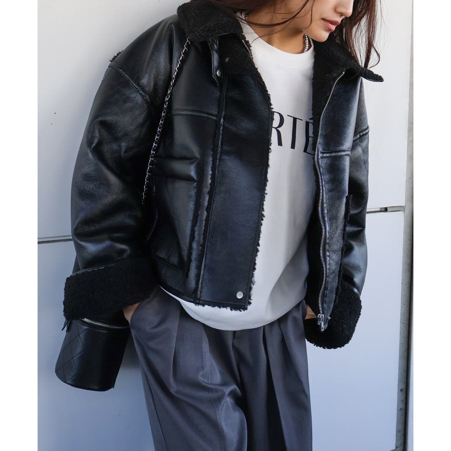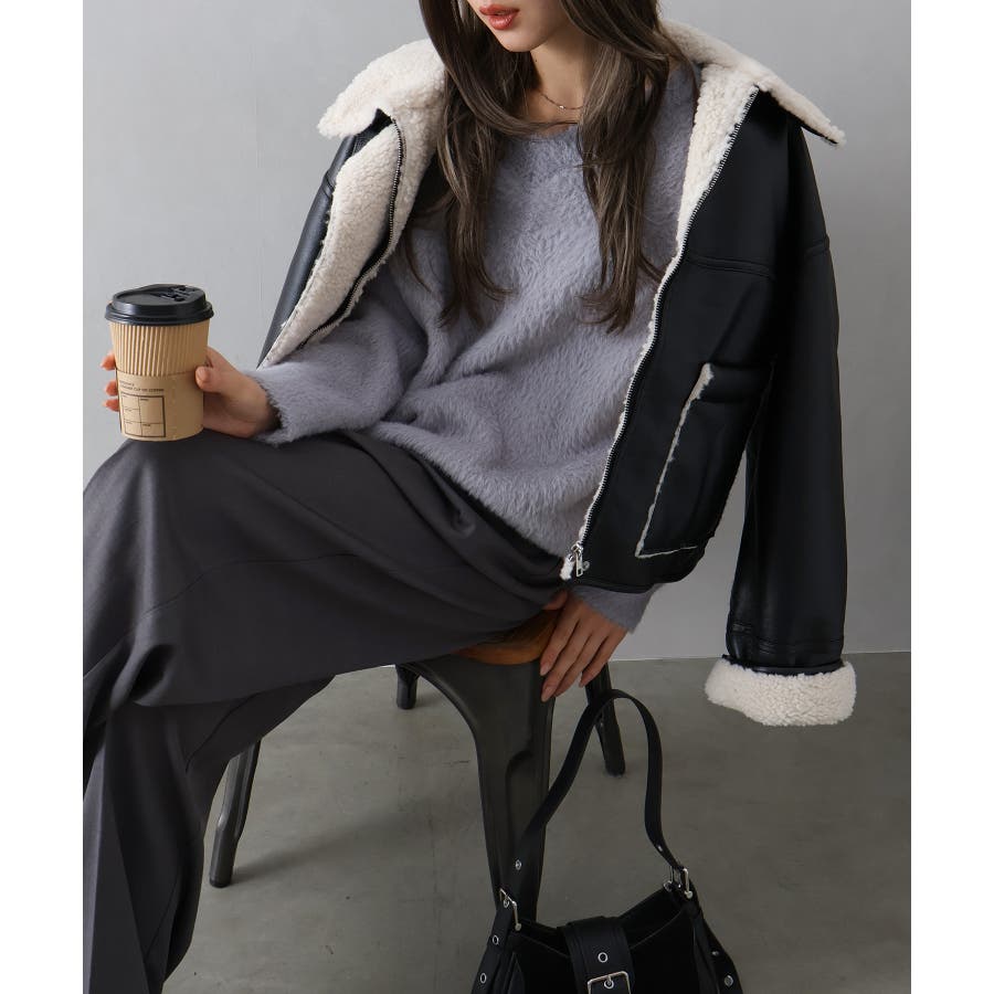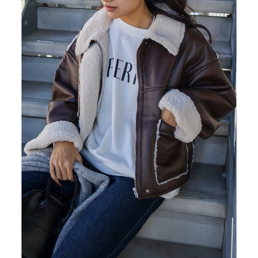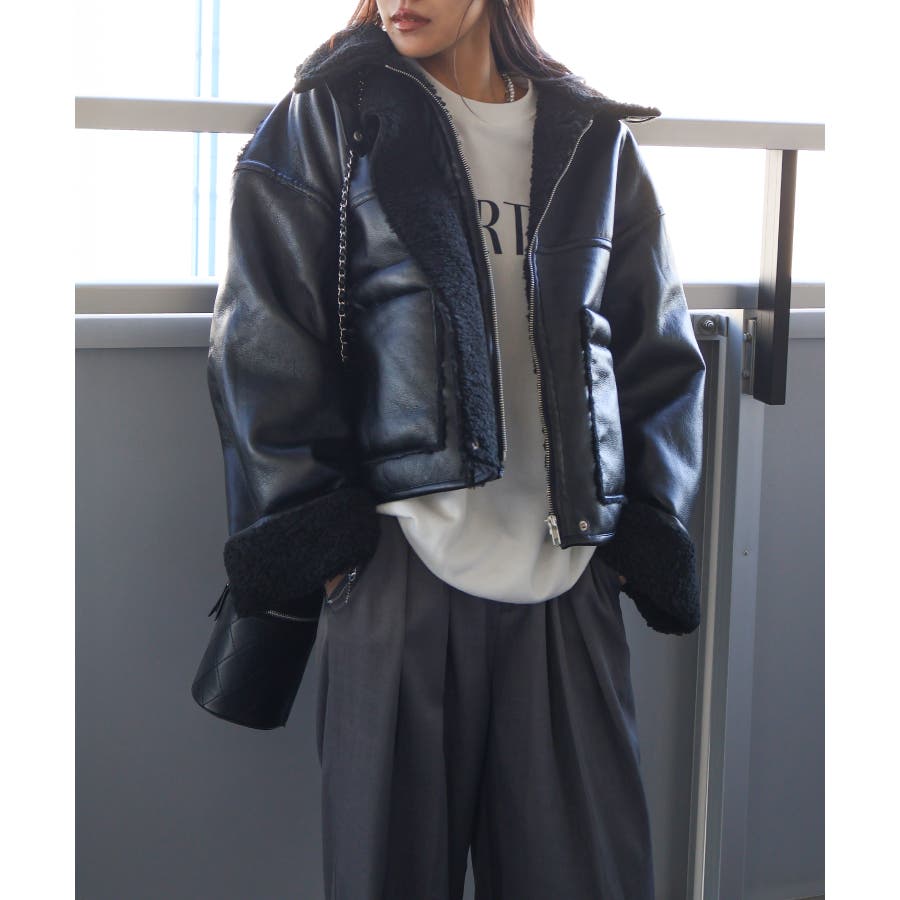 ふっくらボアカラーと太めの切り替えラインが目を惹く、冬の主役アウター。