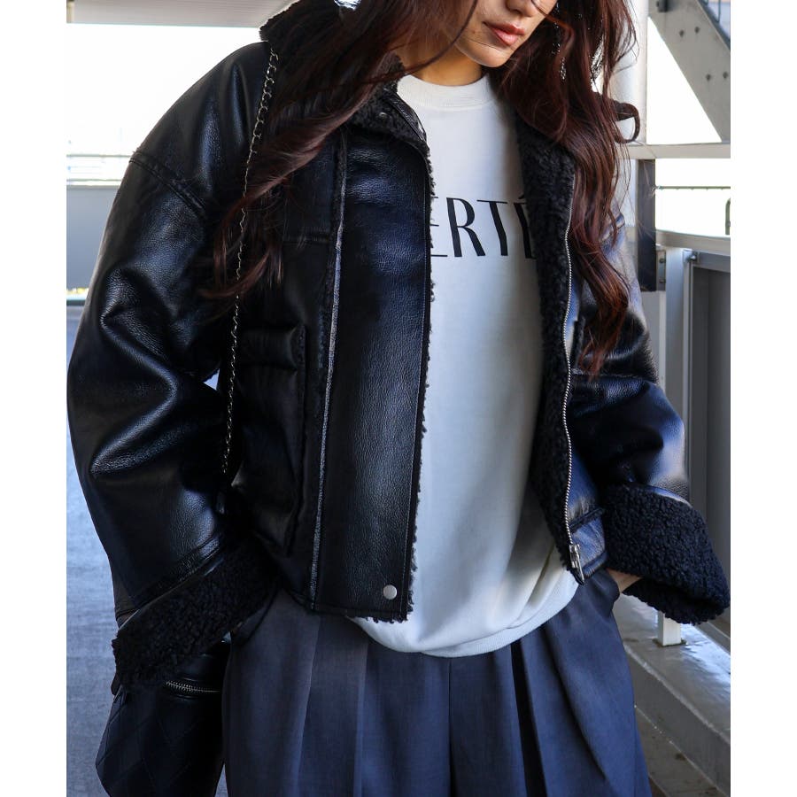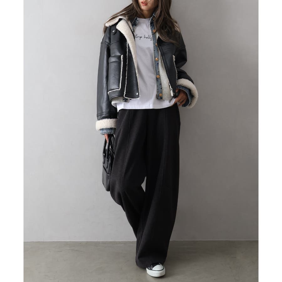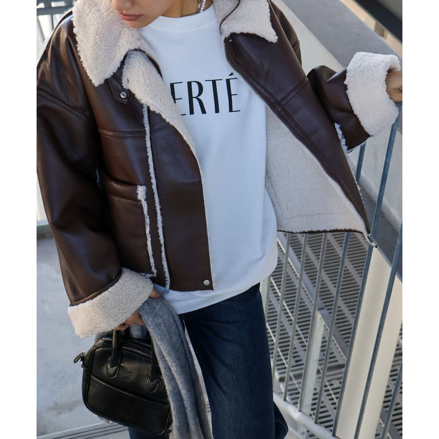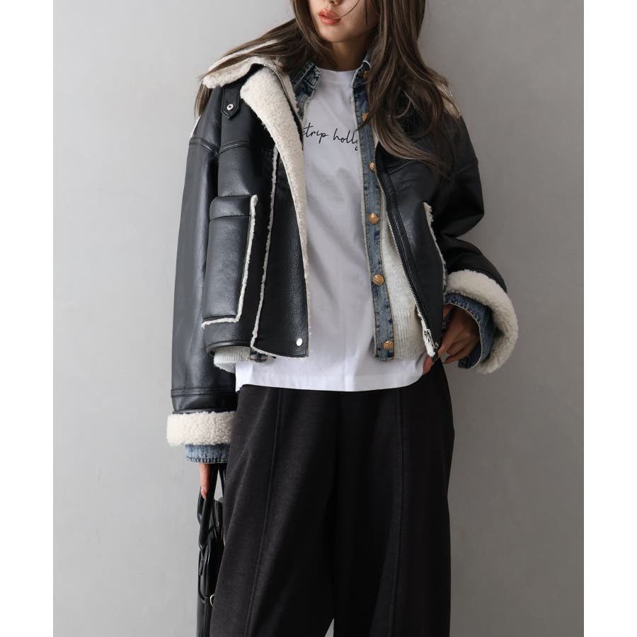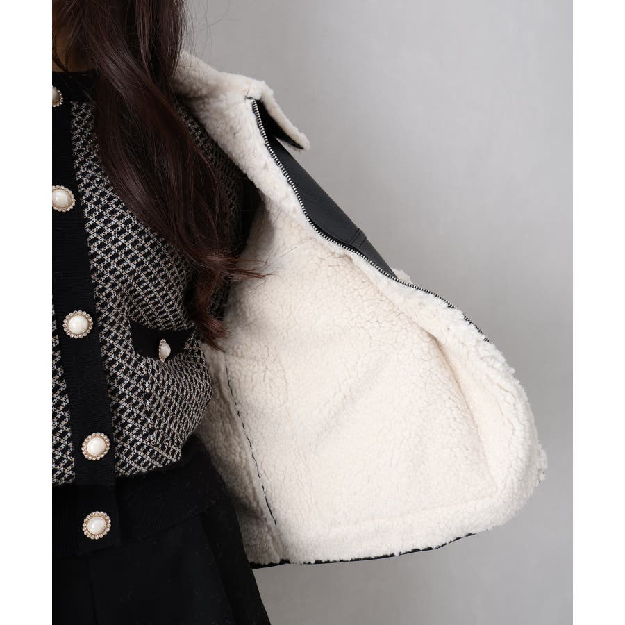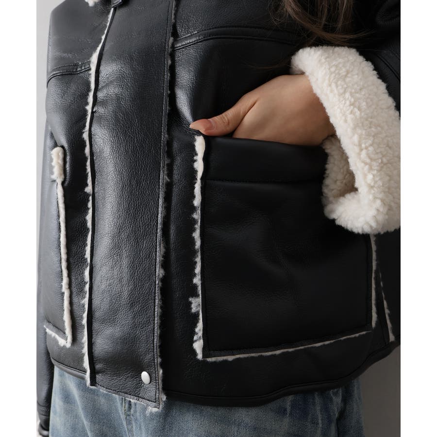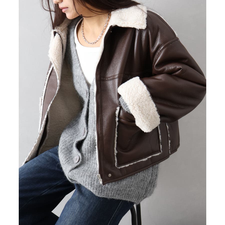 ふっくらボアカラーと太めの切り替えラインが目を惹く、冬の主役アウター。