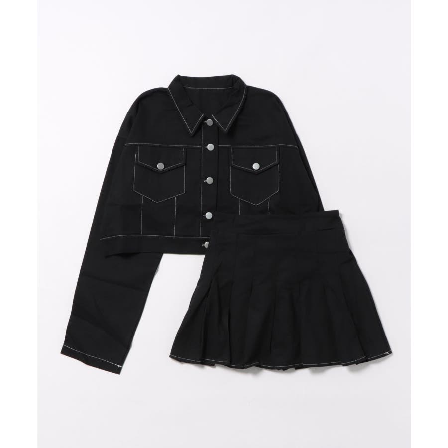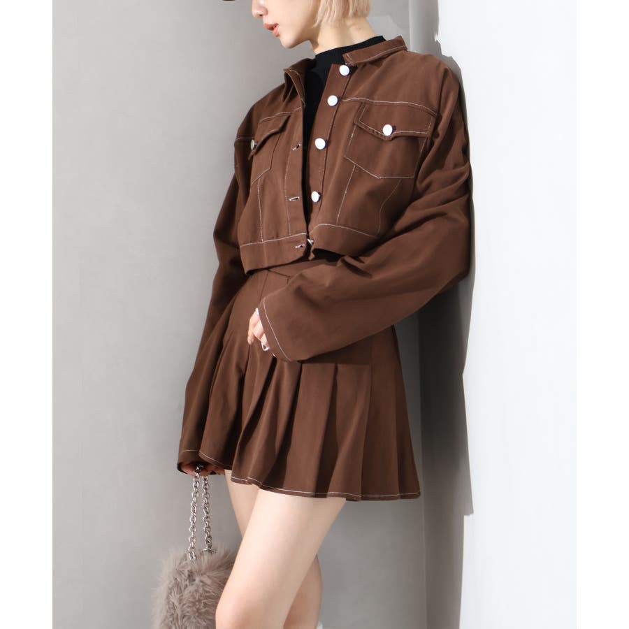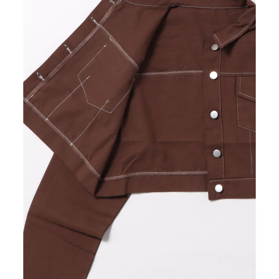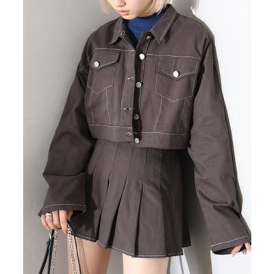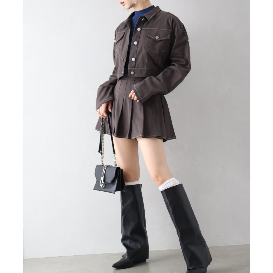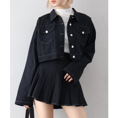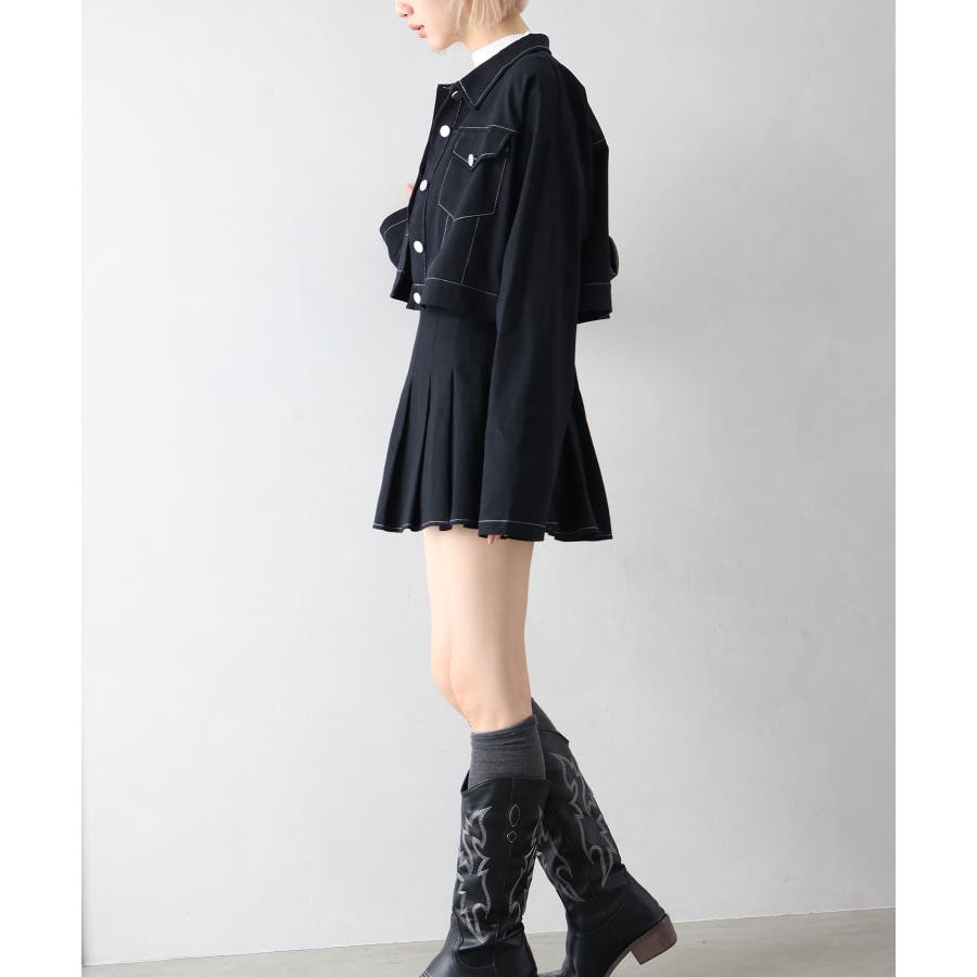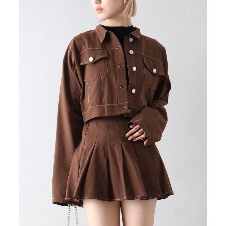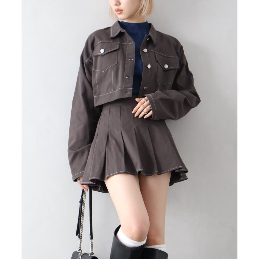 ショート丈ジャケットはツイル素材にステッチを効かせ、