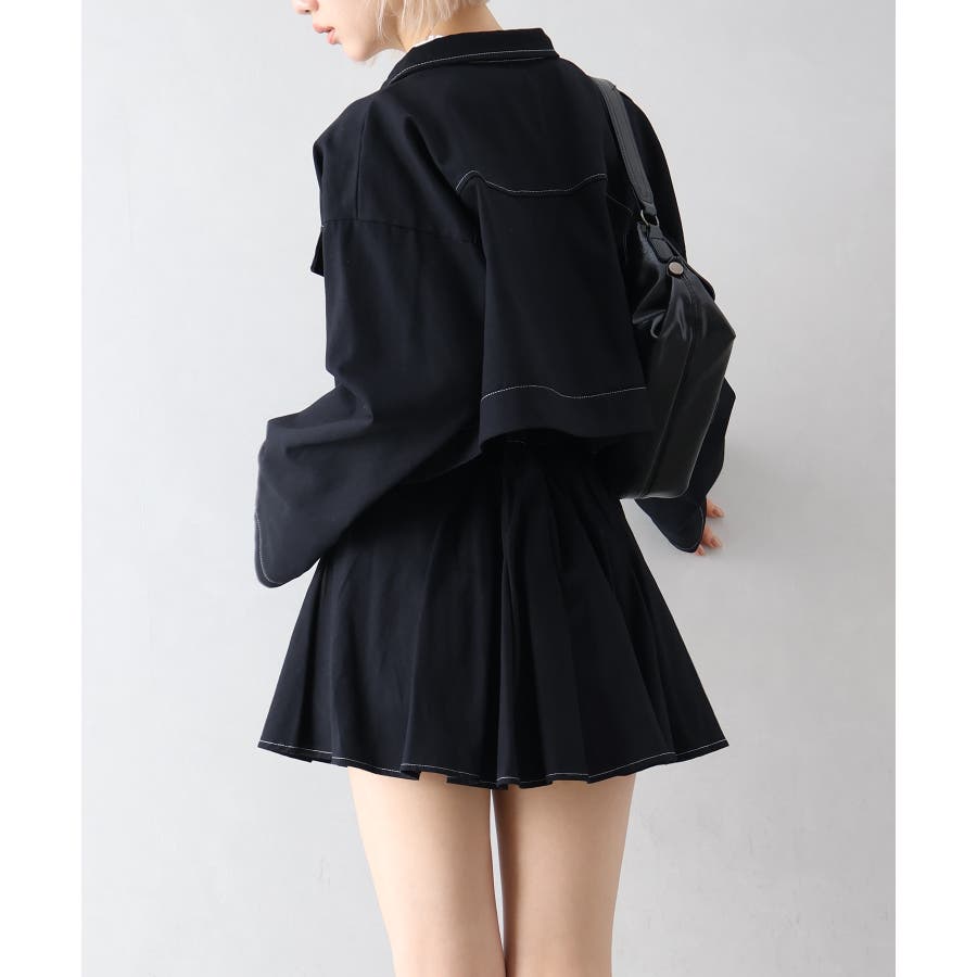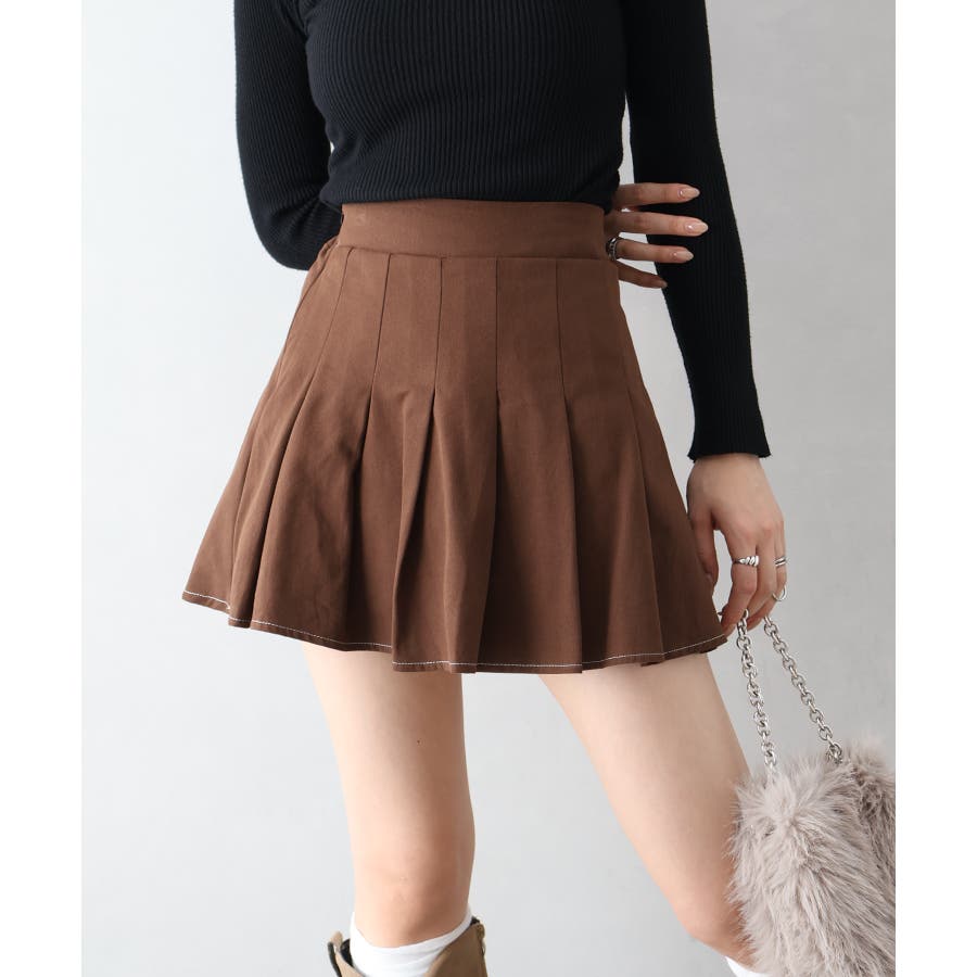BOXプリーツスカートは程よい広がりで脚を細見せし、
