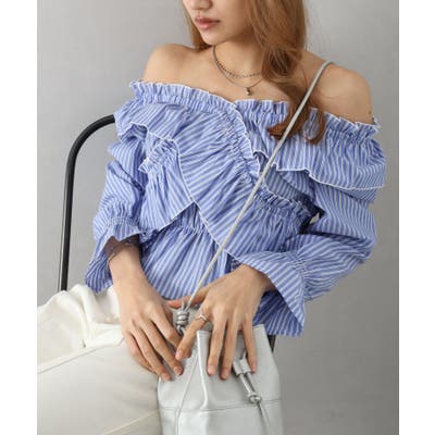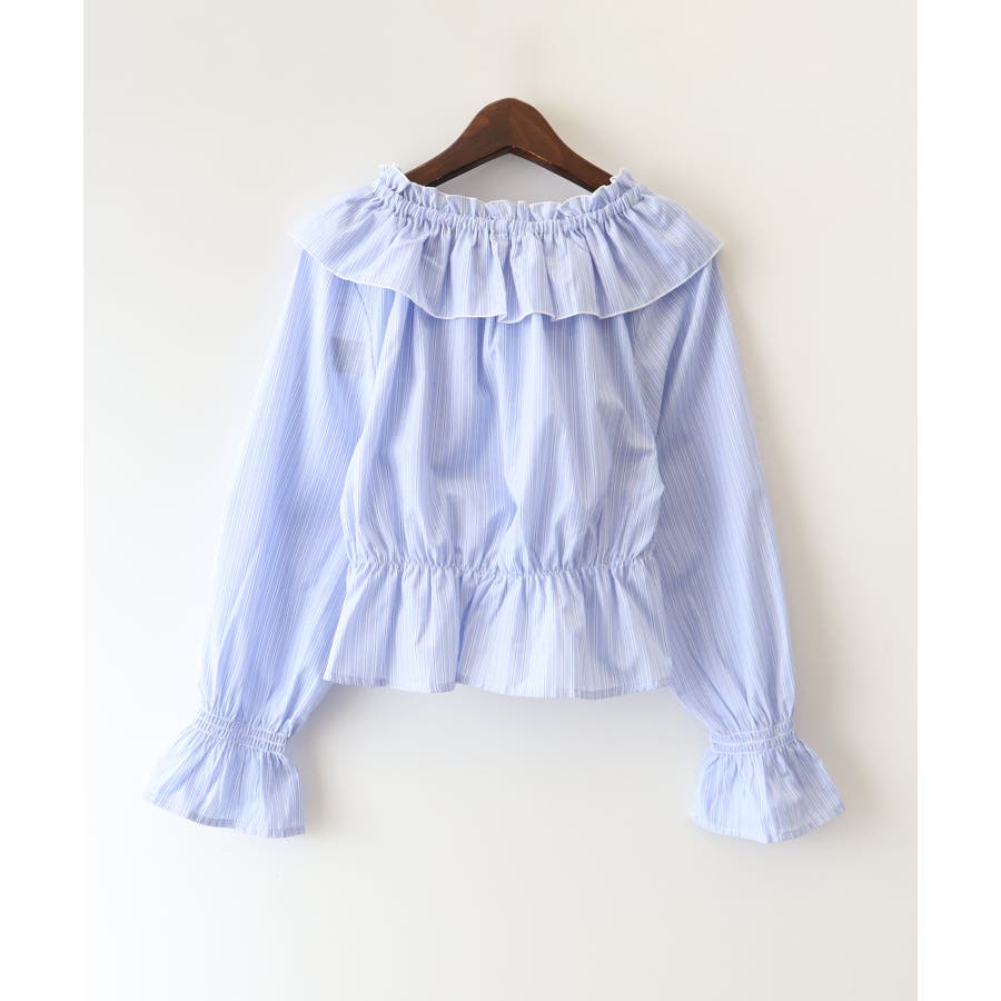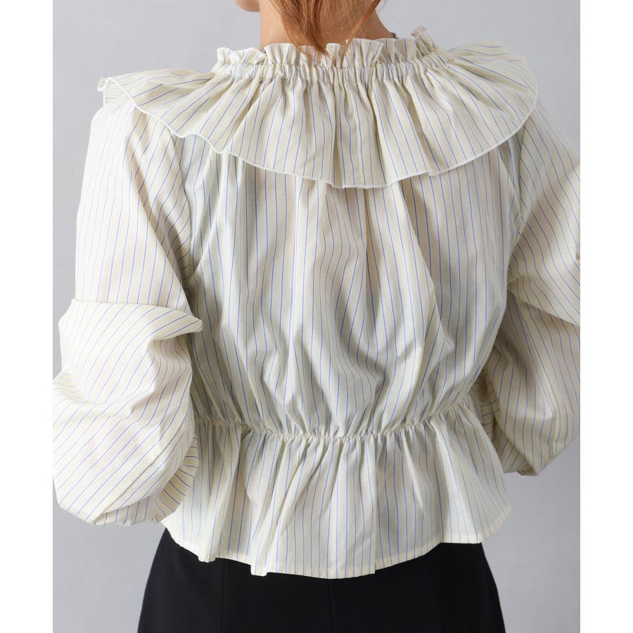 ストライプクロスフリルブラウス