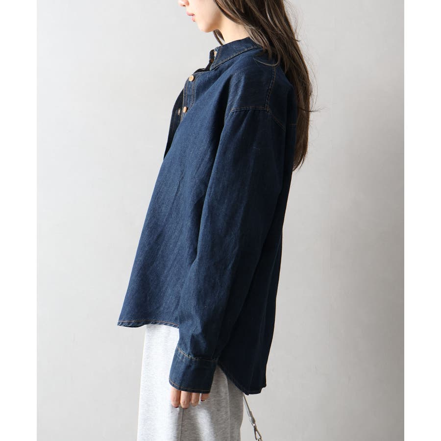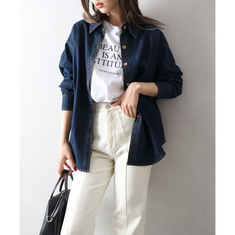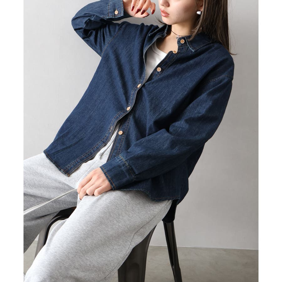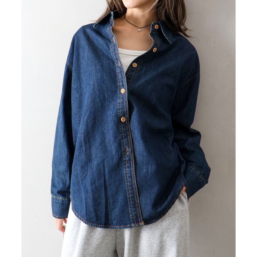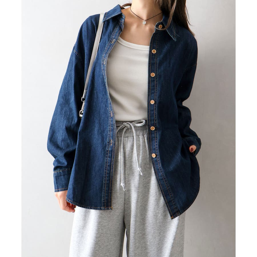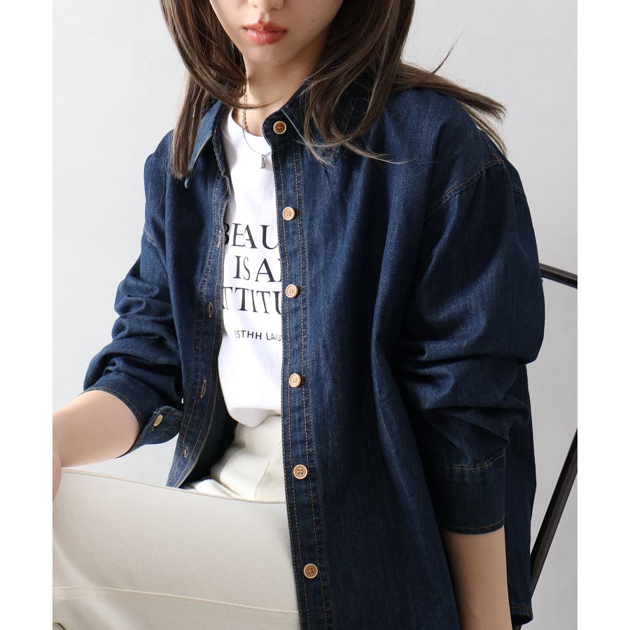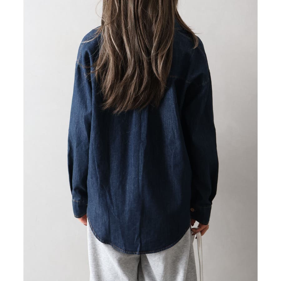 軽やかで柔らかな肌触りが魅力のライトオンスデニムシャツです。程よくゆとりのあるワイドなシルエットとドロップショルダーのデザインにより、一枚で着るだけでなく羽織りとしても使えます。