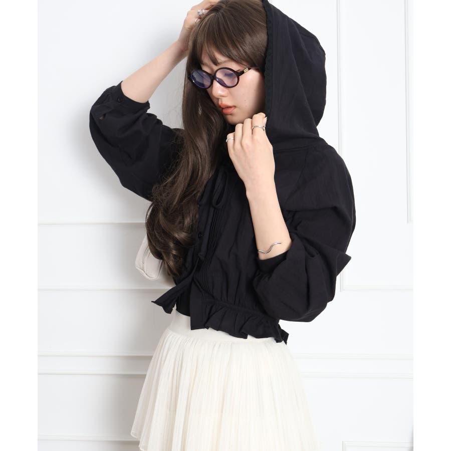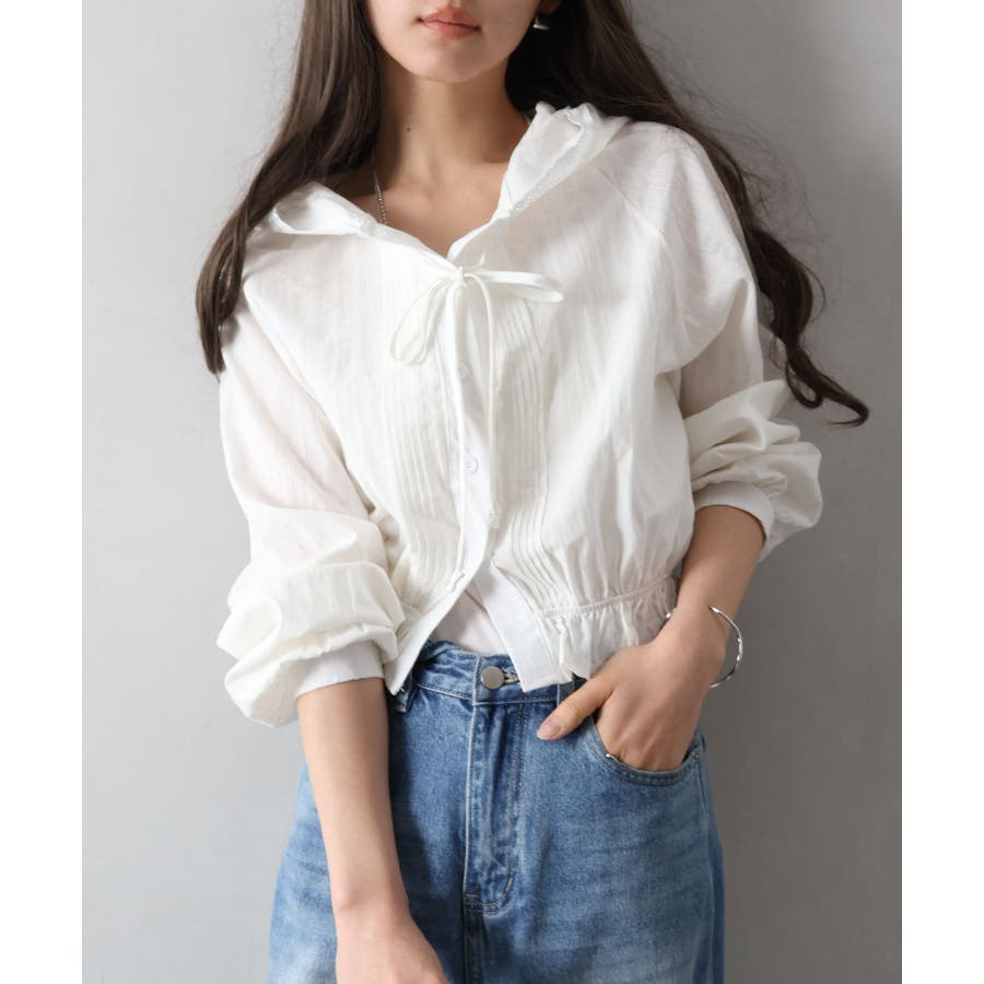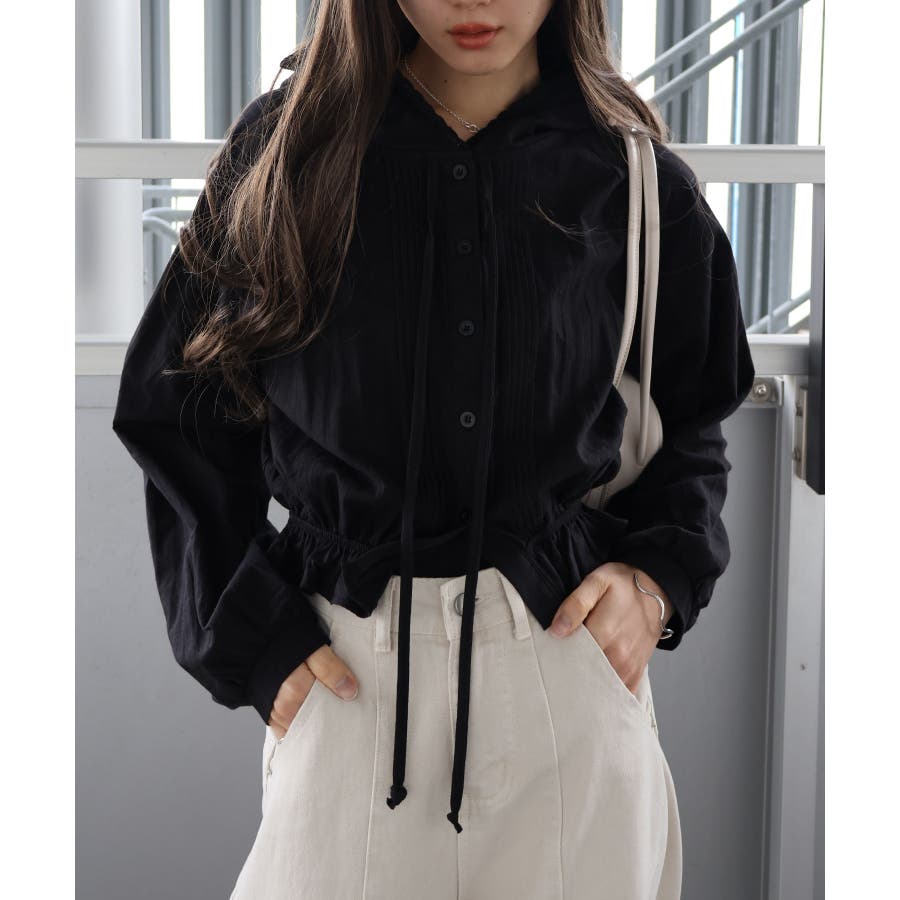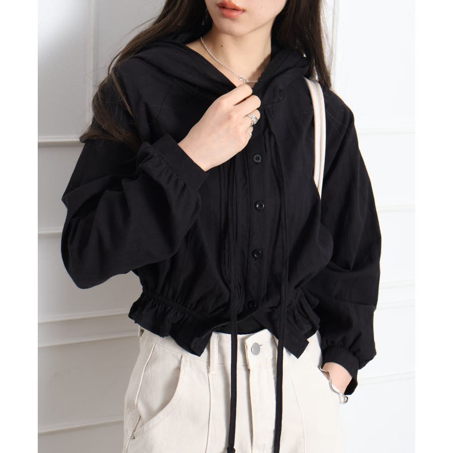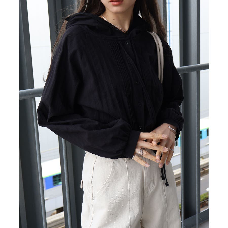 #ピンタックシャツ#フード付きブラウス