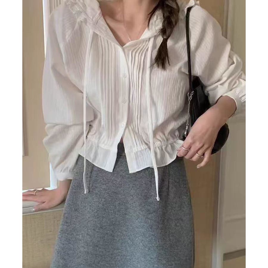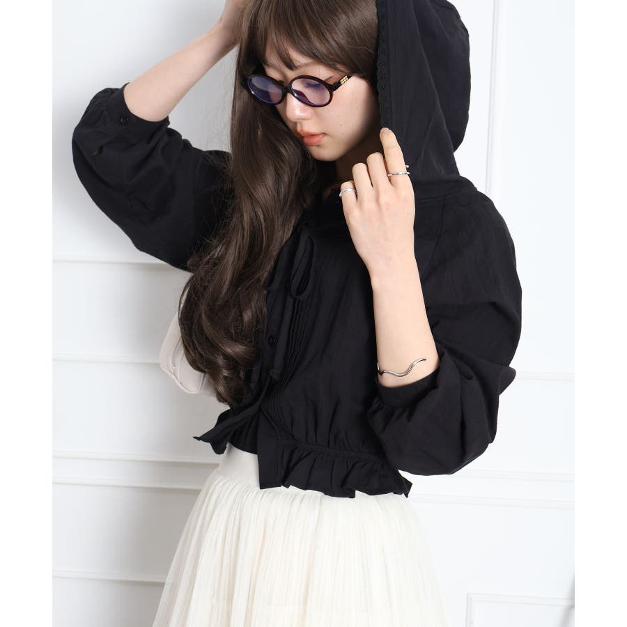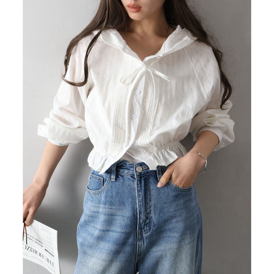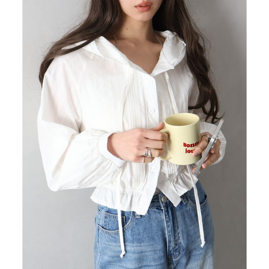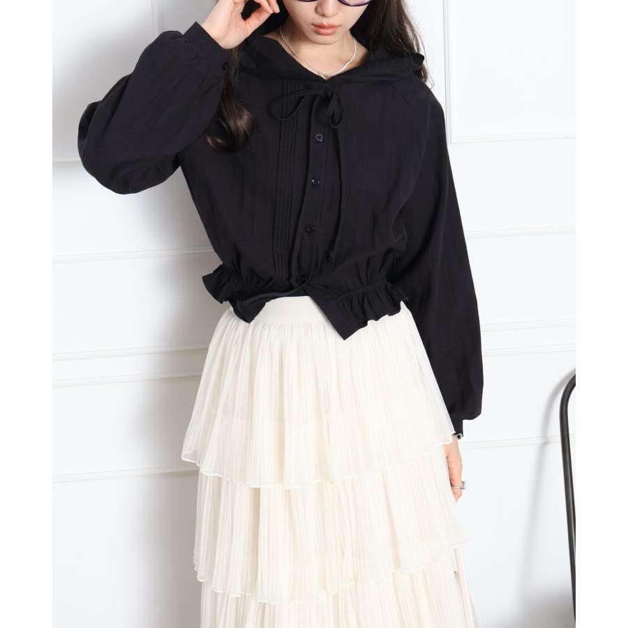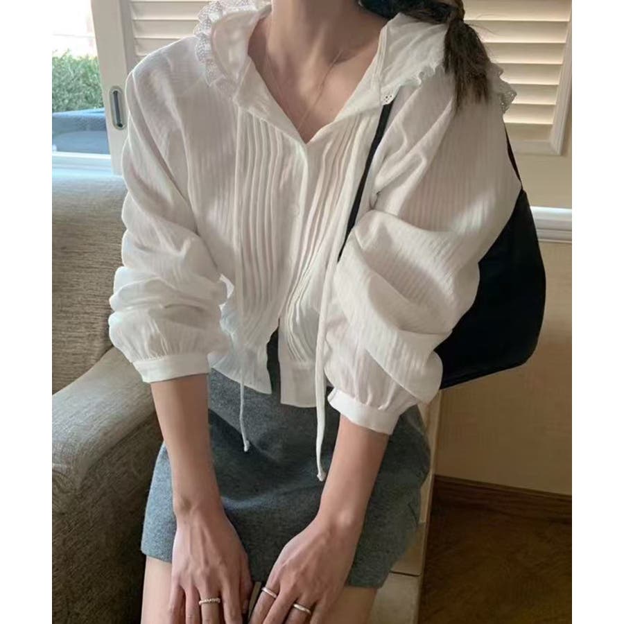 #ピンタックシャツ#フード付きブラウス