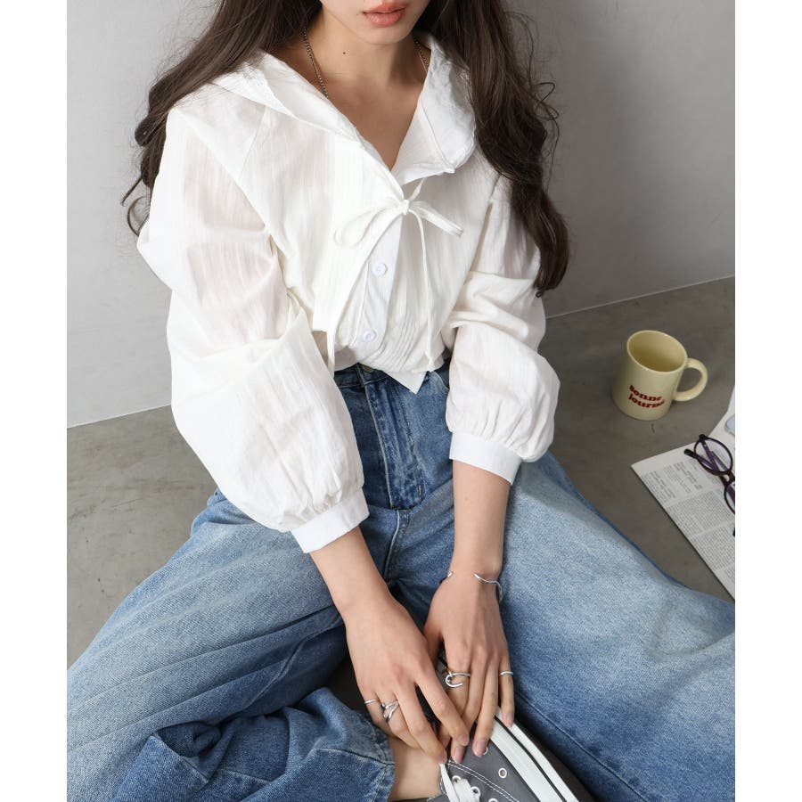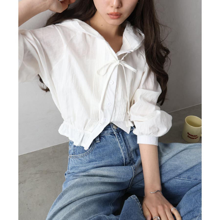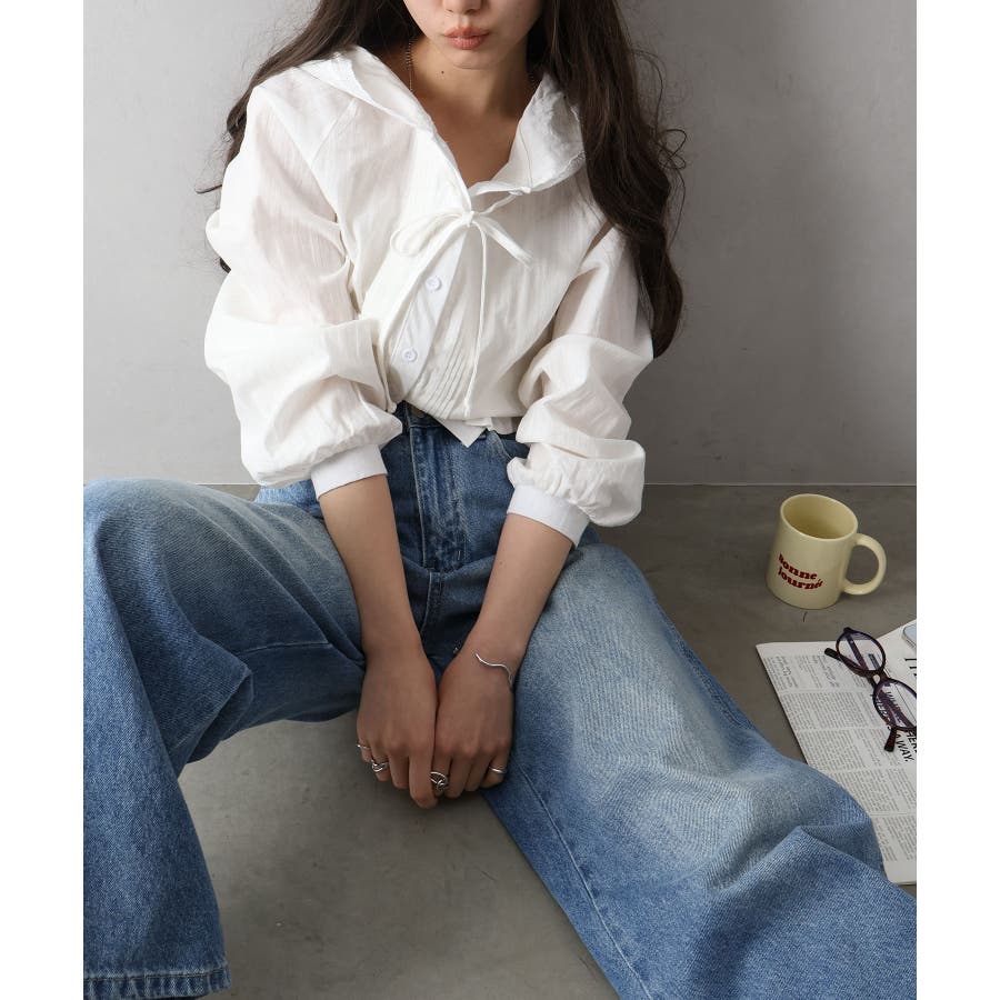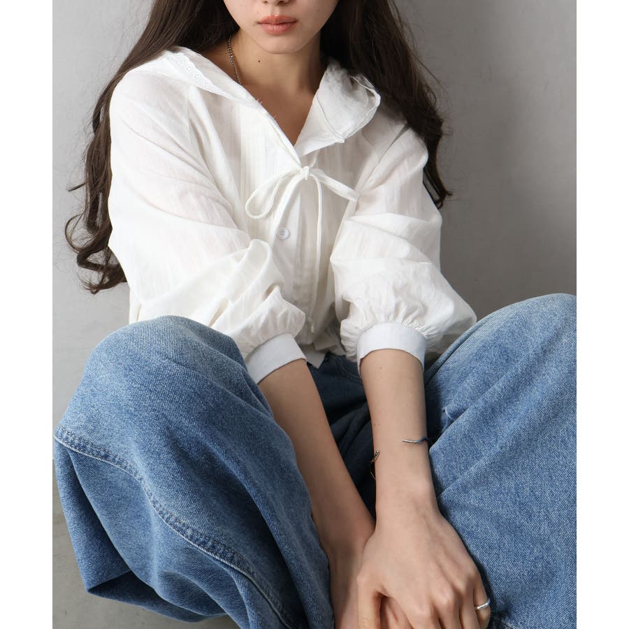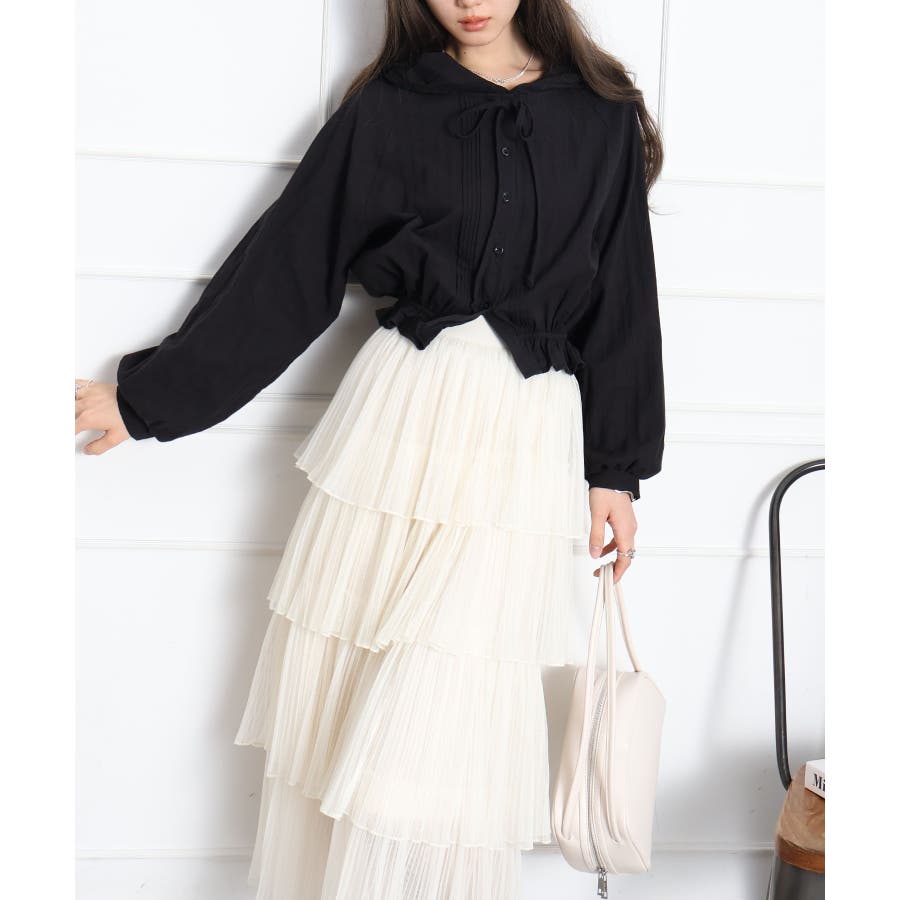 #ピンタックシャツ#フード付きブラウス
