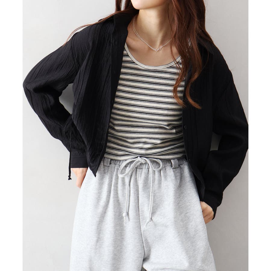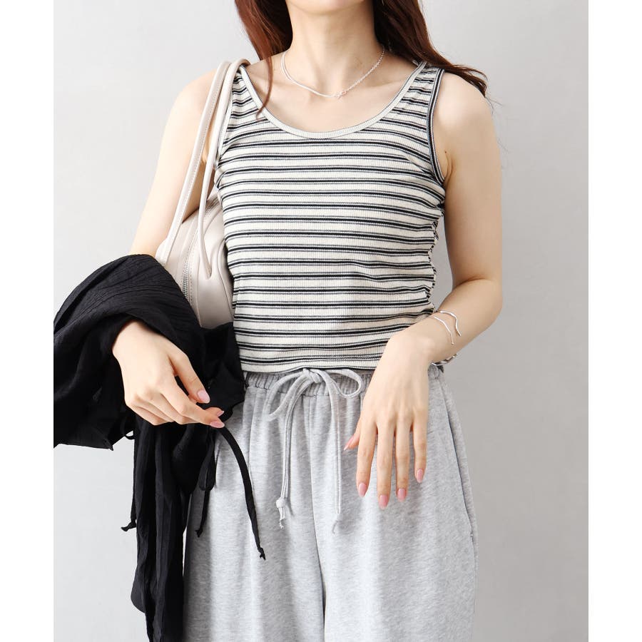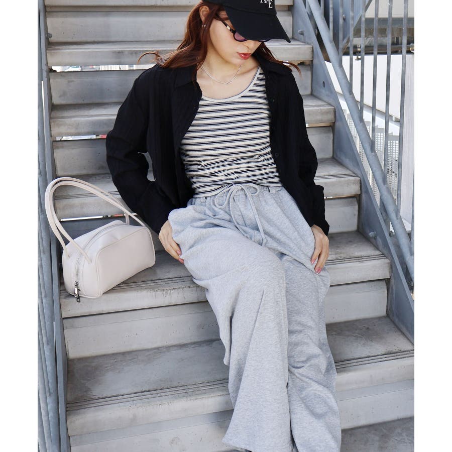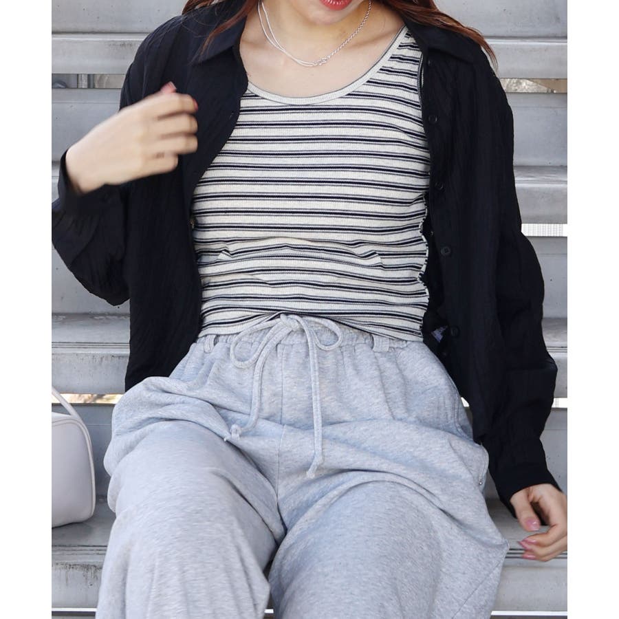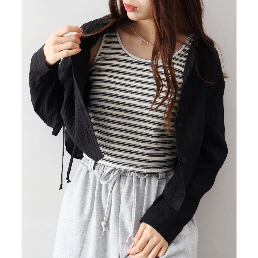 【2点セット】ボーダータンクトップサイドシャーリングシャツセット