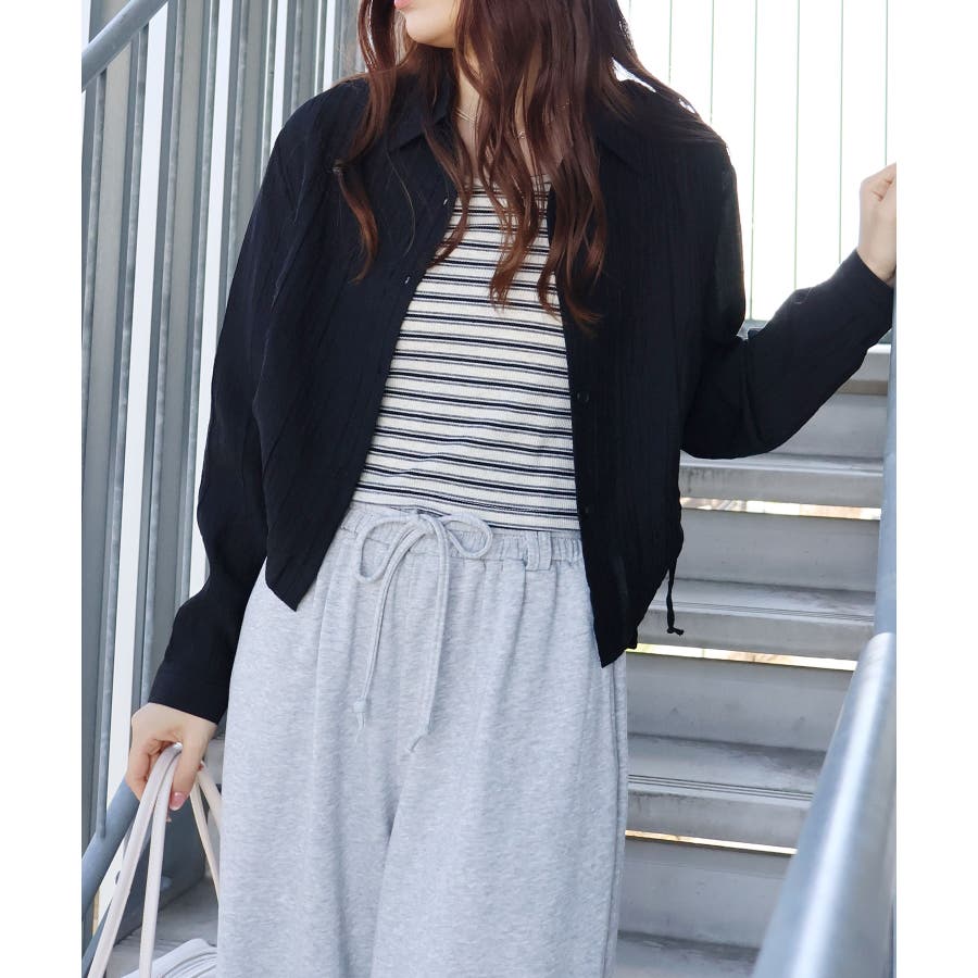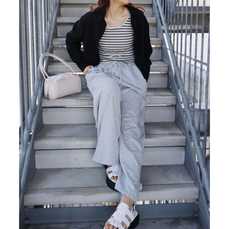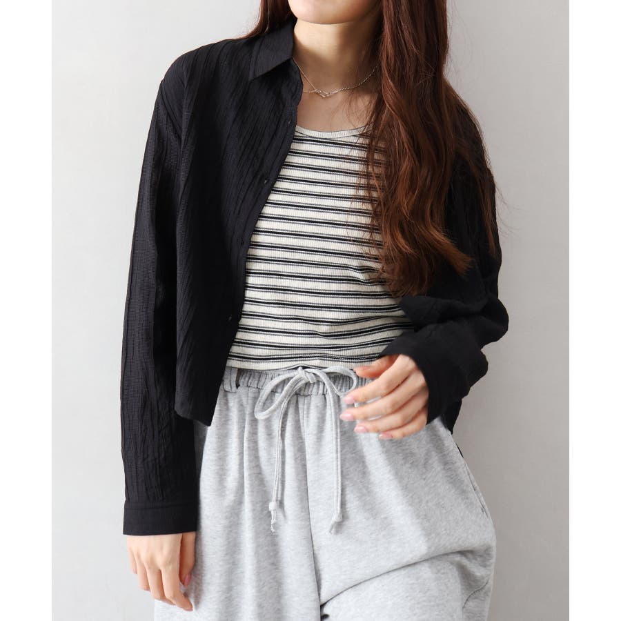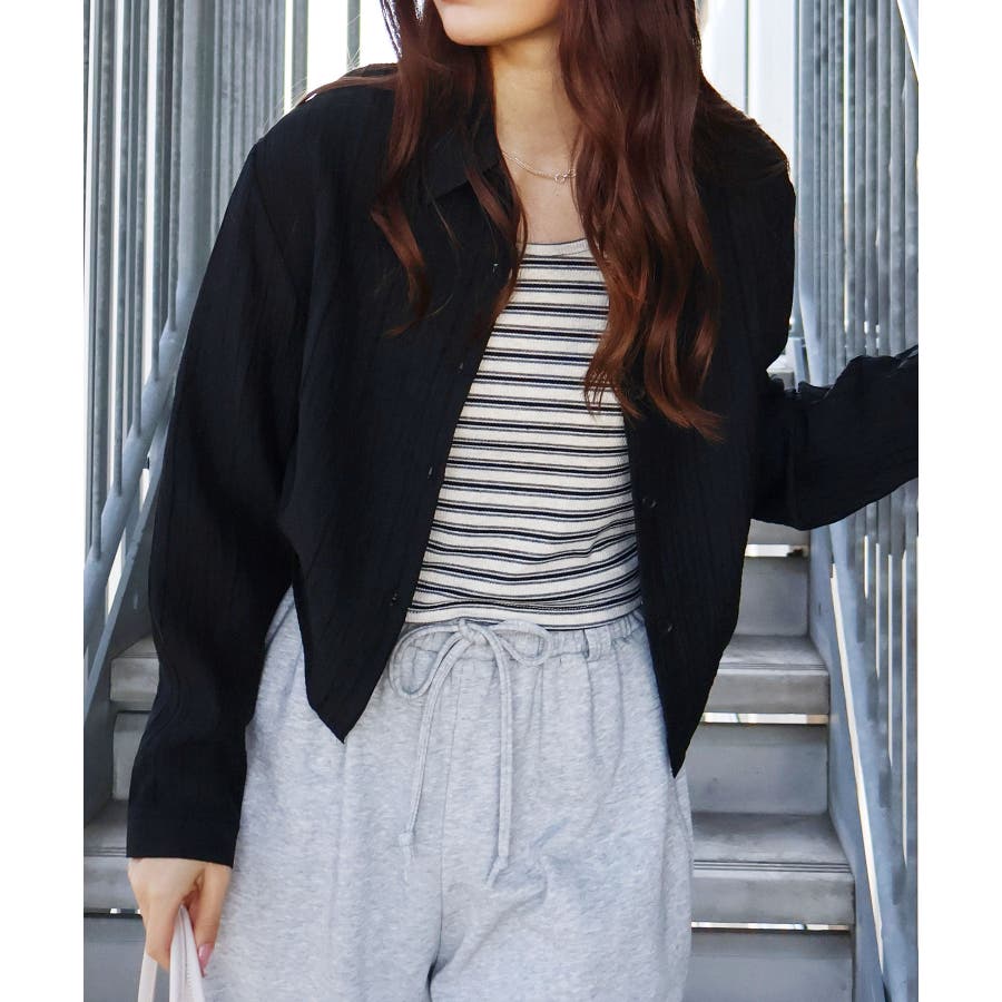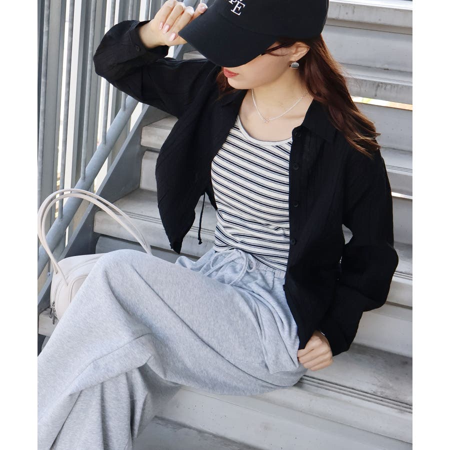 【2点セット】ボーダータンクトップサイドシャーリングシャツセット