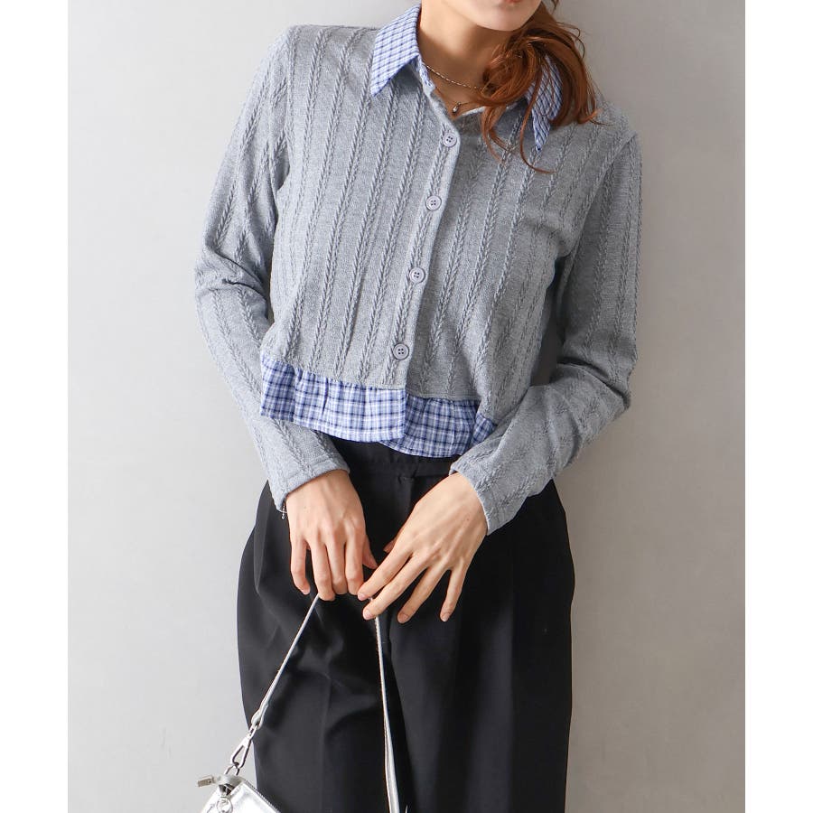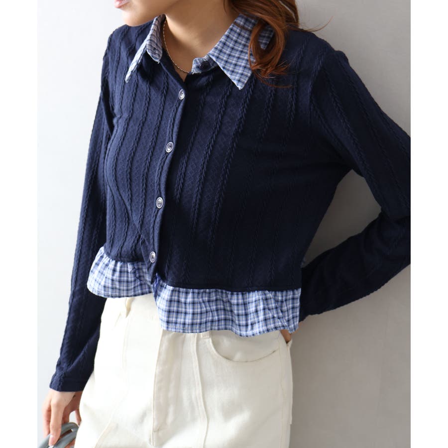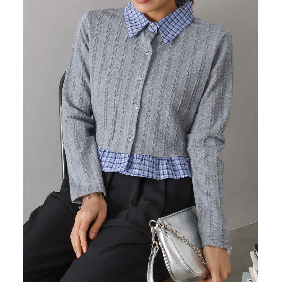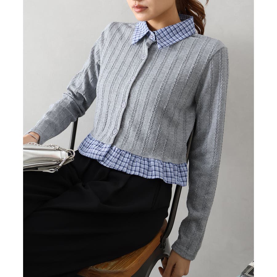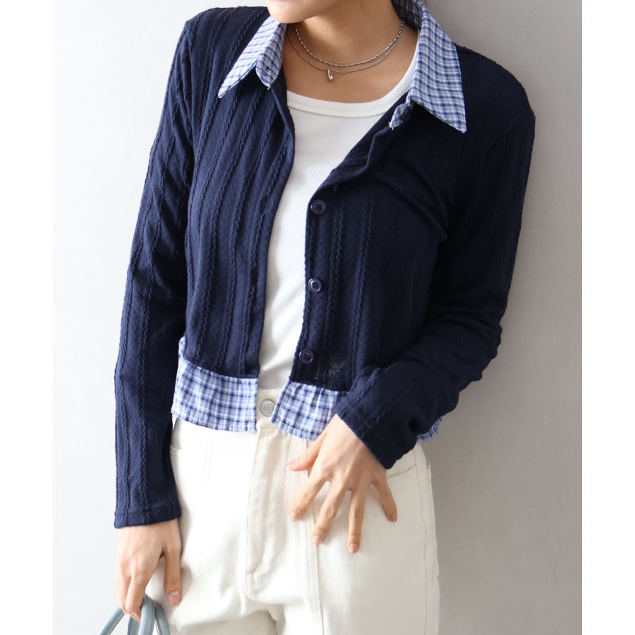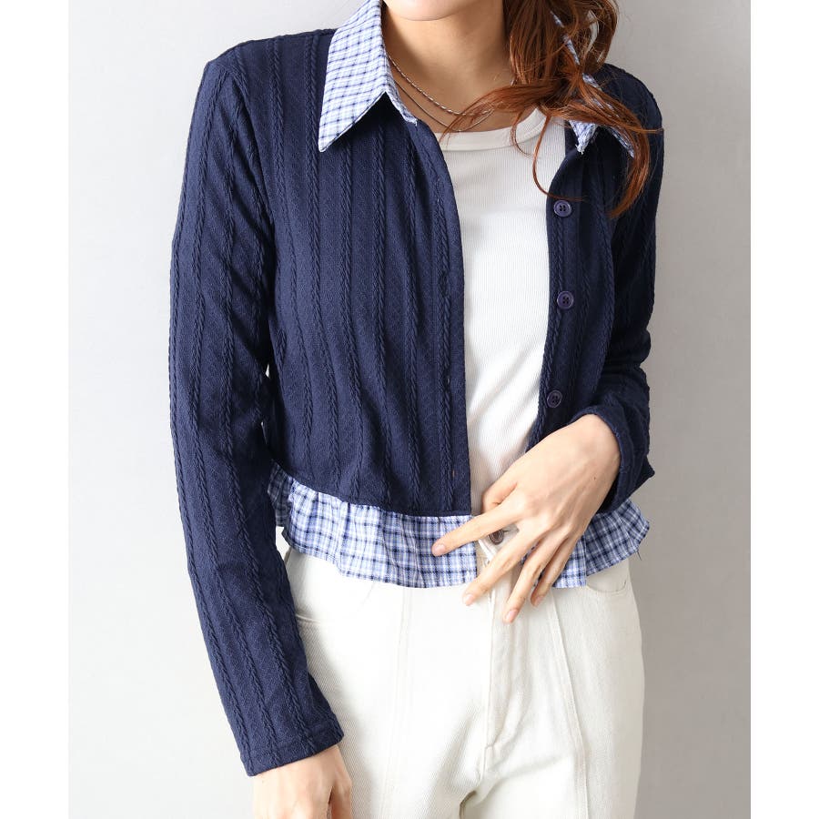 【SpRay チェック切替フェイクレイヤードカーディガン】