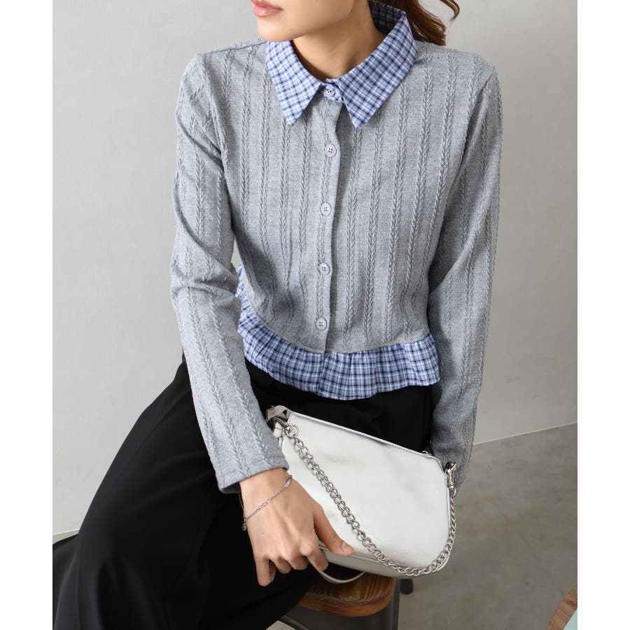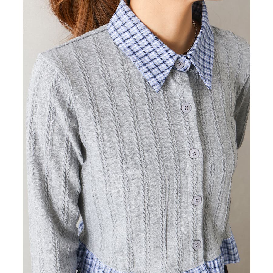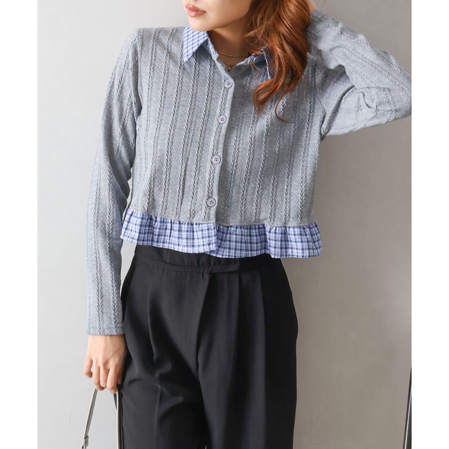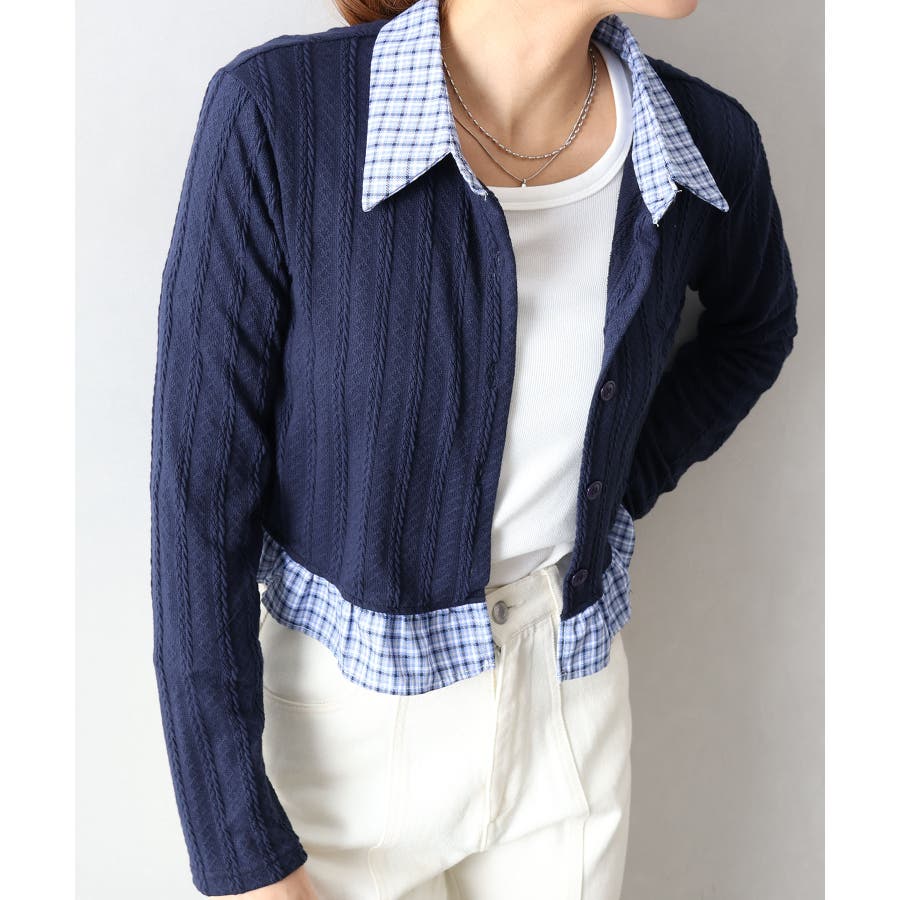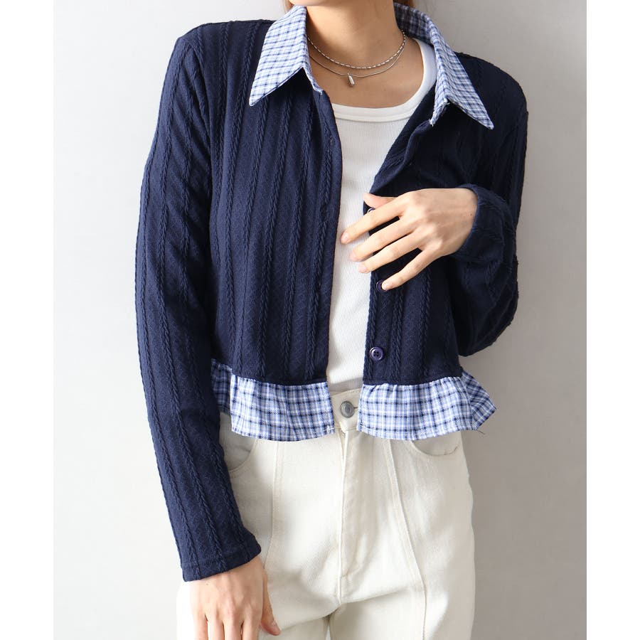 【SpRay チェック切替フェイクレイヤードカーディガン】