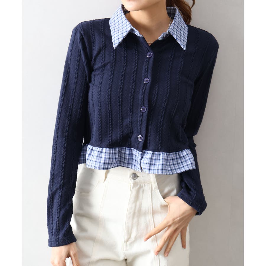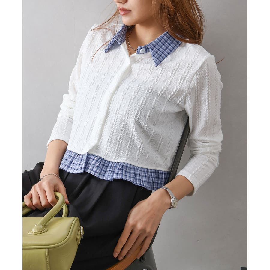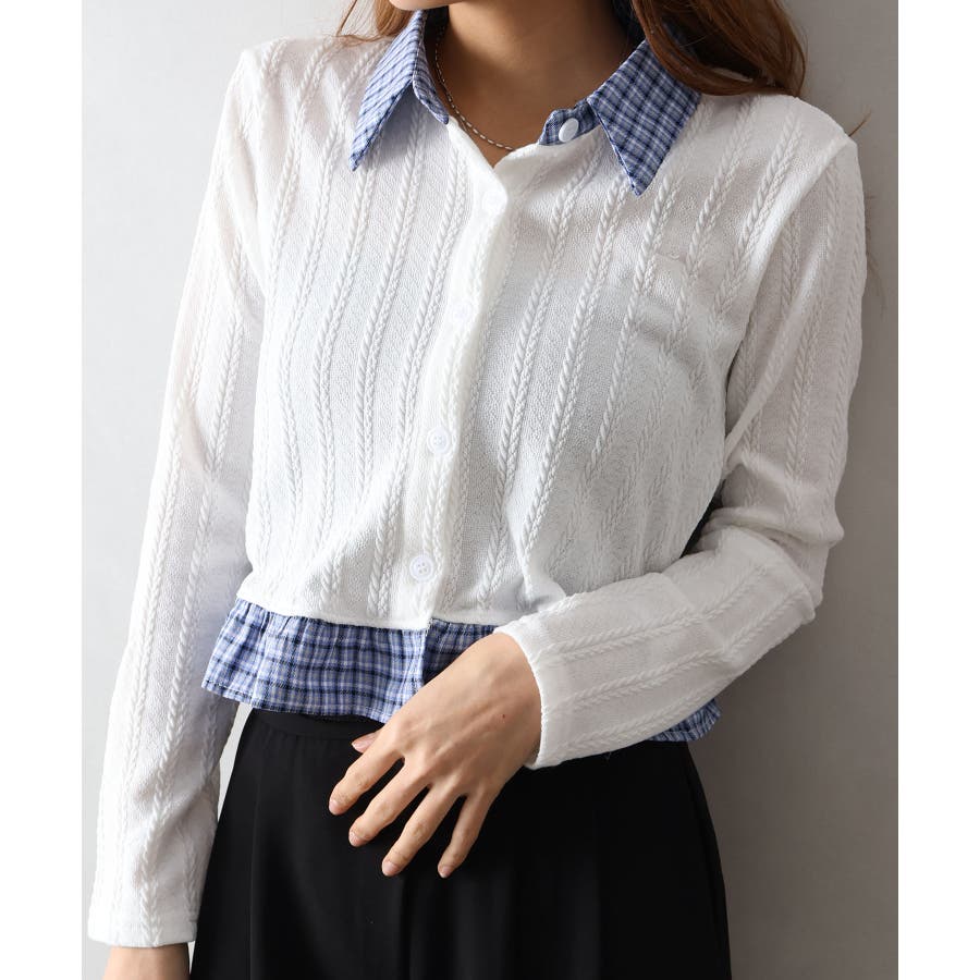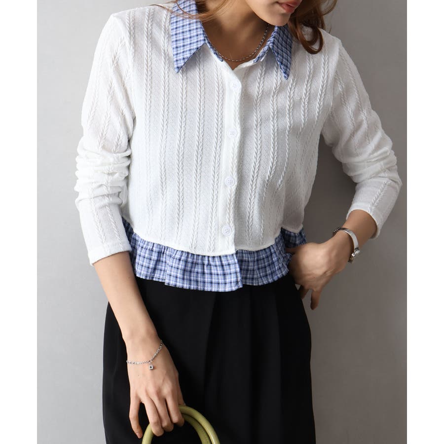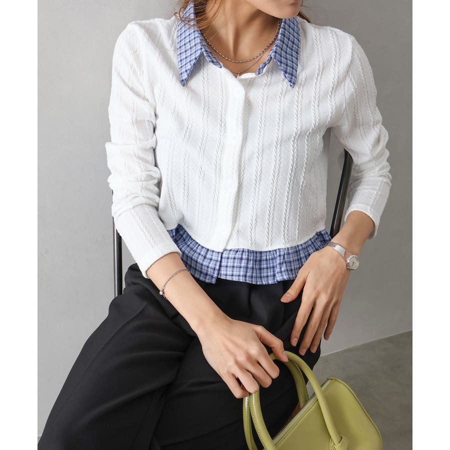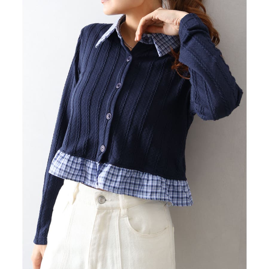 【SpRay チェック切替フェイクレイヤードカーディガン】