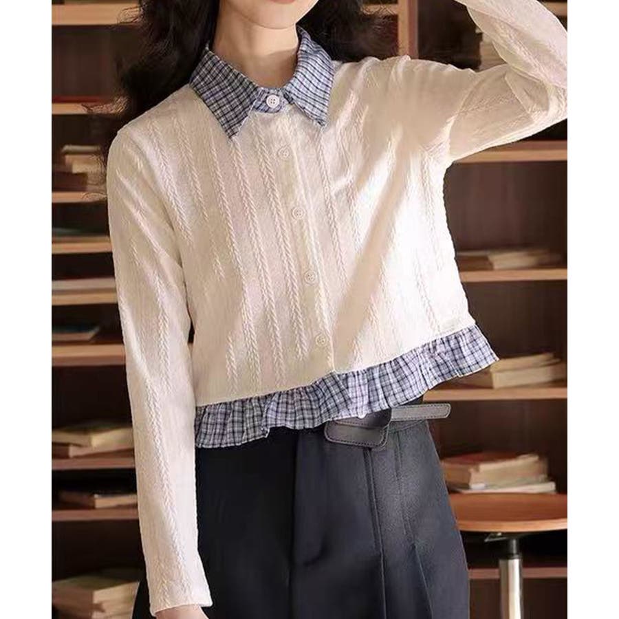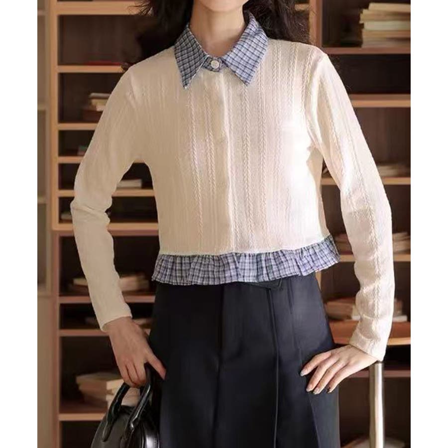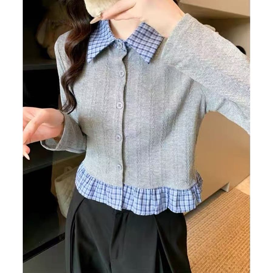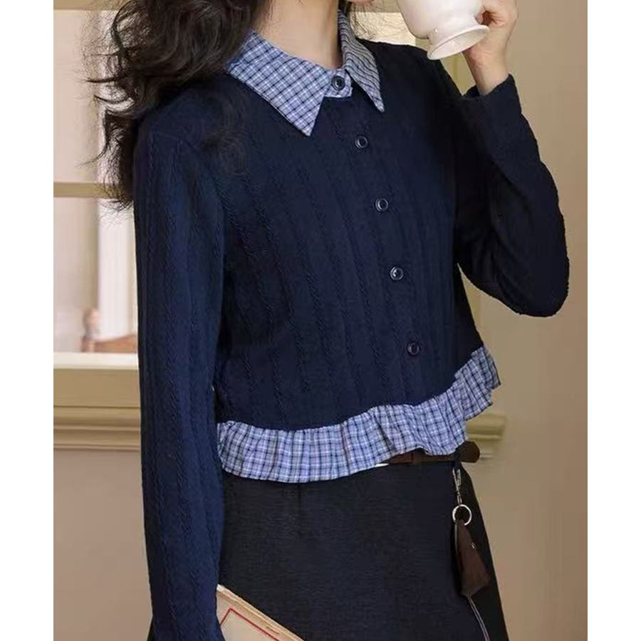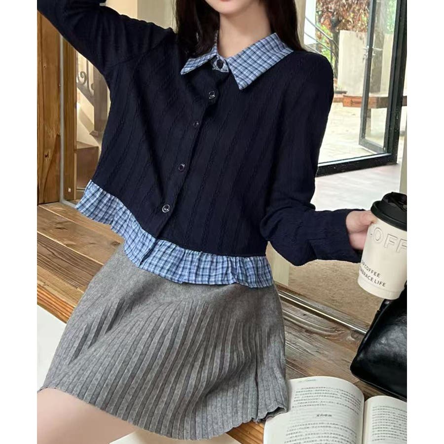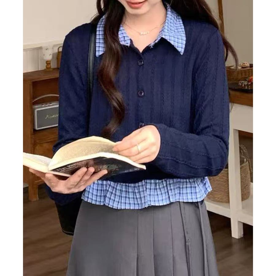【SpRay チェック切替フェイクレイヤードカーディガン】