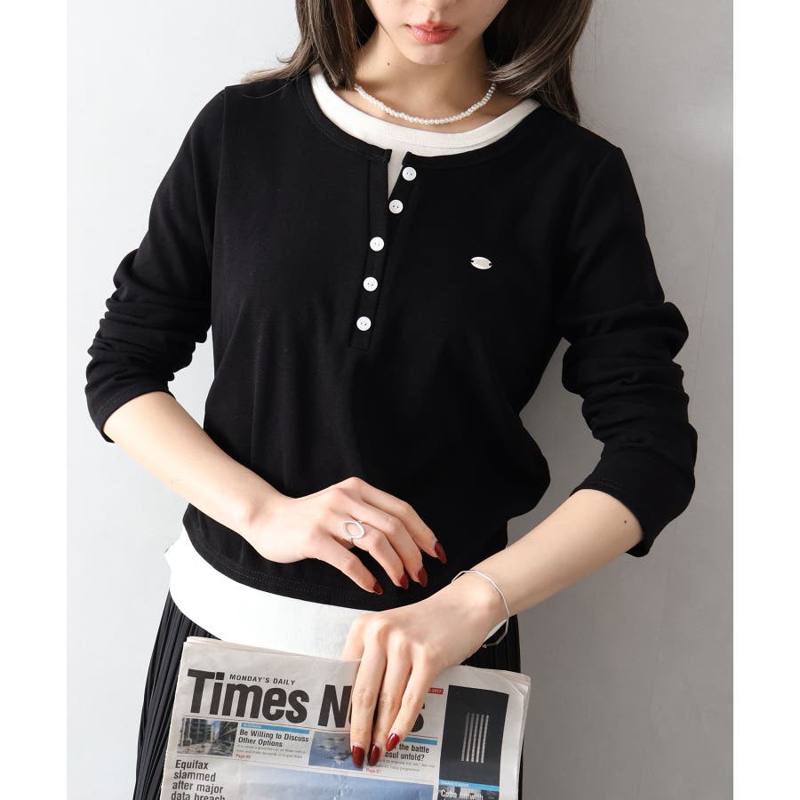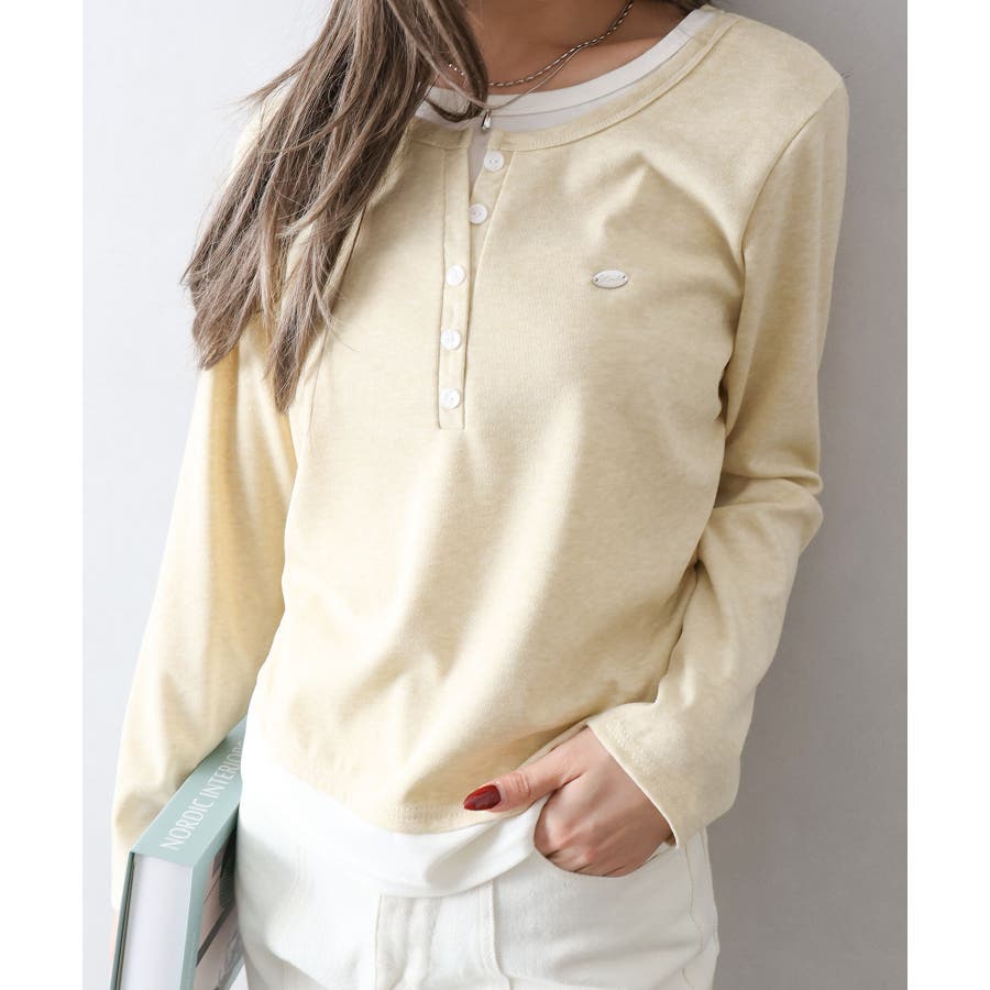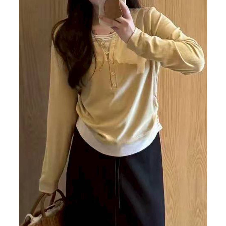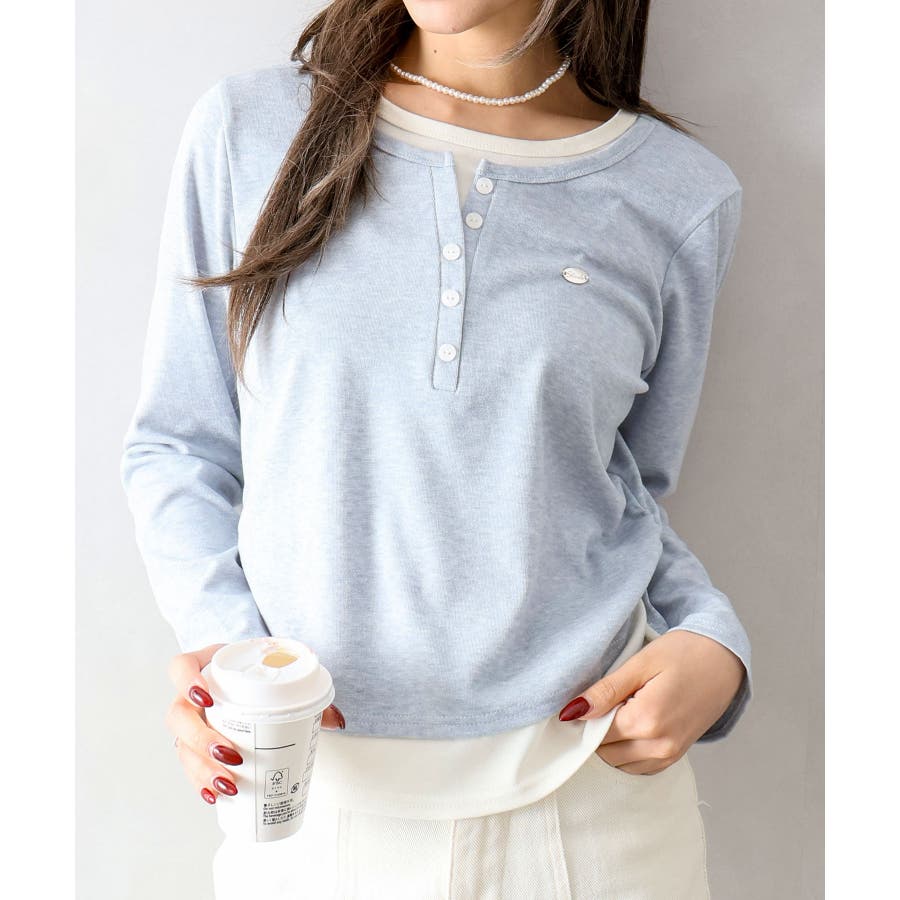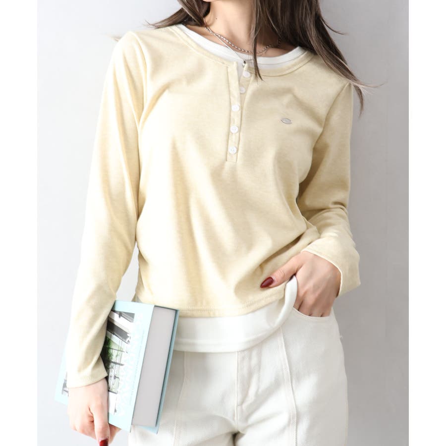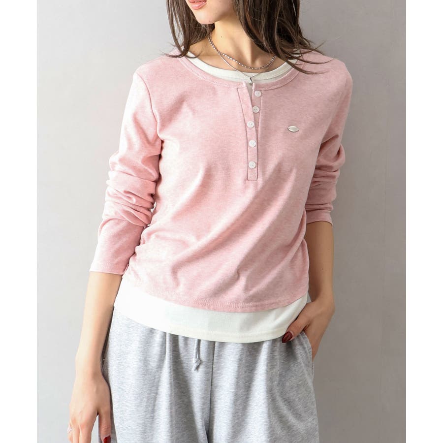 配色デザインが目を惹く、ヘンリーネックのフェイクレイヤードトップス。