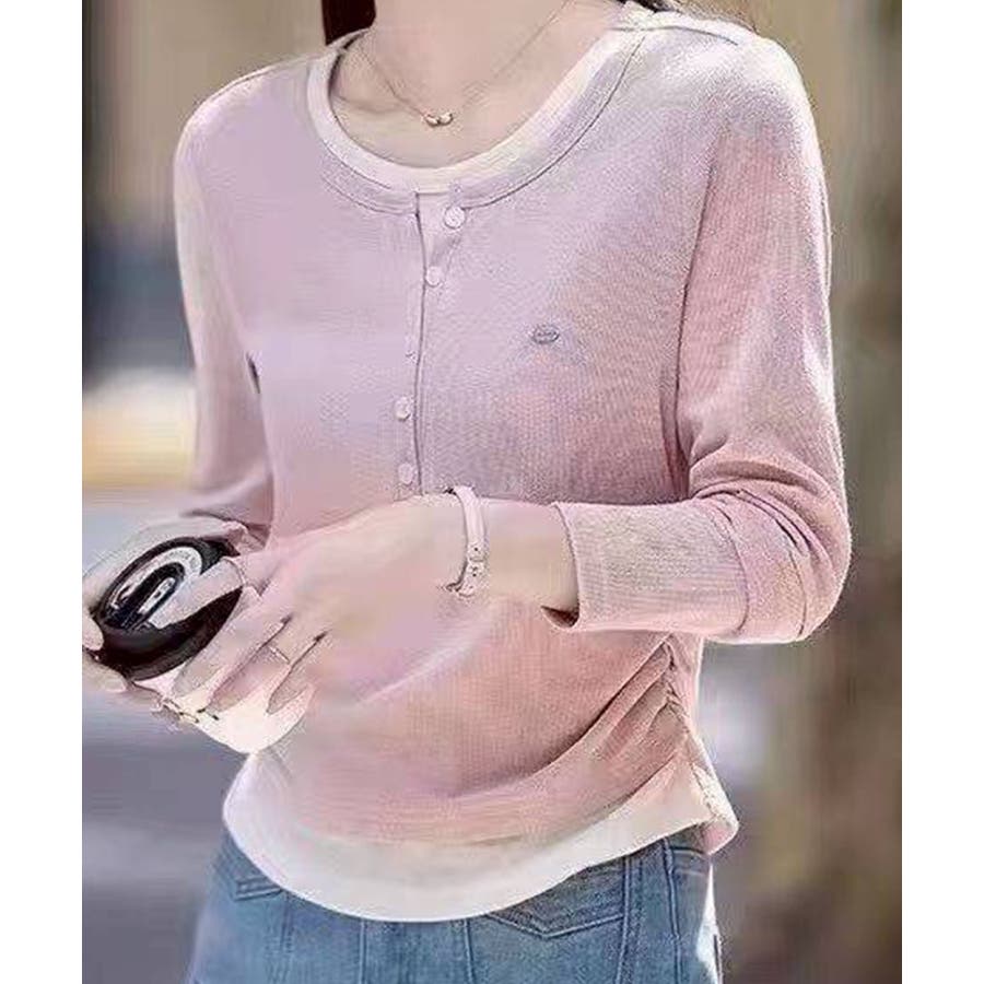 一枚で重ね着風スタイルが完成するデザインで、コーデに程よいアクセントをプラス。