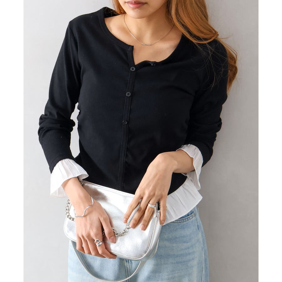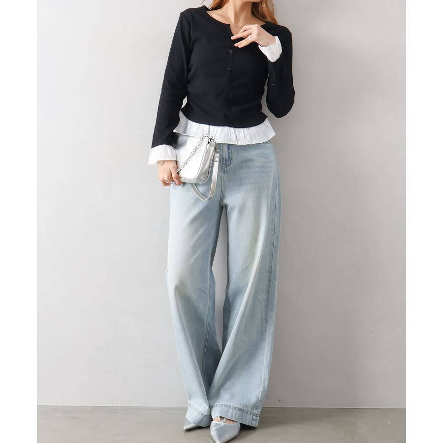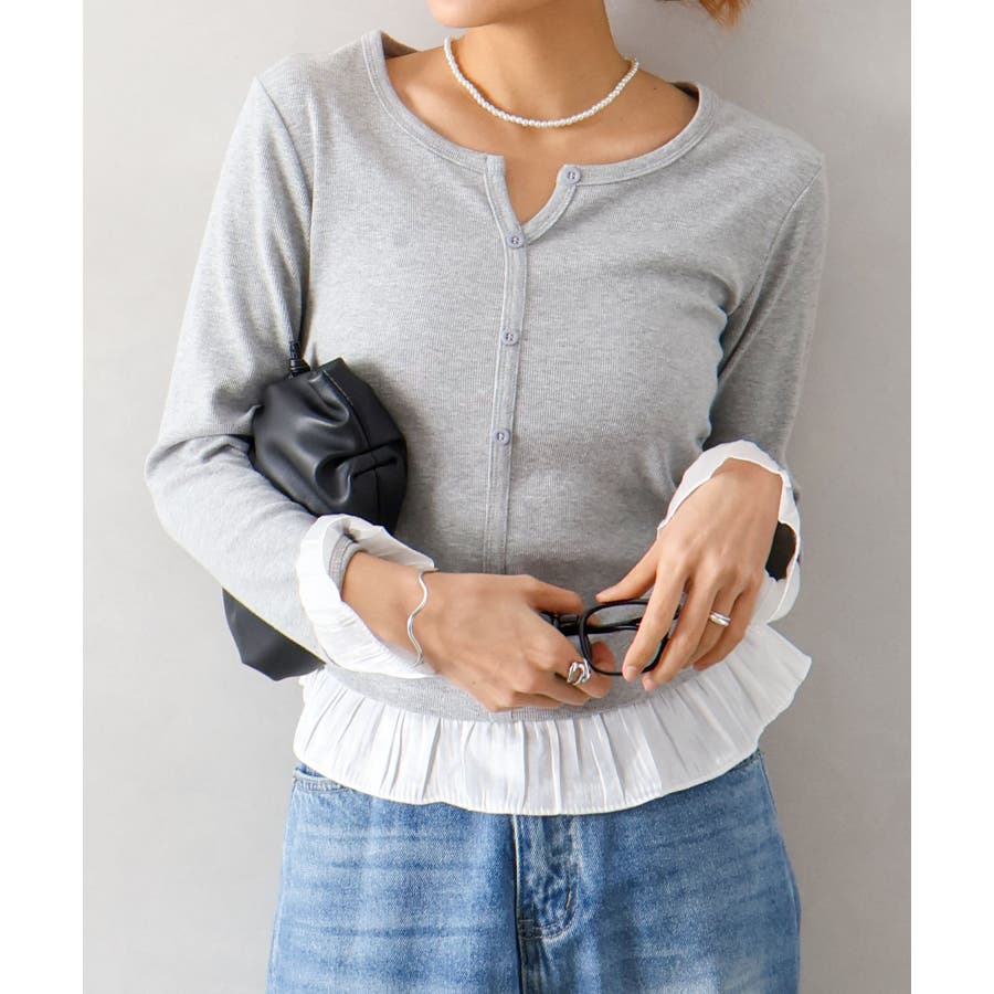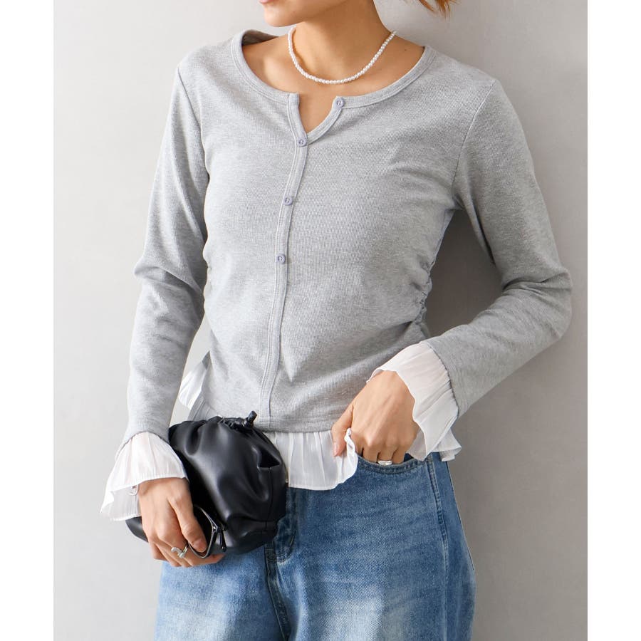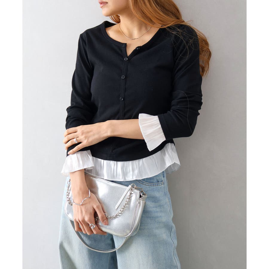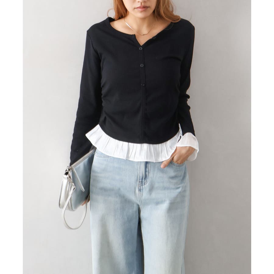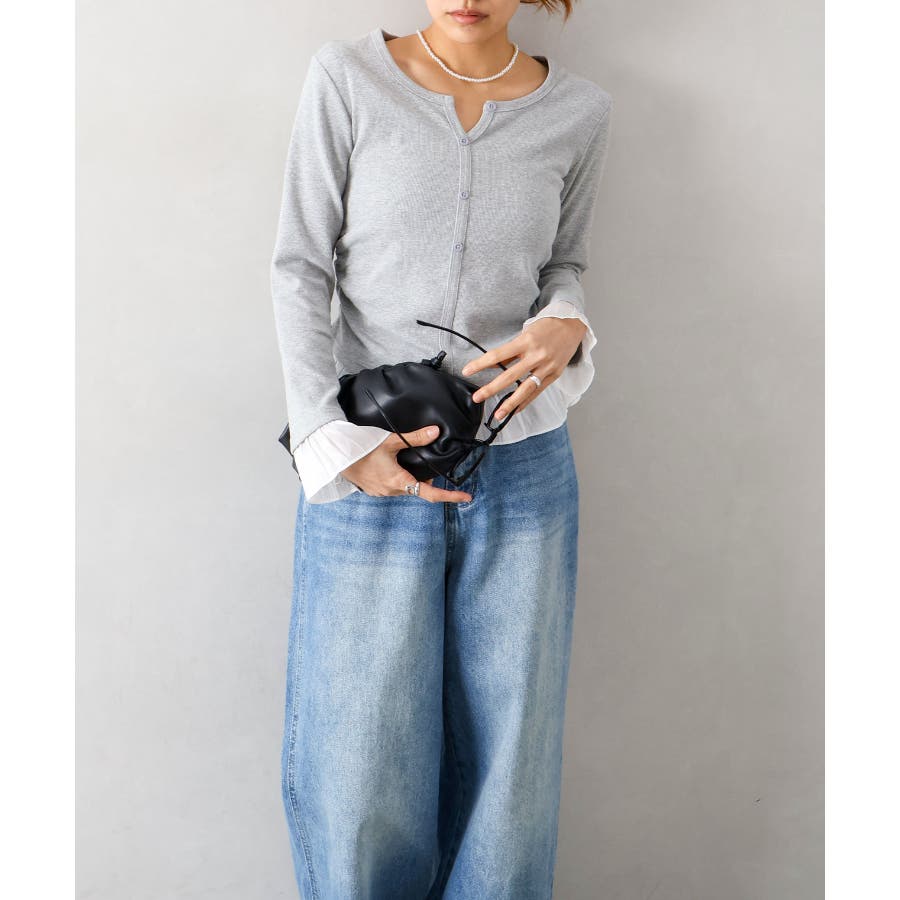 袖口と裾に贅沢にあしらわれた異素材のフリルが、いつものデニムやスラックスを華やかにクラスアップしてくれる主役級の一着です。