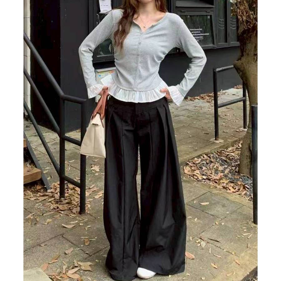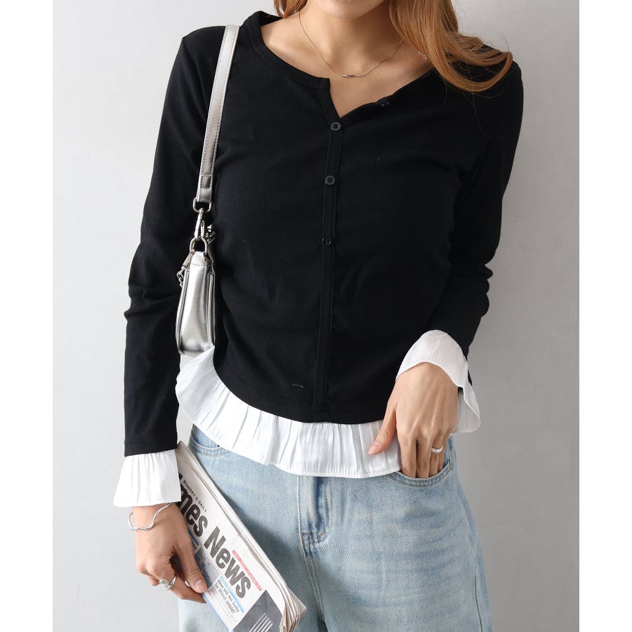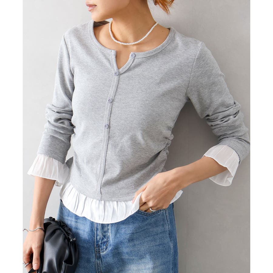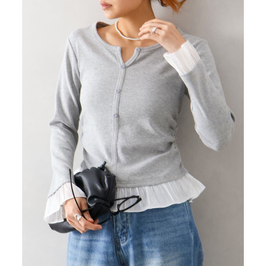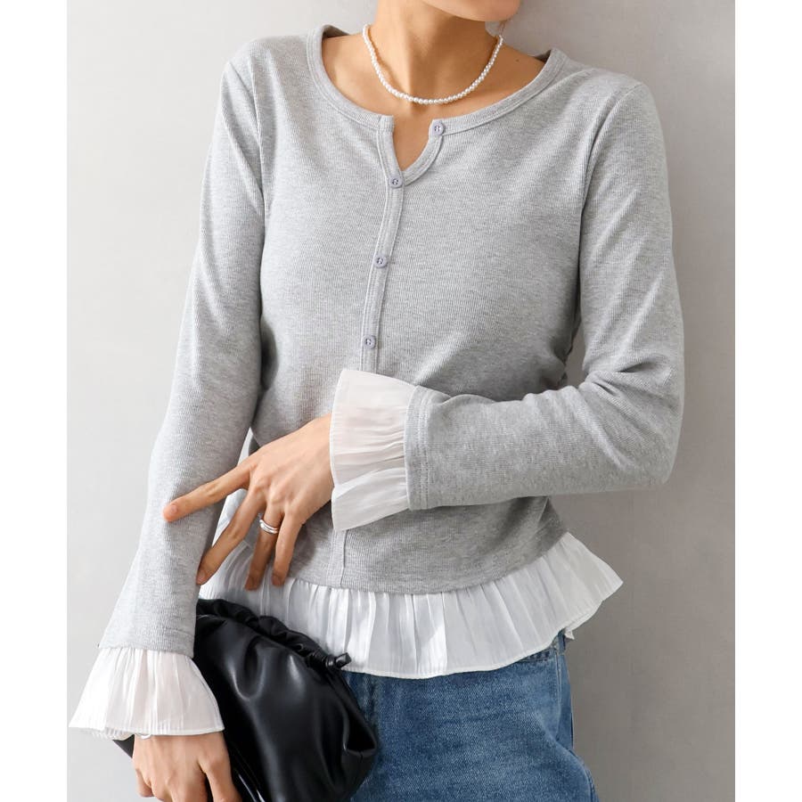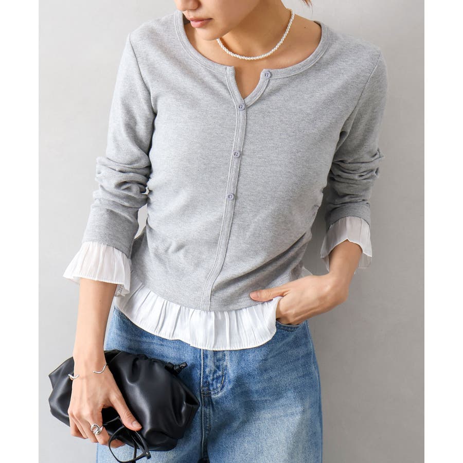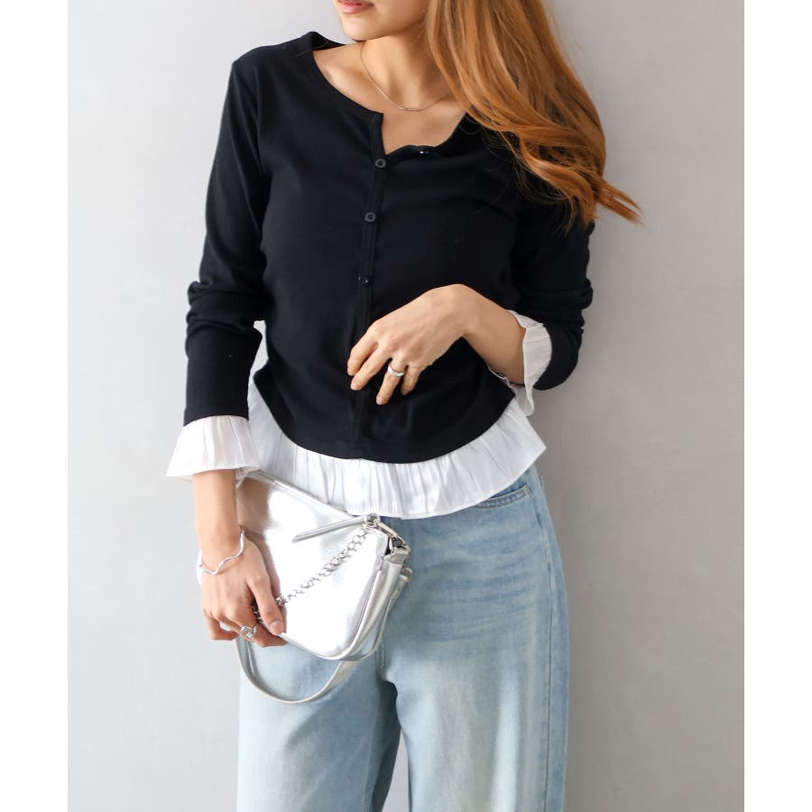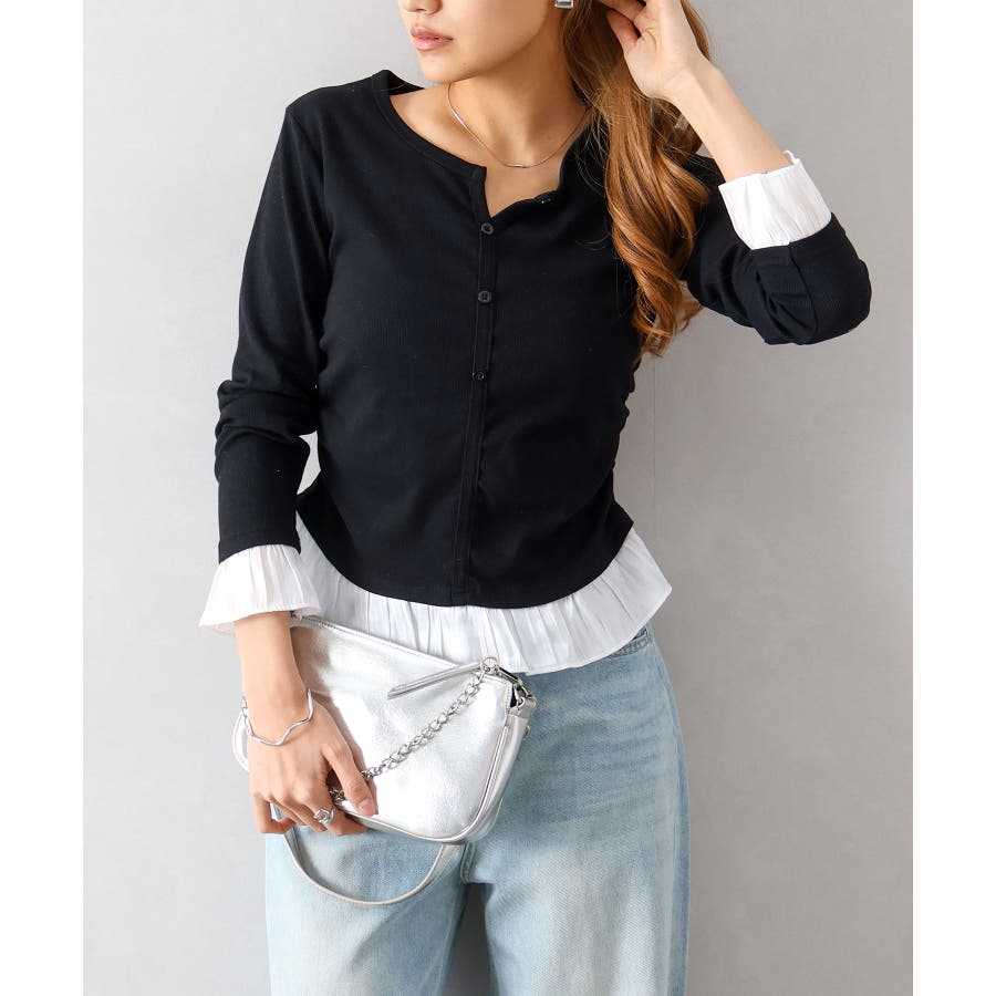 袖口と裾に贅沢にあしらわれた異素材のフリルが、いつものデニムやスラックスを華やかにクラスアップしてくれる主役級の一着です。