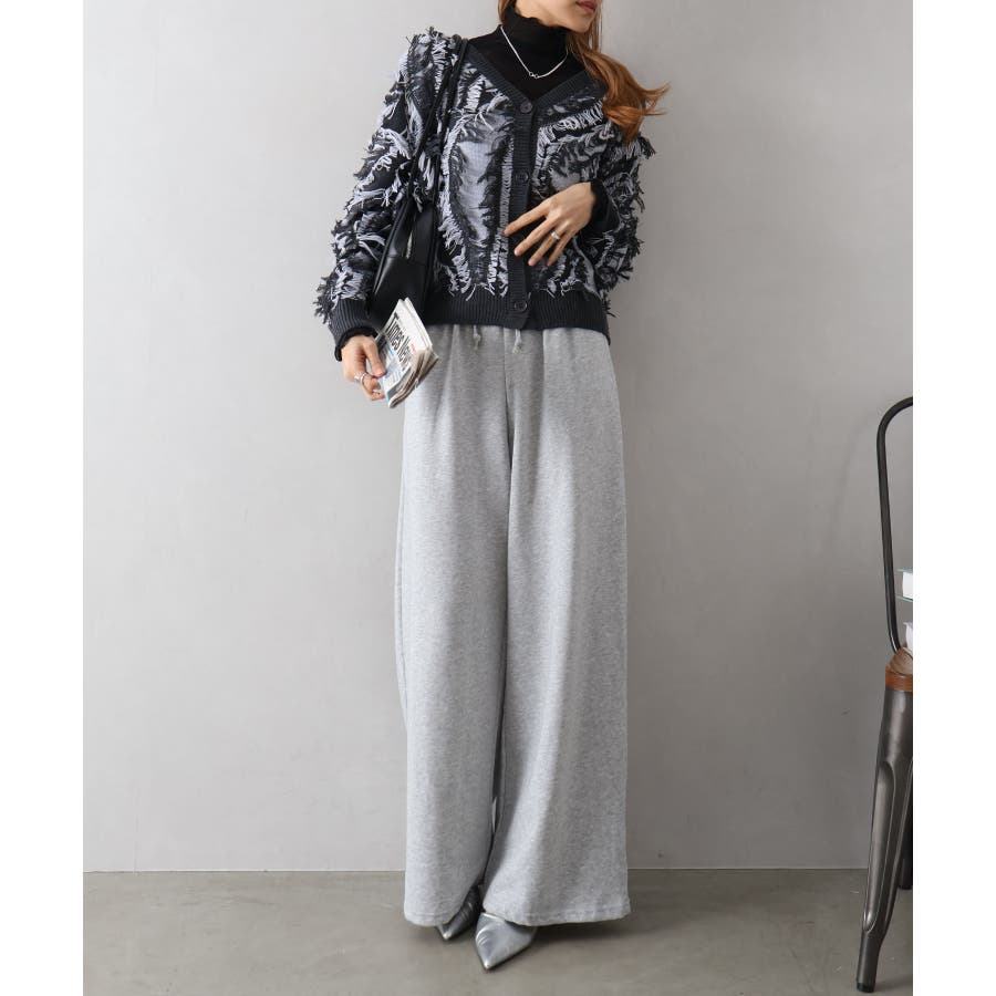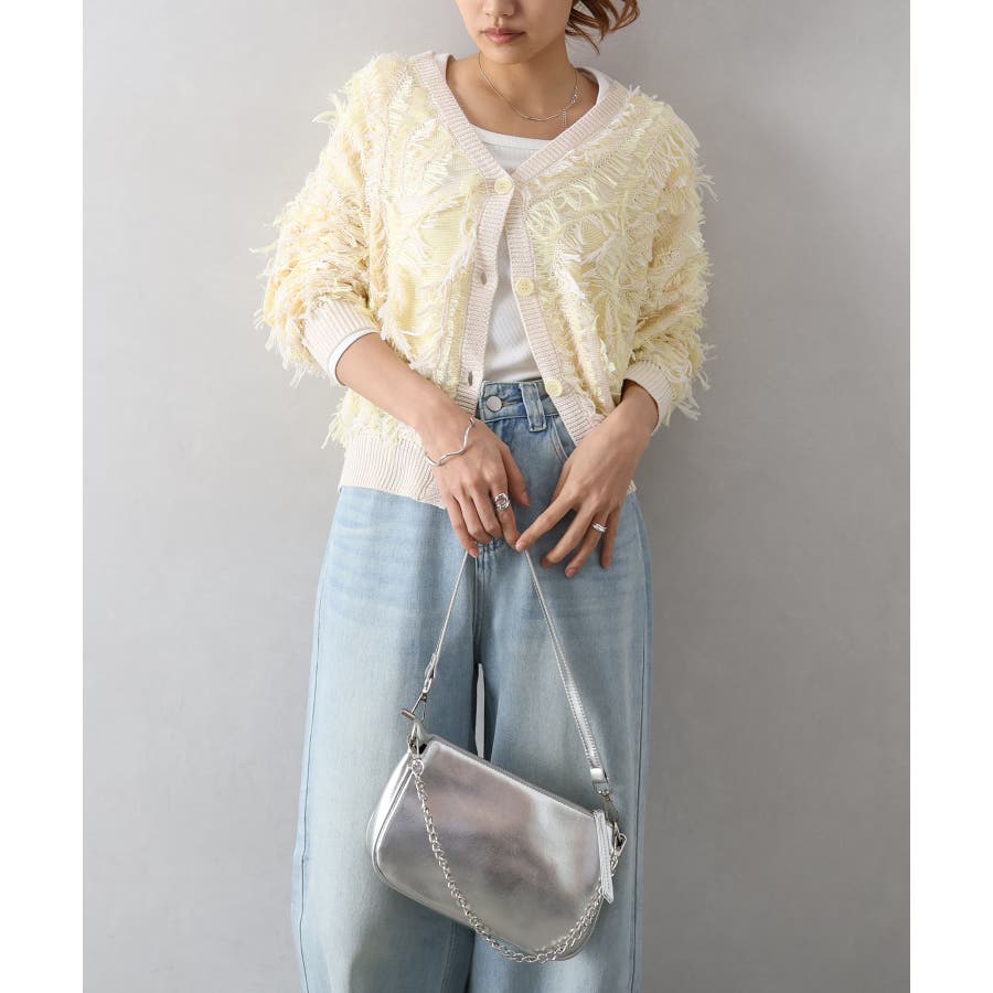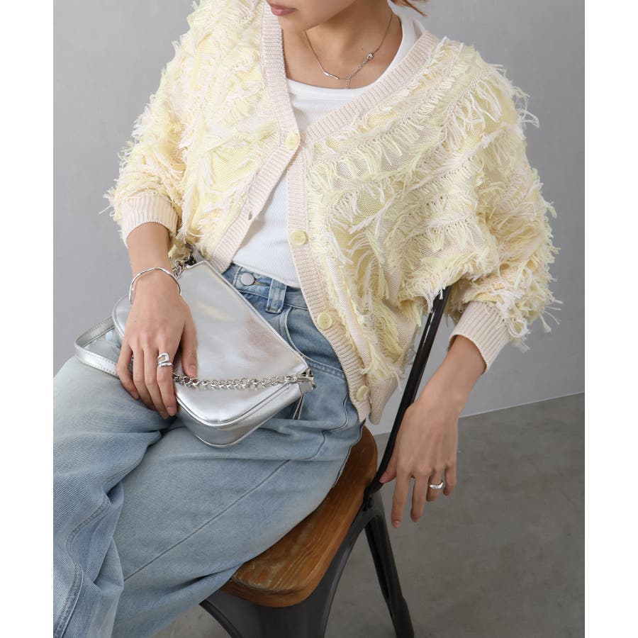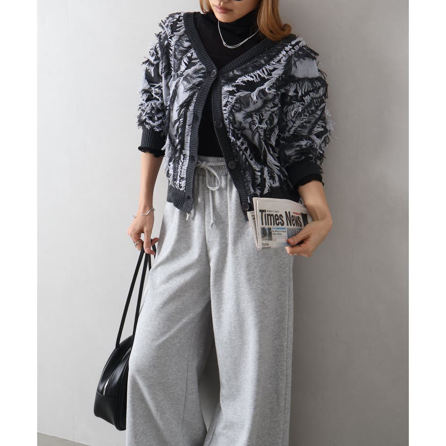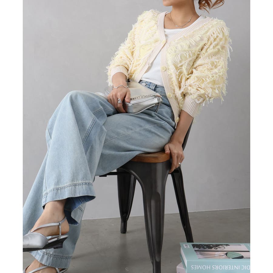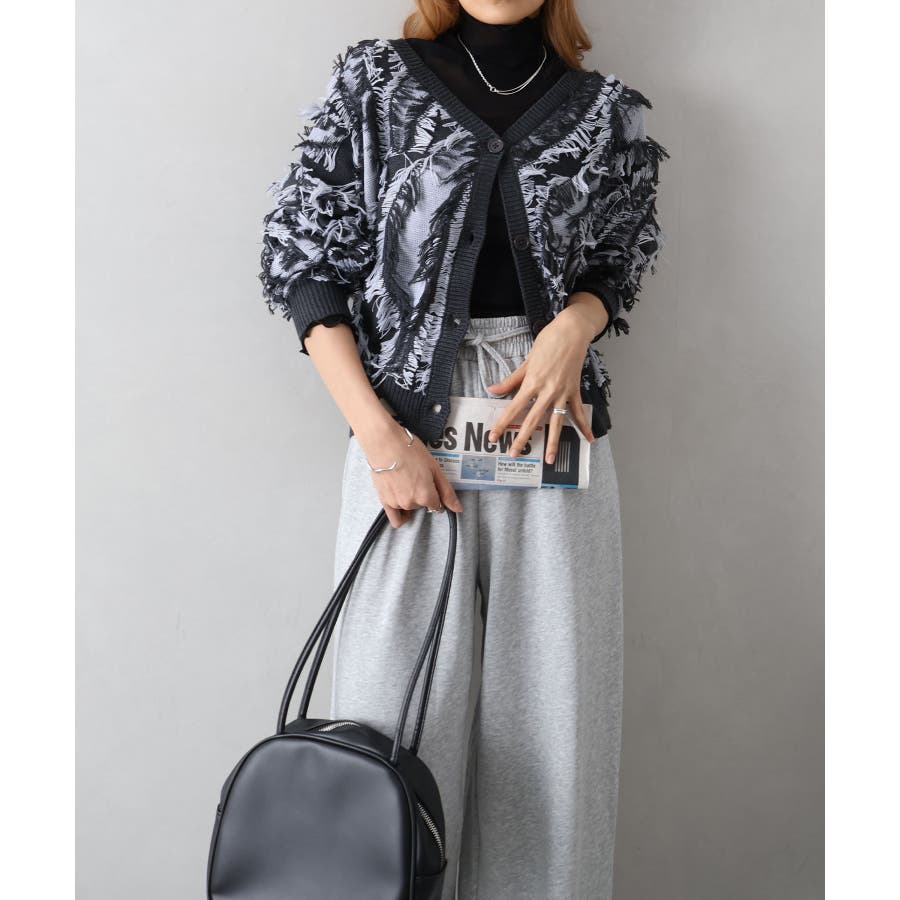 立体感のあるウェーブ状フリンジが目を惹く、存在感たっぷりのデザインカーディガン。